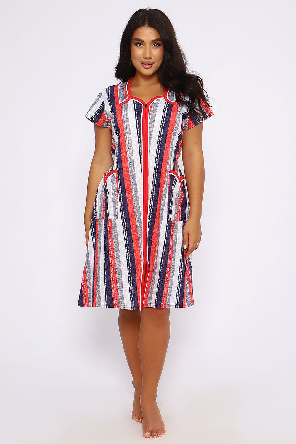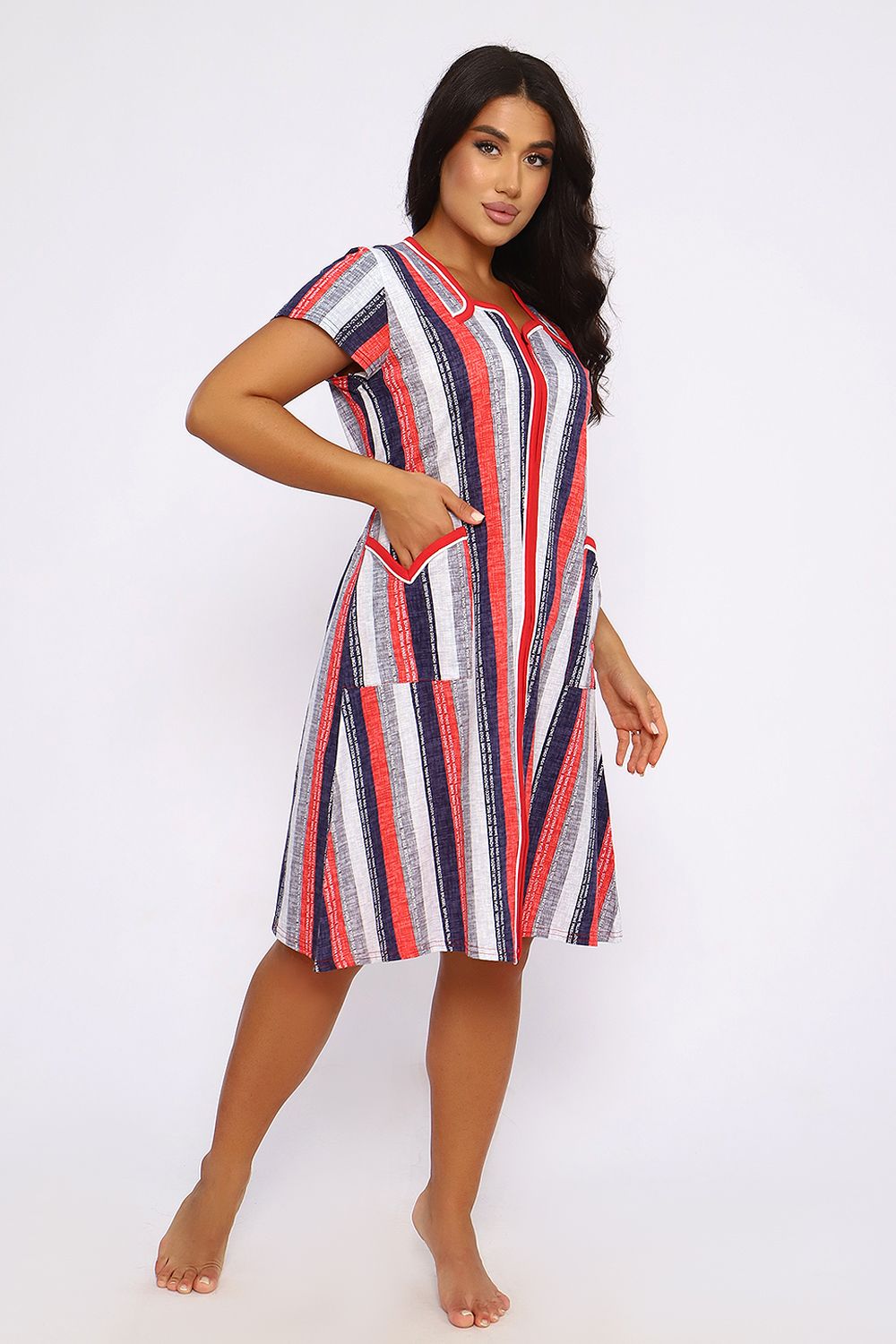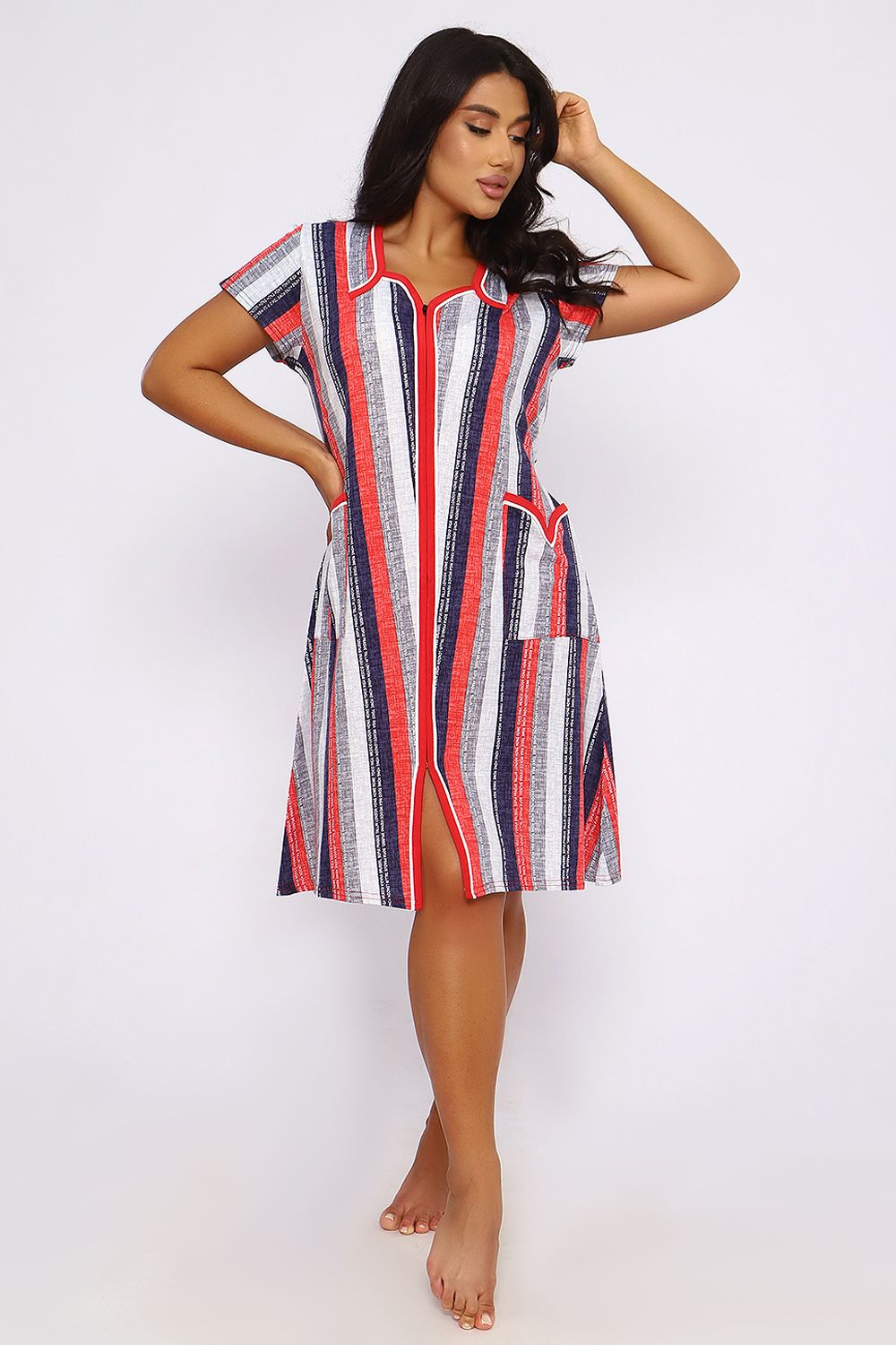 Уютный домашний женский халат на молнии. Выполнен из кулирки, с двумя карманами, с коротким рукавом общая длина приблизительно до коленей, очень приятный к телу.