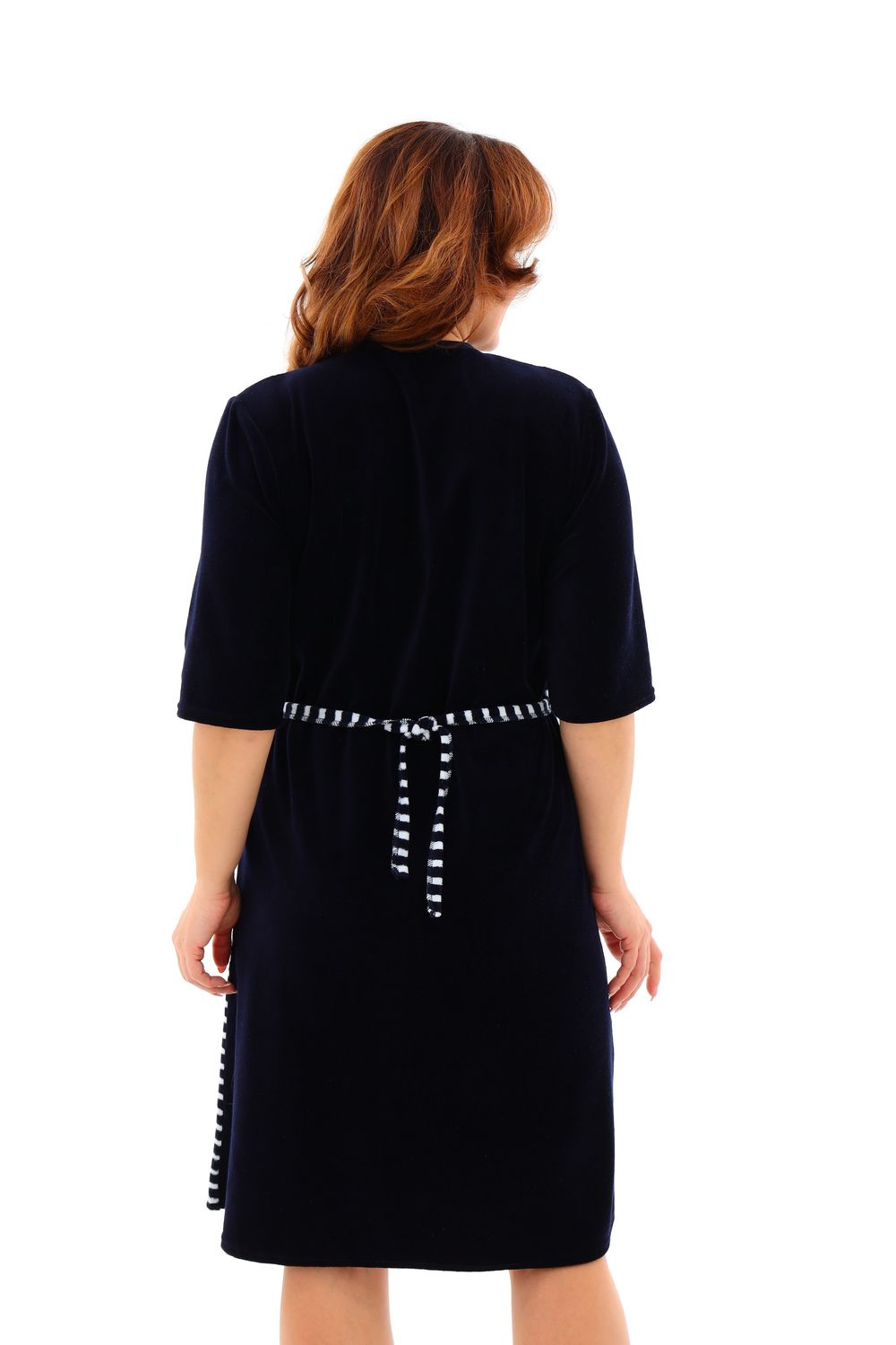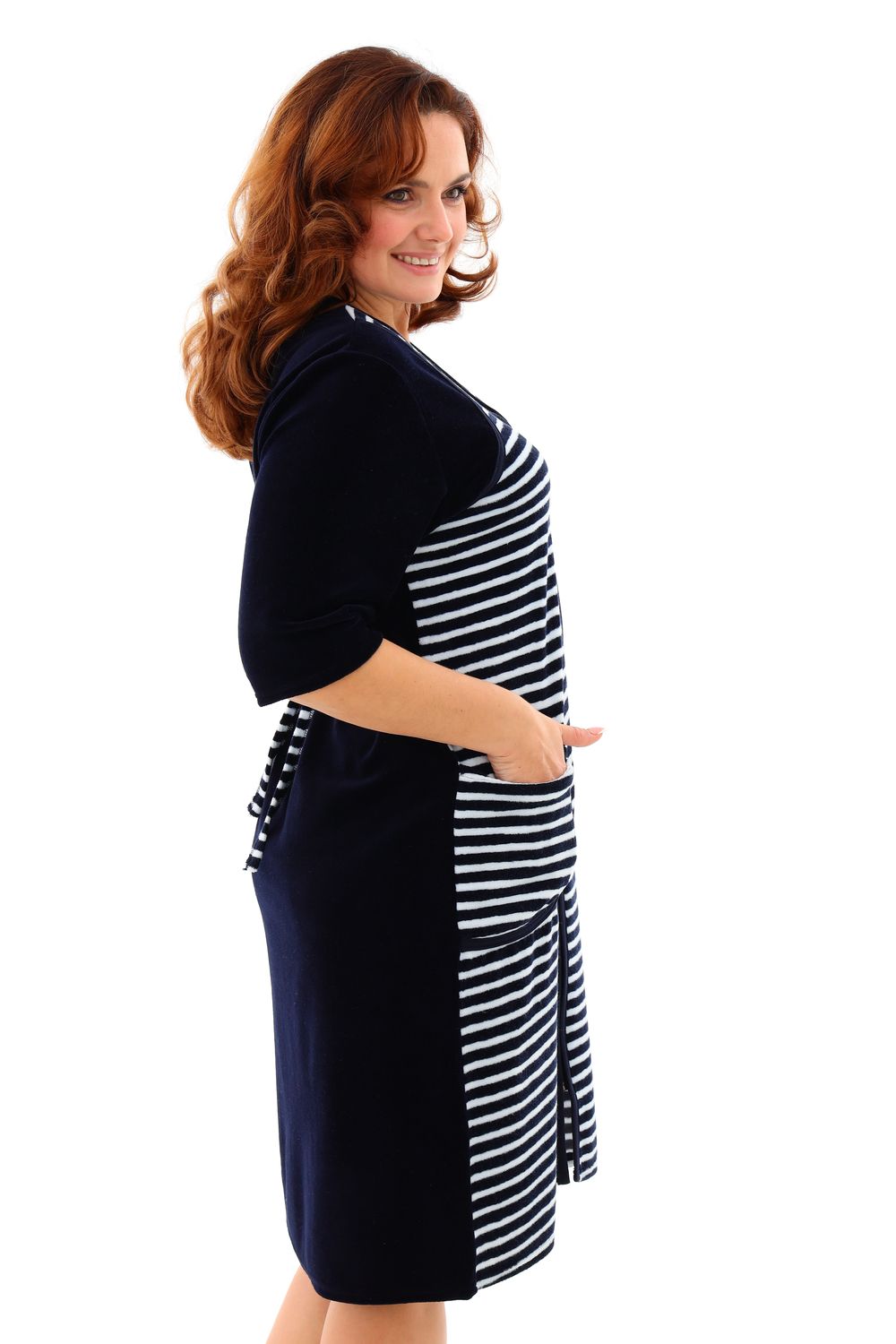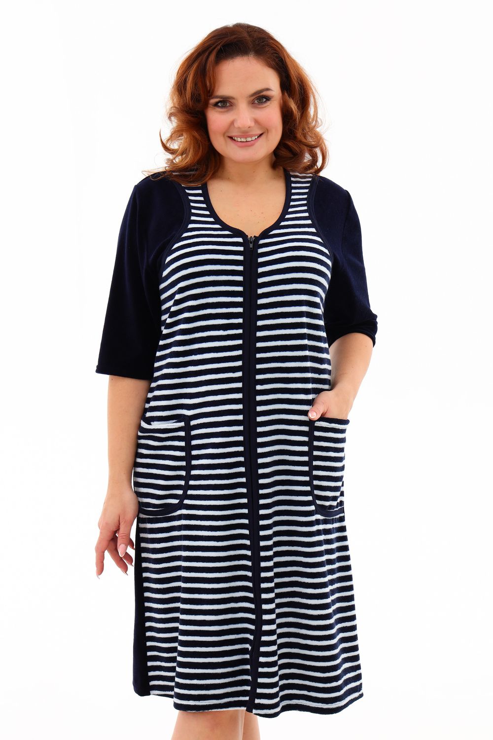 Мягкий женский халат из велюра. Пятнистый дизайн, однотонные рукава и вставки, застегивается на молнию, рукава ниже локтей, по бокам карманы, длина приблизительно до коленей. Размеры от 46 до 62. Имеется возможность приобрести данный товар по розничной цене.