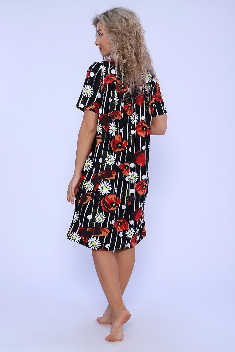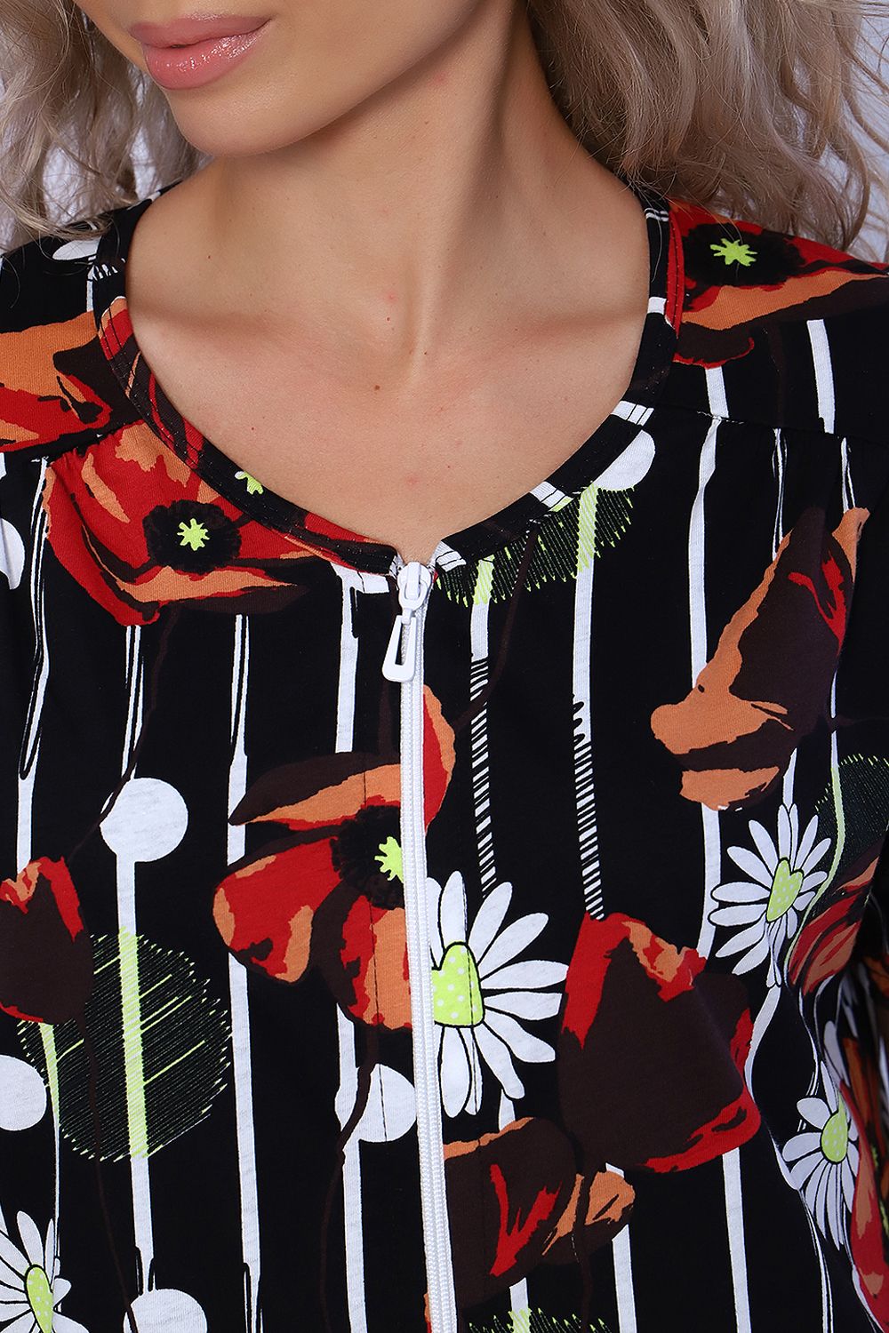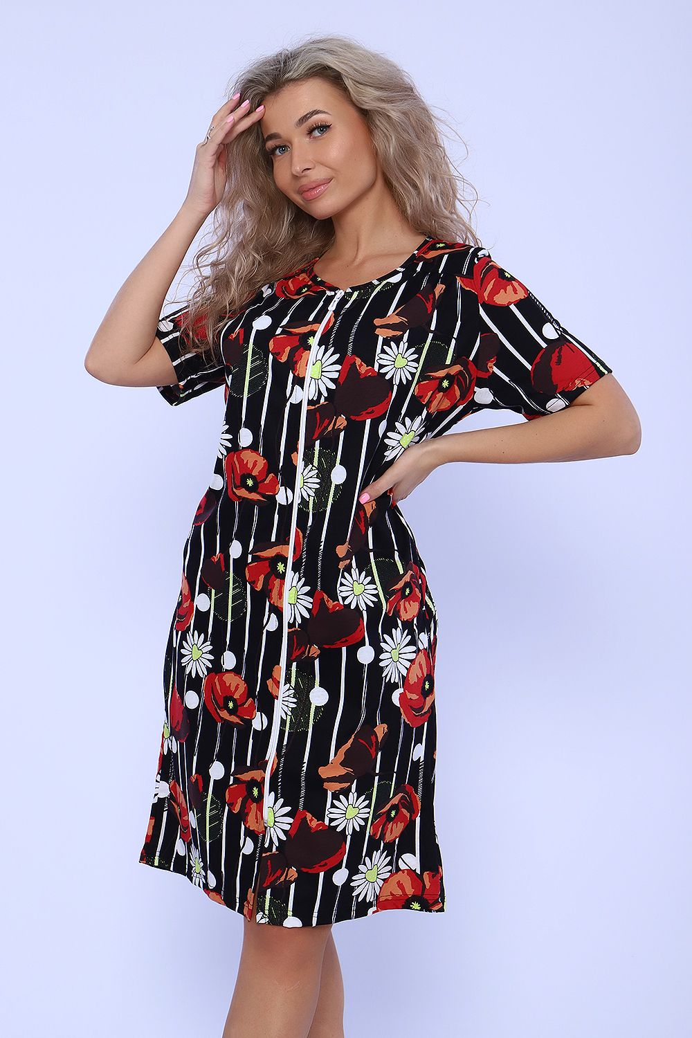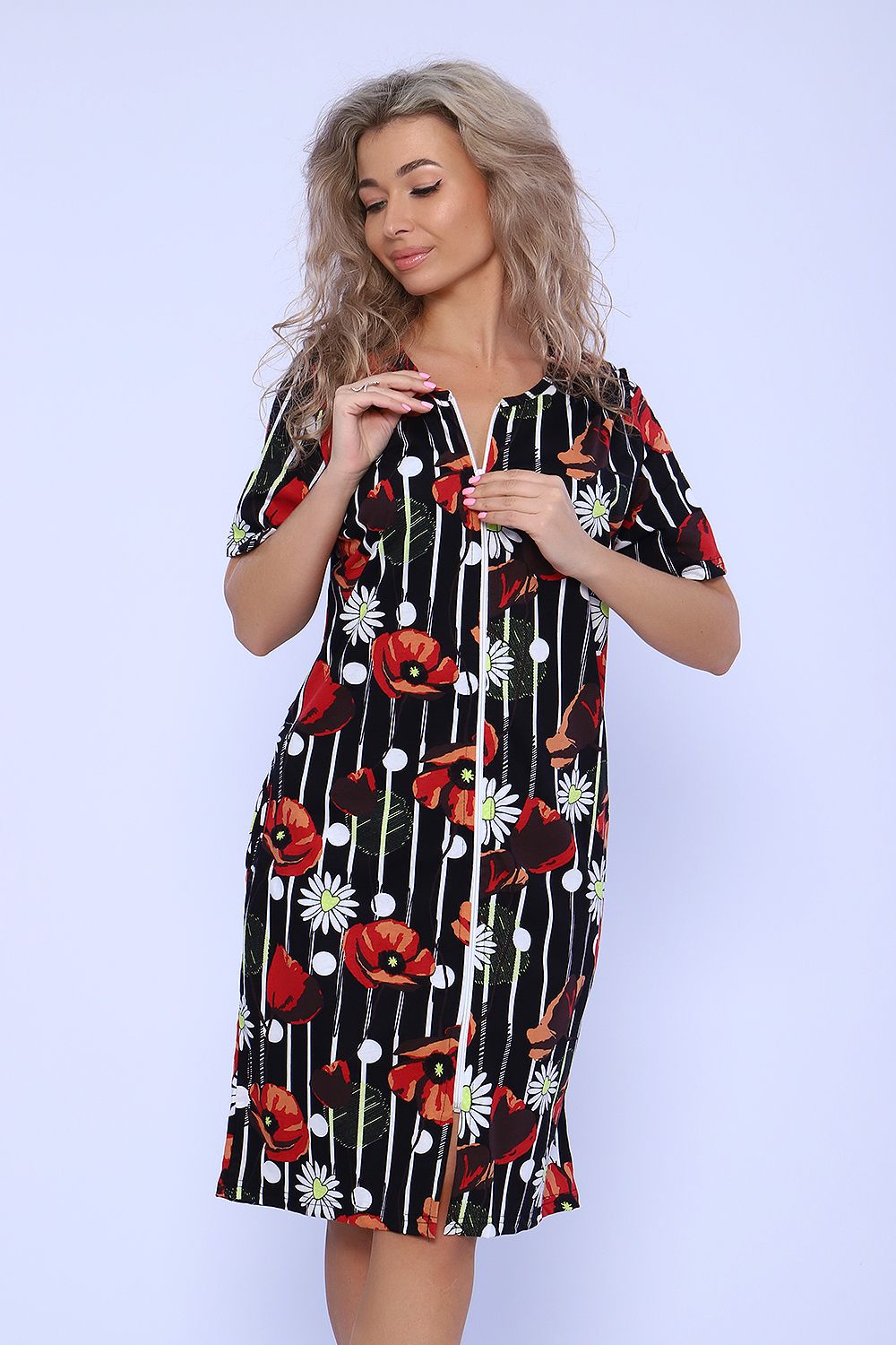 Халат на молнии свободного силуэта с короткими рукавами. Полочка и спинка на кокетках и со сборкой. Карманы в боковых швах. Комфортен для повседневной носки.