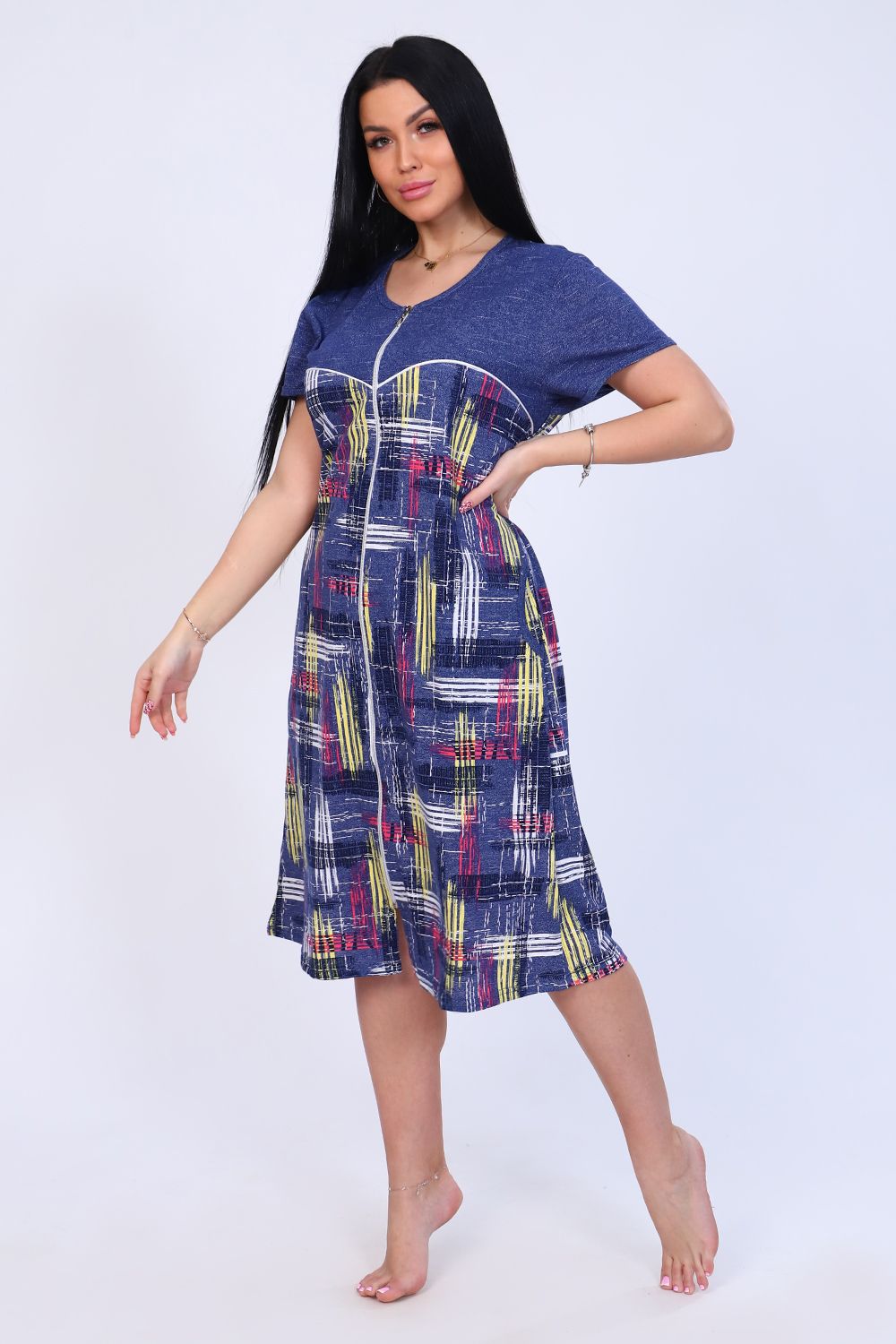 Халат удлинённый на молнии с коротким рукавом и поясными завязками. Халат будет хорошо смотреться на разных типах женской фигуры и подойдет для женщин всех возрастов. Изделие выполнено из 100% хлопка, благодаря чему модель абсолютно комфортна в носке, мягкая и приятная к телу, что прекрасно подойдет для дома, дачи и отдыха.