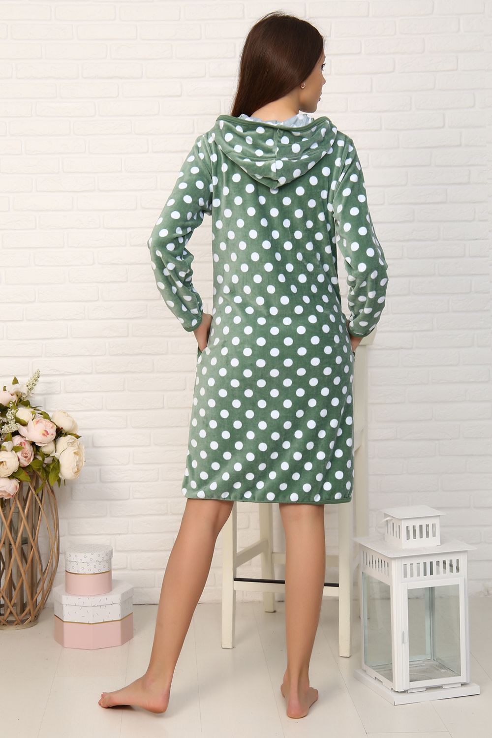 Халат велюровый на молнии, с капюшоном, по бокам карманы. Отделка - кант в цвет основной ткани. Уютный и теплый халат для отдыха, спокойной расцветки цвета какао, набивка - белые звезды