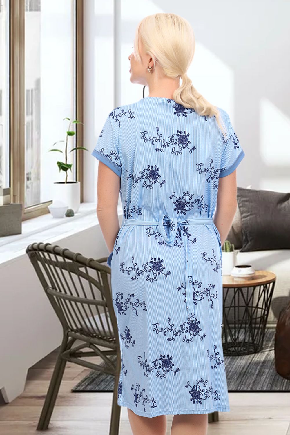 Халат женский на молнии. Короткий рукав, с карманами, отделка контрастной тканью на рукавах, горловине и карманах. Декоративная молния, на талии подрез
