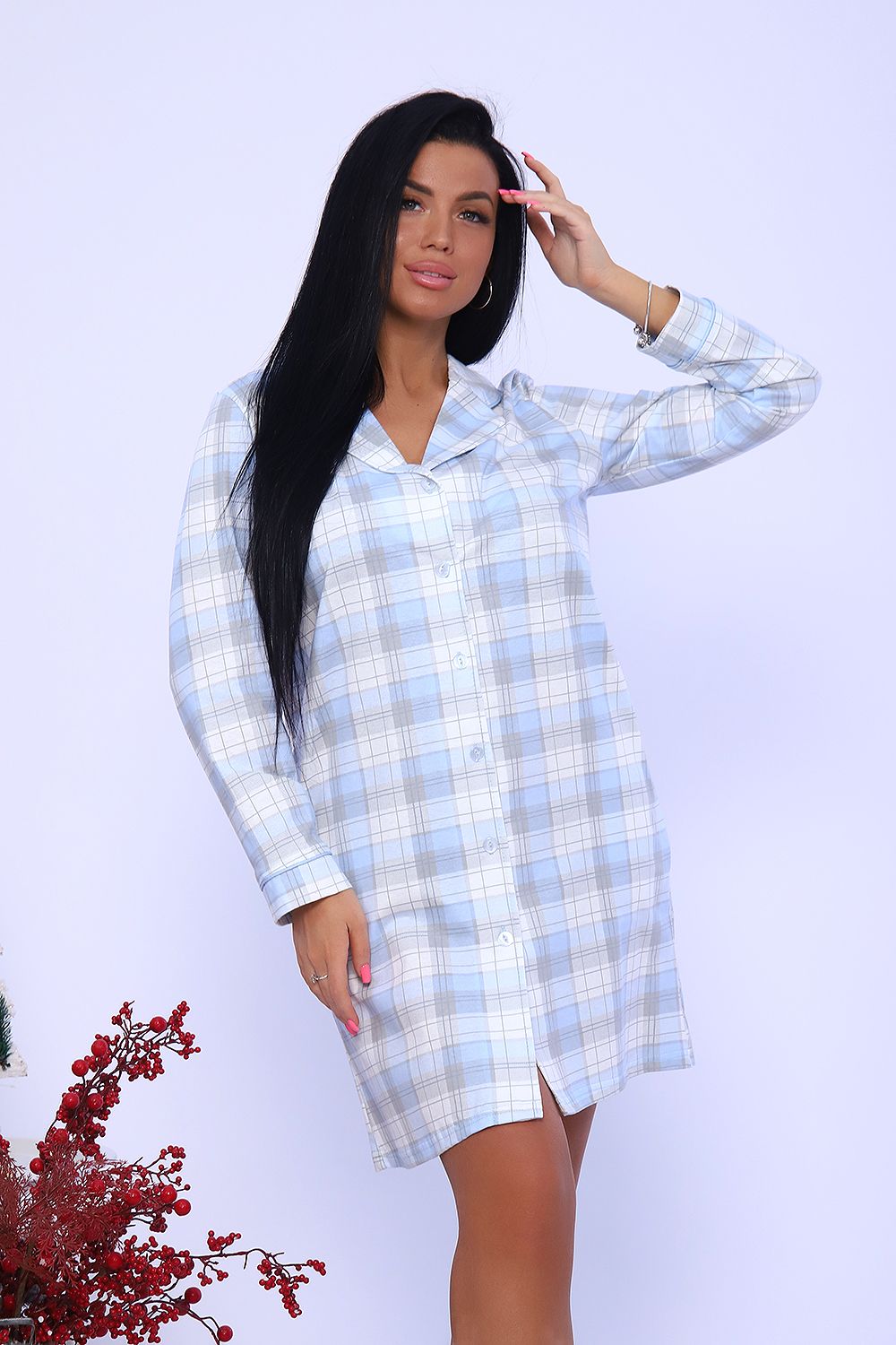 Женский халат-рубашка на пуговицах чуть выше колена с длинным рукавом на манжете с кантом. Воротник фигурный рубашечного типа, обработан кантом. Карманы в боковых швах. Модель выполнена из высококачественного 100% хлопка, на ощупь ткань напоминает фланель, что создает комфорт и уют при носке. Модный дизайн. Можно носить дома как халат-рубашку или на улице как платье. Подойдет на любую фигуру, скроет недостатки. Широкий размерный ряд. Отличный подарок любимым!