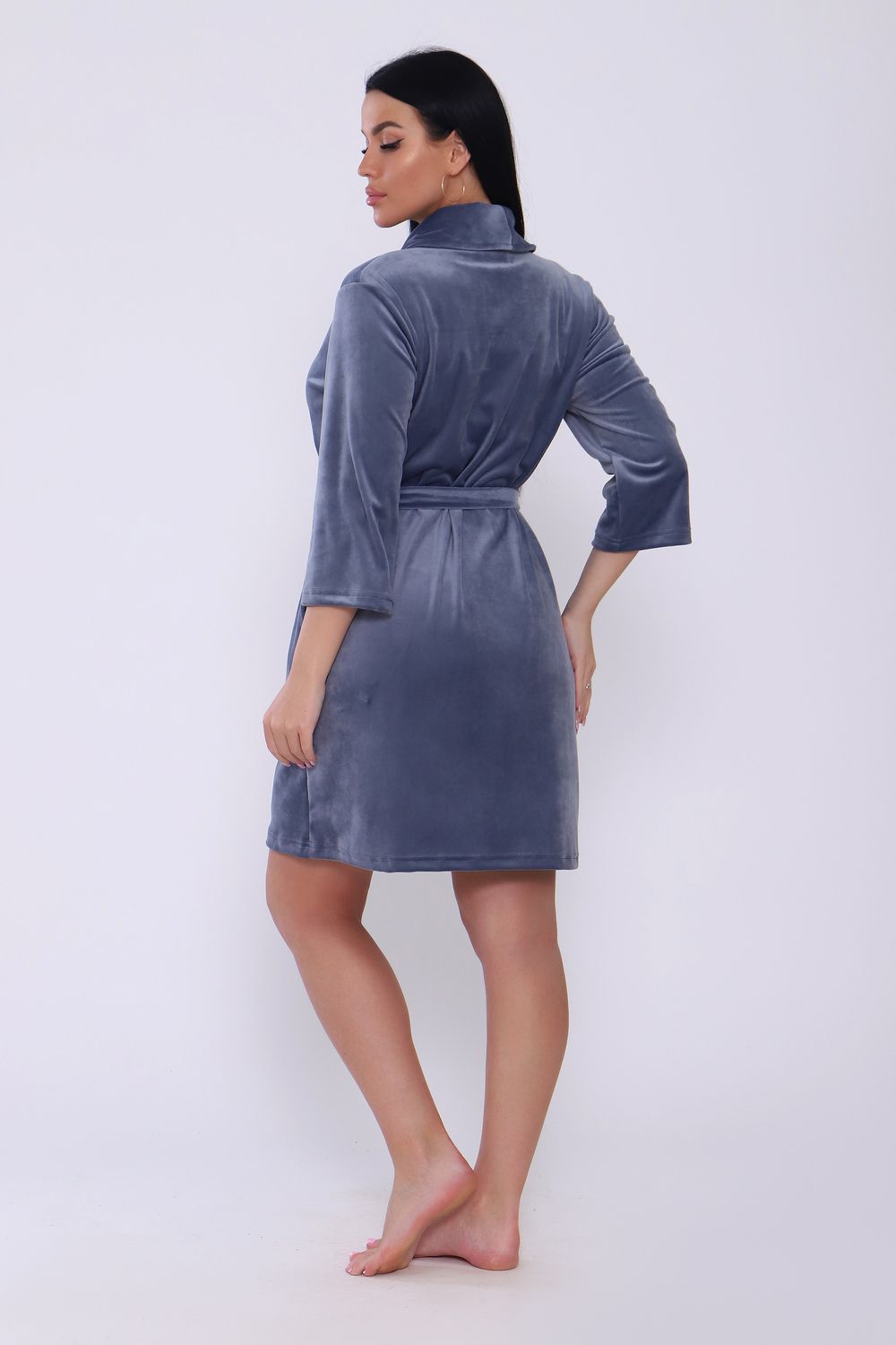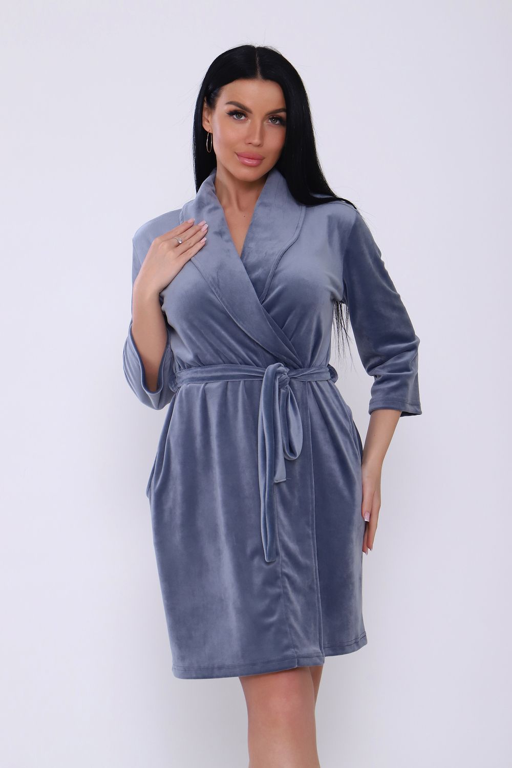 Женственный халатик на запах с поясом полуприлегающего силуэта длиной чуть выше колена с воротником - шалькой. Выполнен из нежной бархатной ткани приятных оттенков - велюра, которая очень приятна к телу, в меру теплая и практически не мнется, что делает ношение вещи удобнее. Халат оснащен внутренним поясом. По краю борта декоративная отстрочка шириной 0,5 см. Рукав втачной длиной 3/4. Укороченная длина рукава удобна для ношения на кухне. Два кармана с фигурным входом расположены в боковых швах. На уровне талии две петли для пояса. Низ изделия и рукава подогнуты на плоскошовной машине, длина пояса 170 см. Халат на запах - незаменимая вещь в гардеробе каждой женщины, комфортна в ношении и может быть прекрасным подарком для любимых.