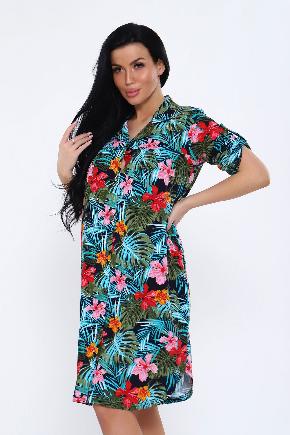Халат - рубашка свободного силуэта с английским воротником и карманами в боковых швах. Спереди кокетка, нагрудные выточки в виде складок, что дает свободу движений. Идеально подойдет для девушек с пышными формами и для беременных. Рукав 3/4 с патой.