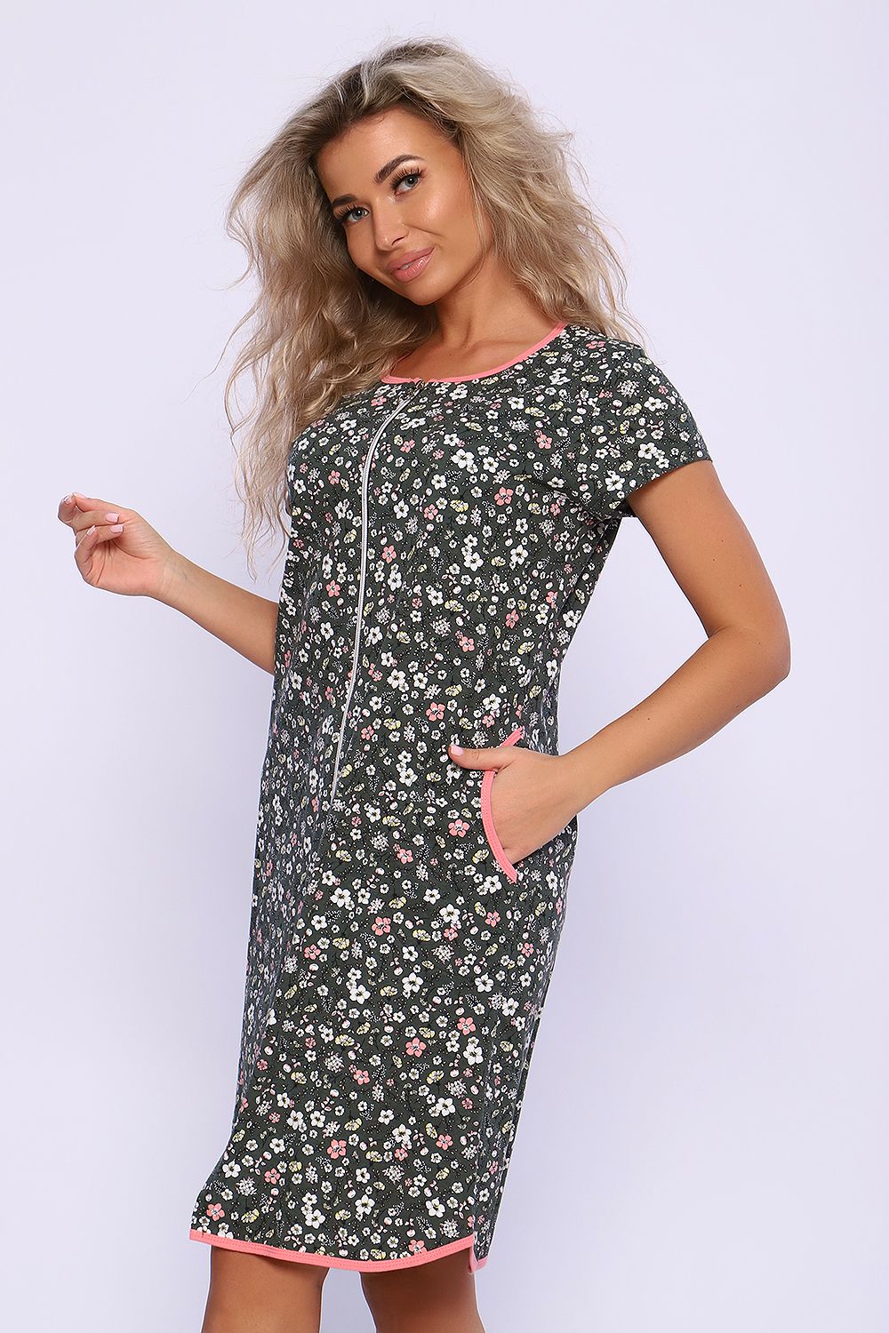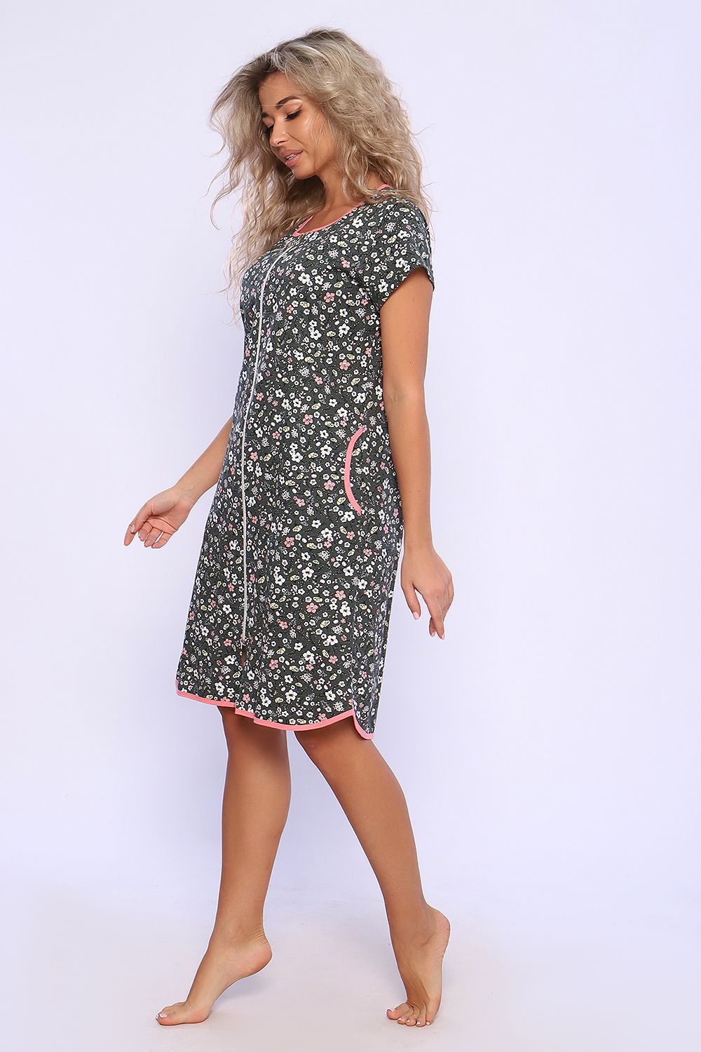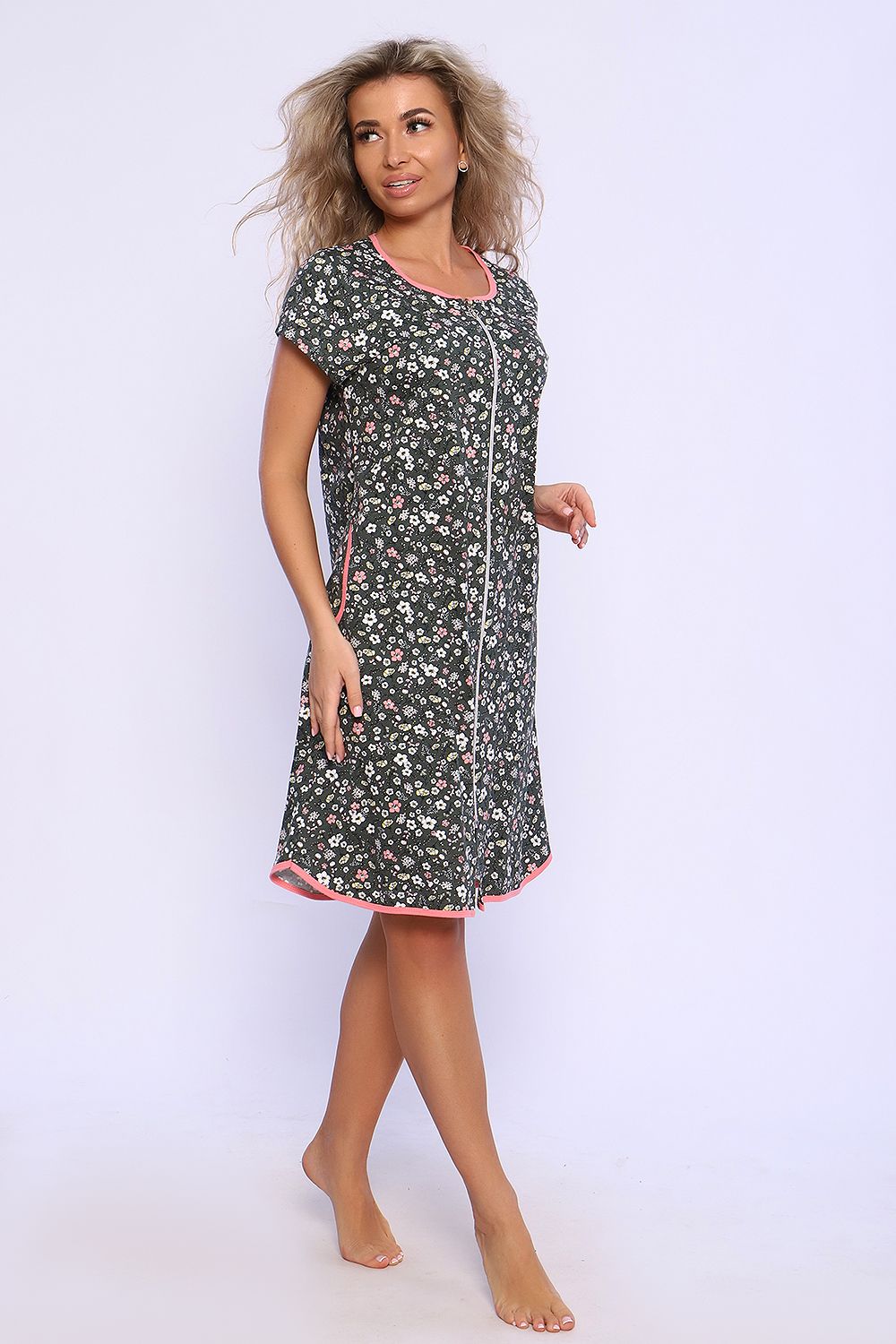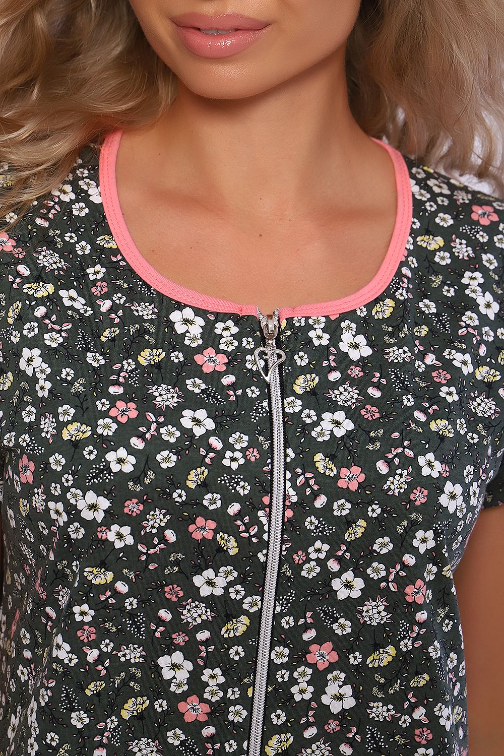 Халат женский на молнии. Рукав короткий. Горловина, карманы и низ изделия обработаны яркой отделочной бейкой. Низ изделия закруглен к боковому шву. Халат изготовлен из натурального хлопка. Ткань износостойкая и приятная к телу. В нашем халатике Вам будет очень удобно и комфортно.