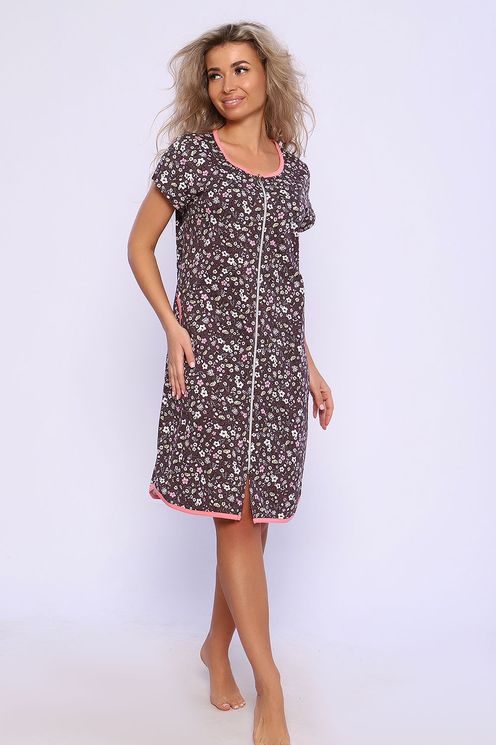 Халат женский на молнии. Рукав короткий. Горловина, карманы и низ изделия обработаны яркой отделочной бейкой. Низ изделия закруглен к боковому шву. Халат изготовлен из натурального хлопка. Ткань износостойкая и приятная к телу. В нашем халатике Вам будет очень удобно и комфортно.
