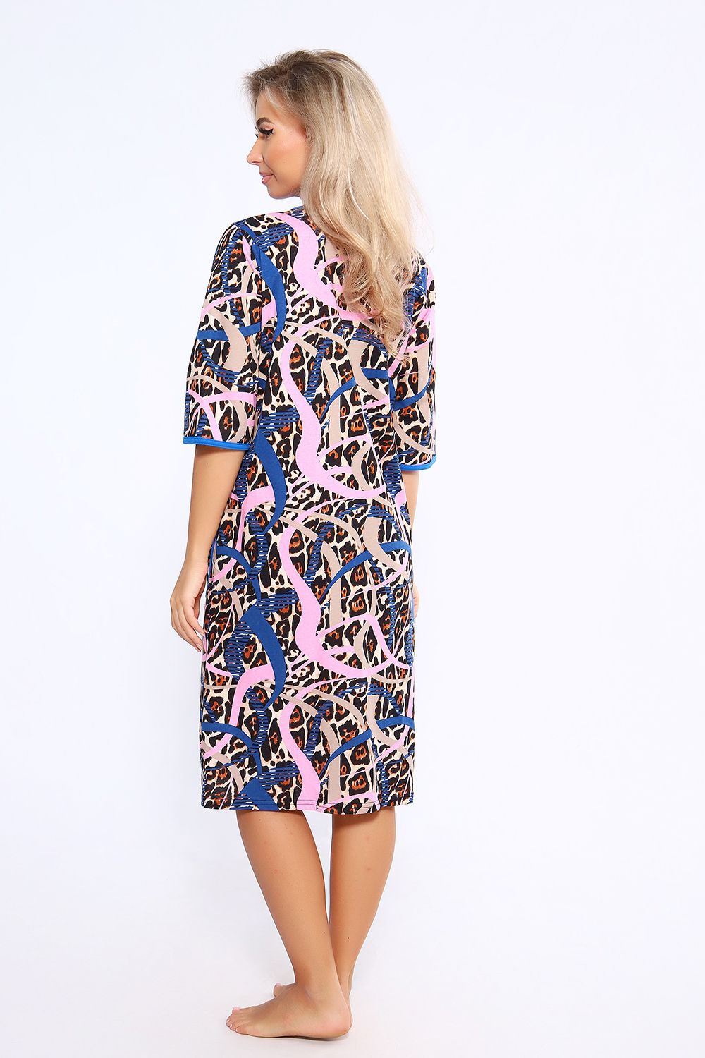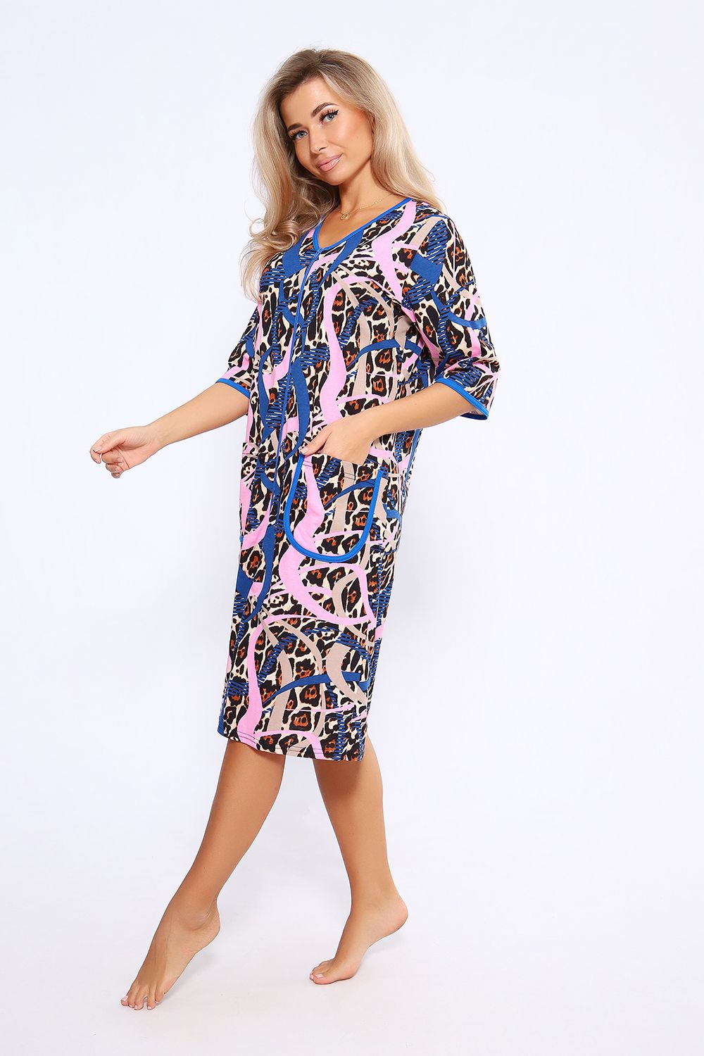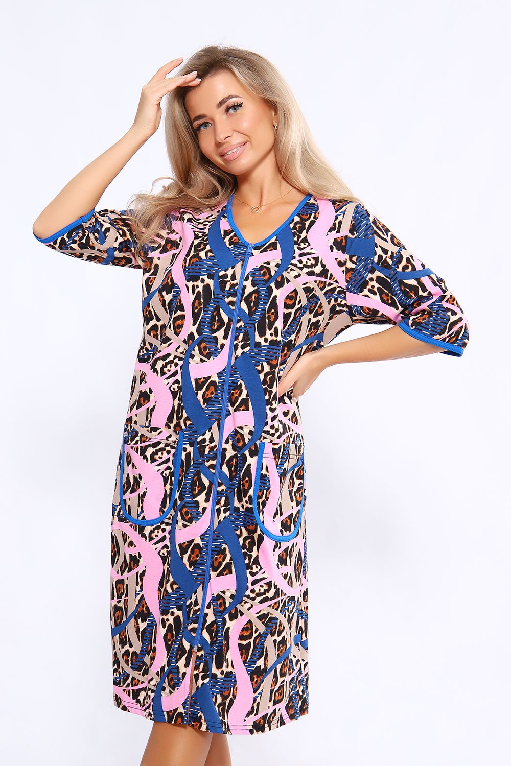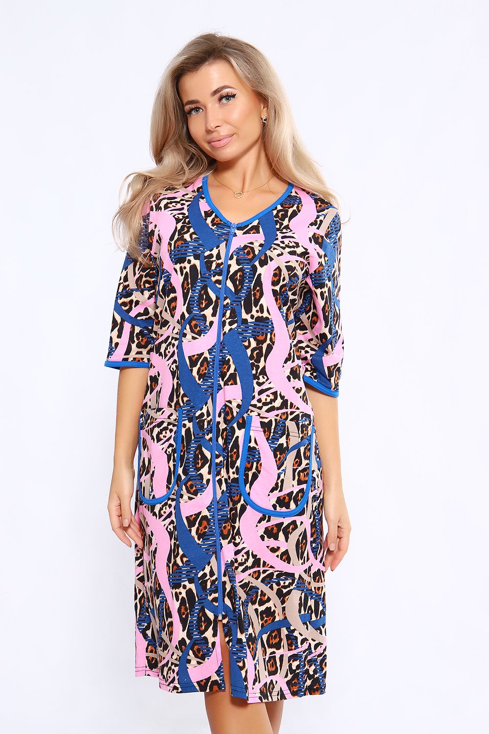 Красивый женский халат на молнии. Рукав 3/4. Горловина, рукава и накладные карманы обработаны бейкой из отделочной ткани. Халат прекрасно подойдет для дома, дачи и отдыха.