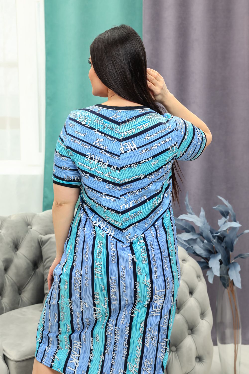 Халат женский полуприлегающего силуэта. Горловина округлая, рукав втачной короткий. Застежка на тесьму-молнию. Халат состоит из верхней и нижней частей с разнонаправленной полосой. На полочке имеются внутренние карманы.