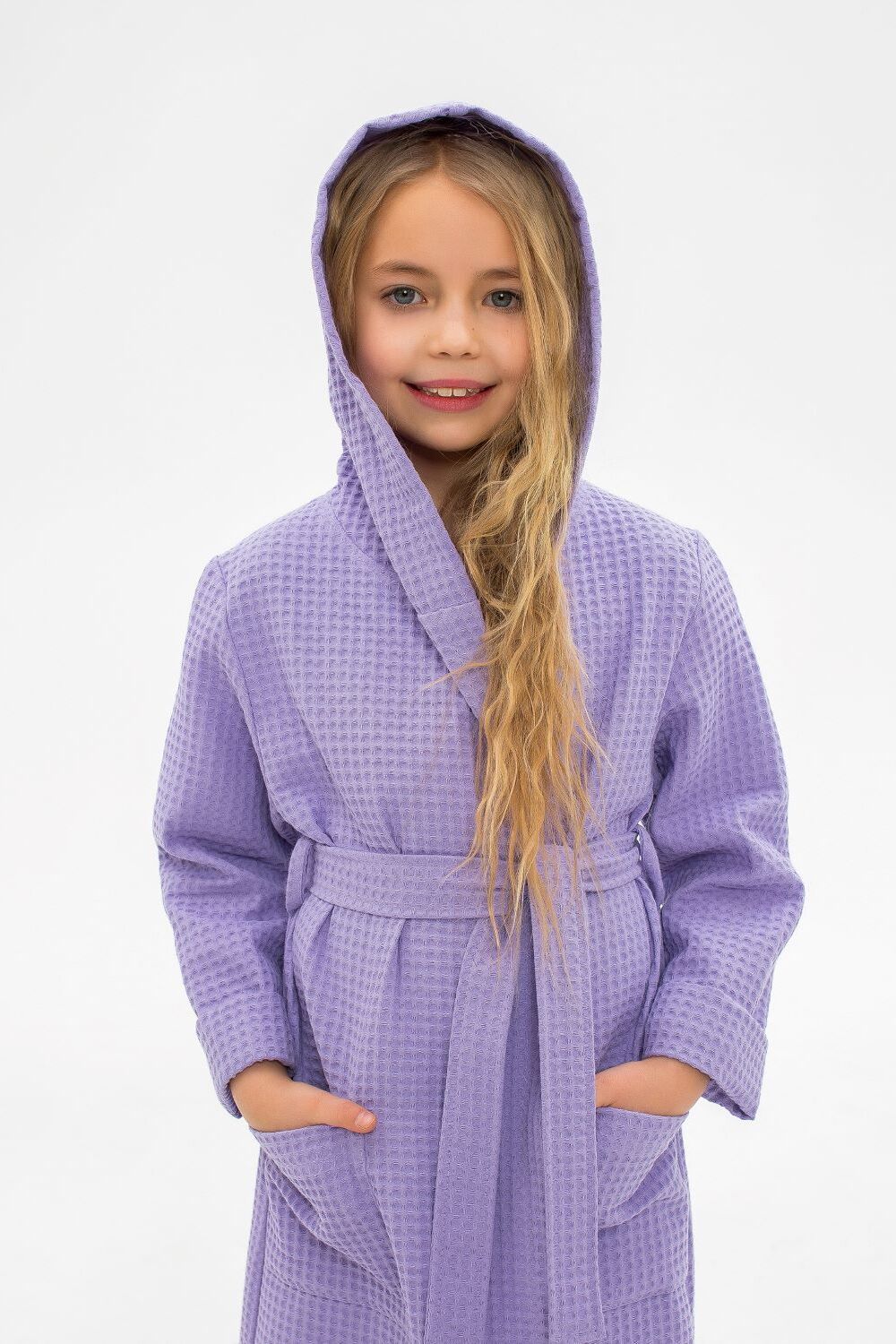 Халат вафельный детский. Модель с капюшоном на запах, с поясом в тон. Вафельное полотно 100% хлопок, плотностью 242 гр/м. Халат отлично подойдет как для дома, так и для бани, и для сауны или бассейна. Домашний халат - удобная и стильная удлиненная модель с глубоким капюшоном и длинным рукавом. Вафельный банный халат отлично впитывает влагу, дышит и очень приятен к телу.