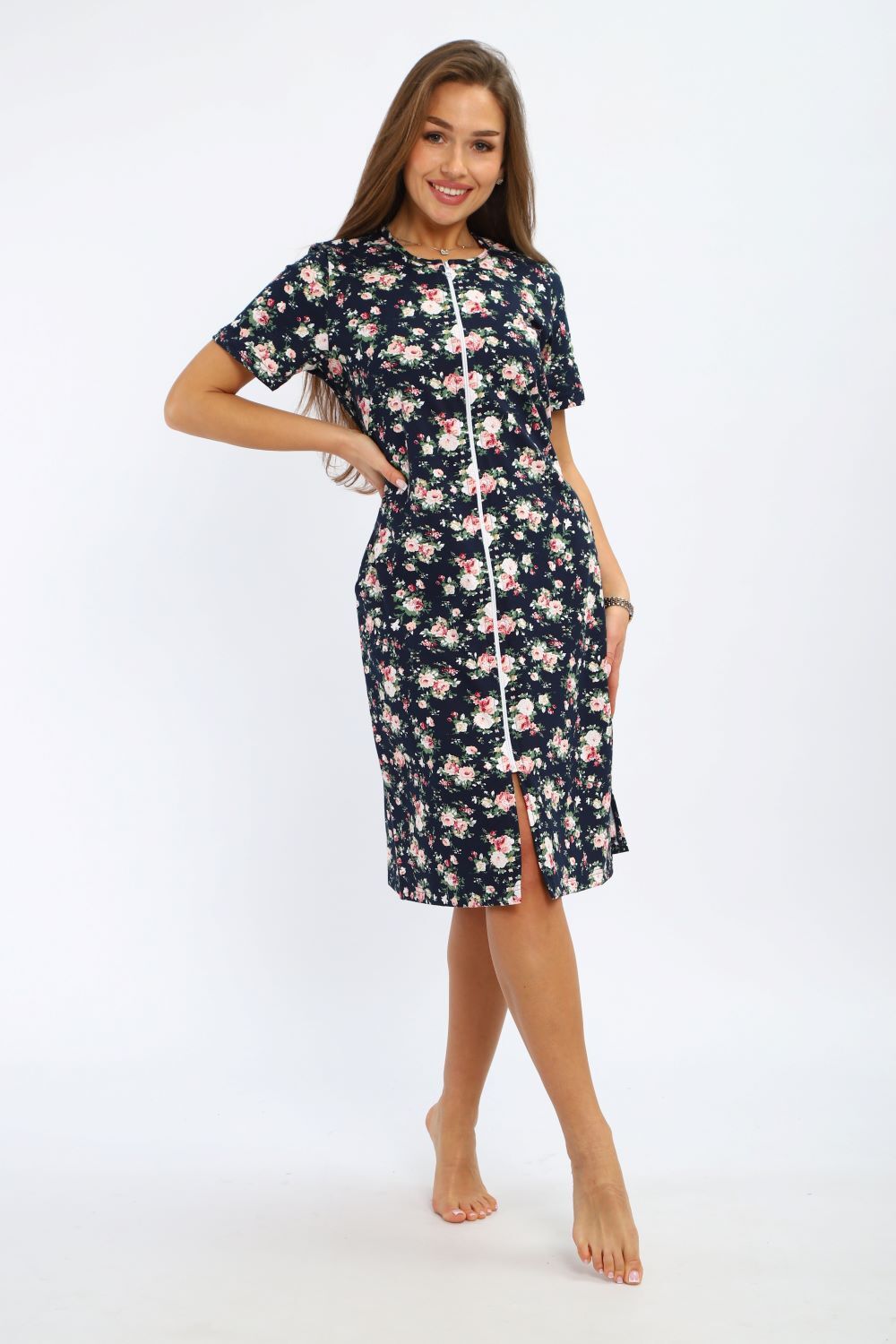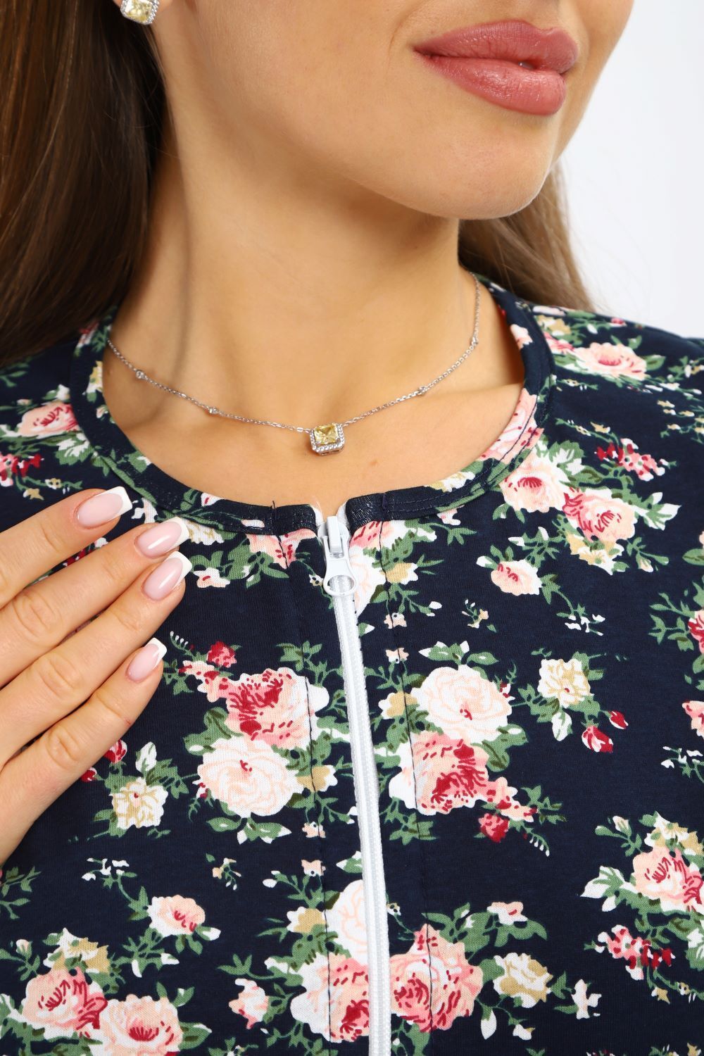ХАЛАТ домашний ПХДЖ - синий, розы