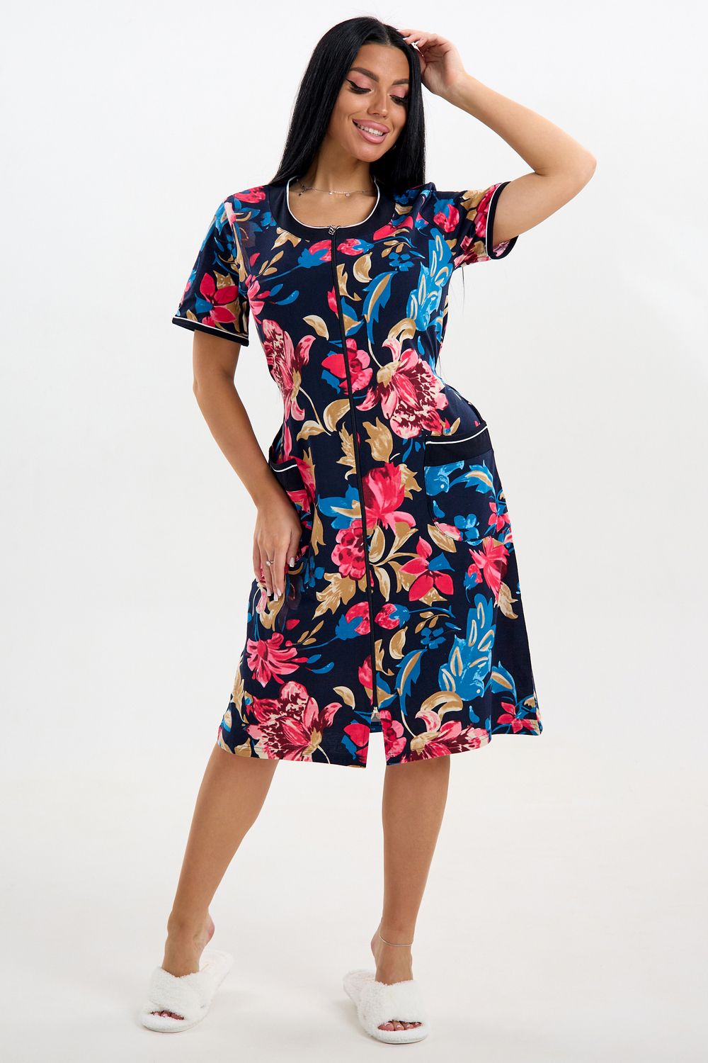 Этот халат станет отличным вариантом для домашнего использования. Он выполнен из мягкого трикотажа на основе хлопка, что обеспечивает комфорт в любое время года. Такой халатик идеально подходит для женщин, которые ценят уют и стиль в одежде. Модель предназначена для домашних дел, подойдет как для вечера, так и для утренних рутин. Изделие отличается тем, что регулируется хлястиком, что позволяет адаптировать любимый стиль к индивидуальным предпочтениям. Халаты подходят беременным и женщинам после родов за счет свободного кроя и удобства. Длинный вариант обеспечит тепло в прохладные дни, а короткий рукав добавит легкости в летние сезоны. Модель отлично будет смотреться на женщинах больших размеров, предоставляя разнообразные возможности стиля.