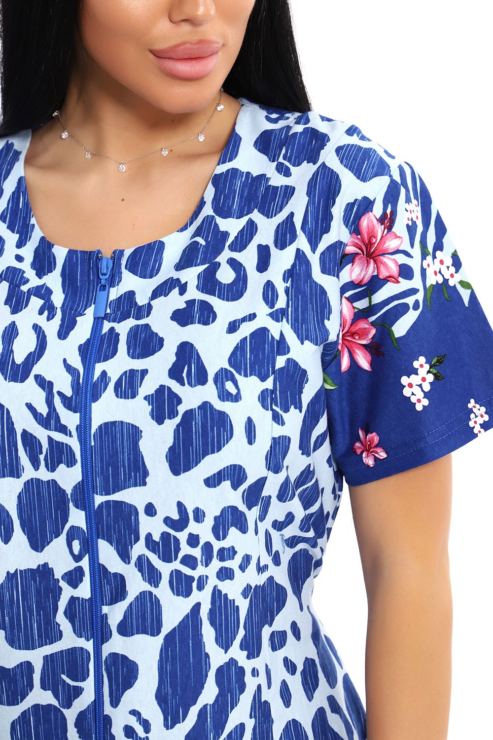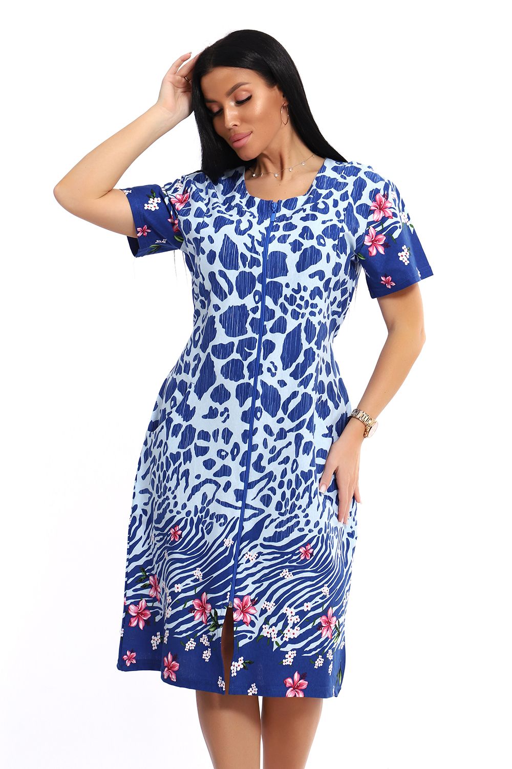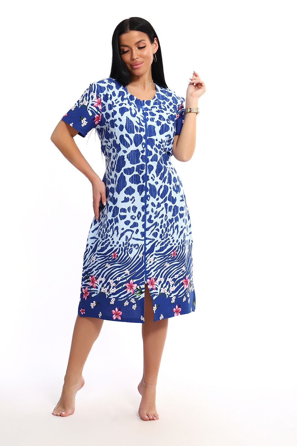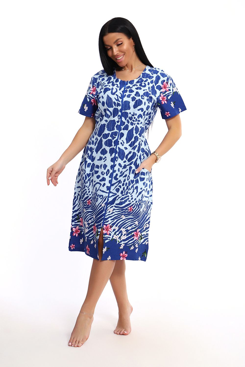 Уютный и удобный домашний женский халат из легкой хлопковой ткани создан для настоящих ценительниц качества и стиля! Это именно та домашняя одежда, в которой комфортно готовить еду, заниматься уборкой, стиркой и прочими бытовыми делами. Дизайн ткани представляет собой комбинацию принта с ярким цветочным рисунком, переходящим в модную леопардовую расцветку. Халат застегивается на молнию, поясок завязывается сзади. Короткий рукав позволяет носить халат в жаркое время года дома и на даче.