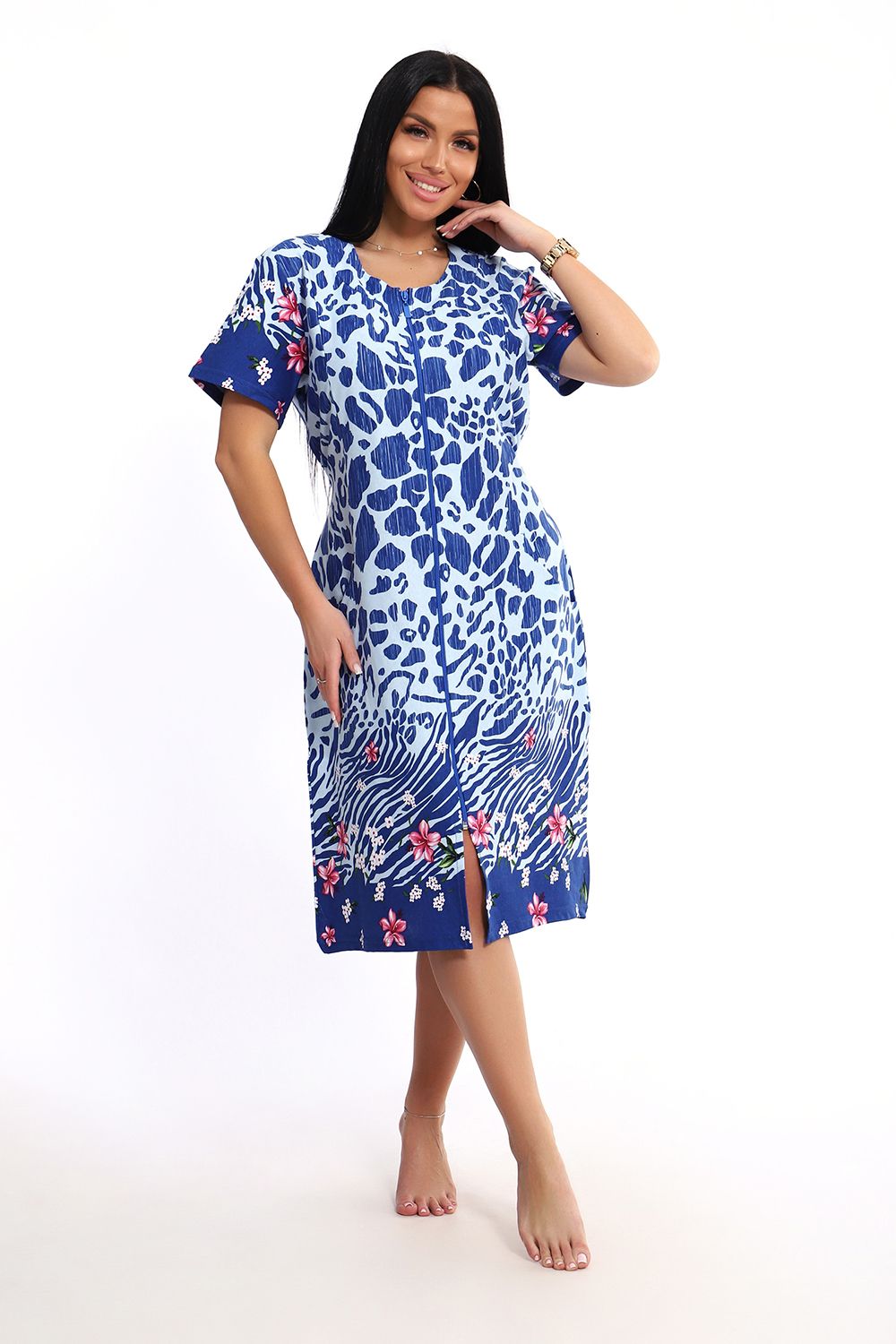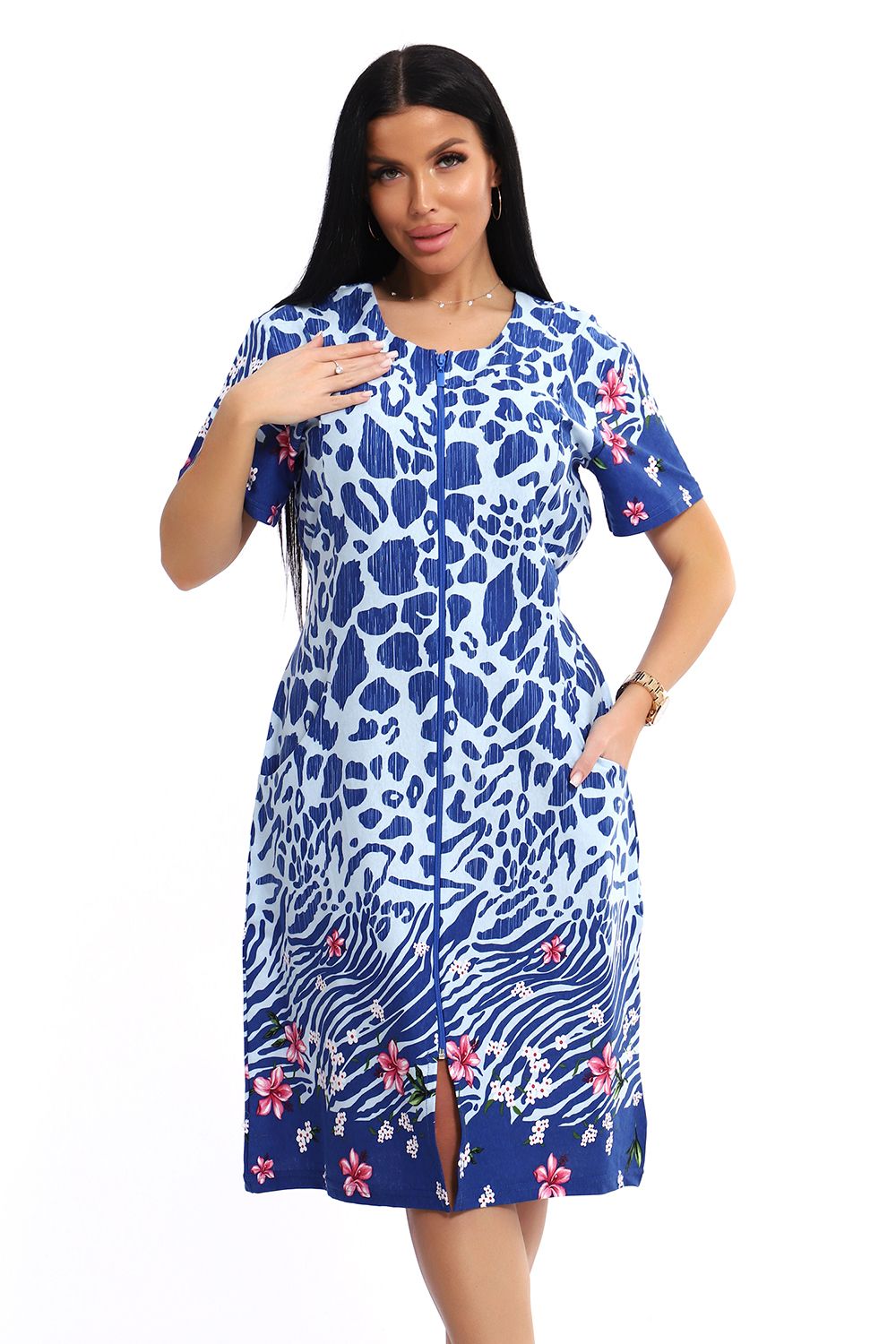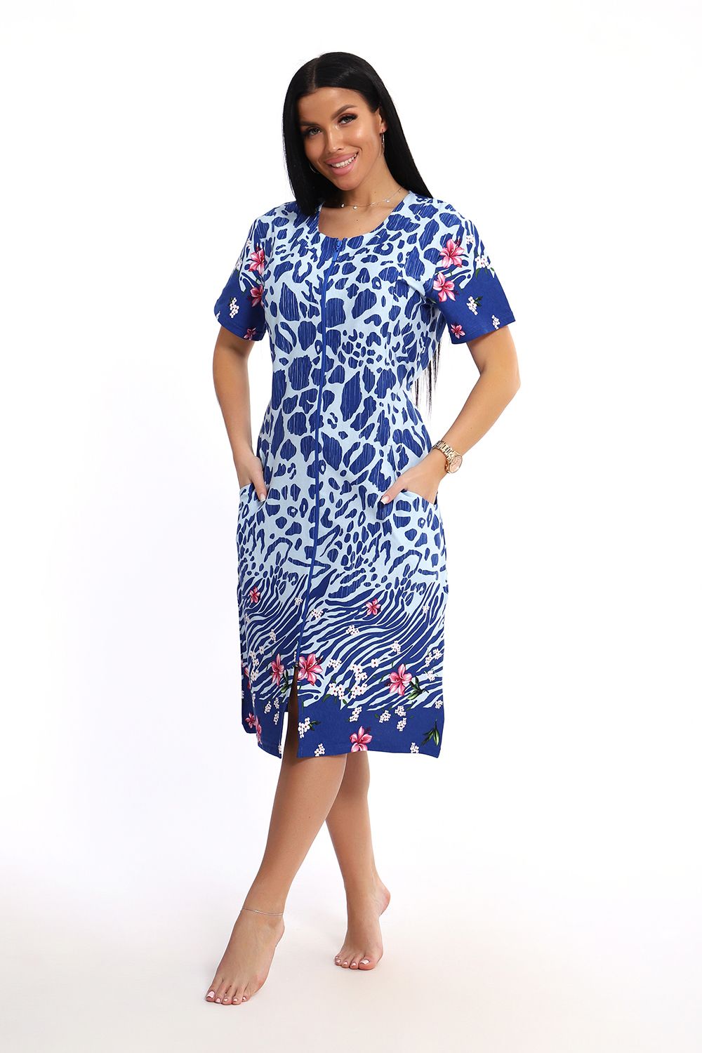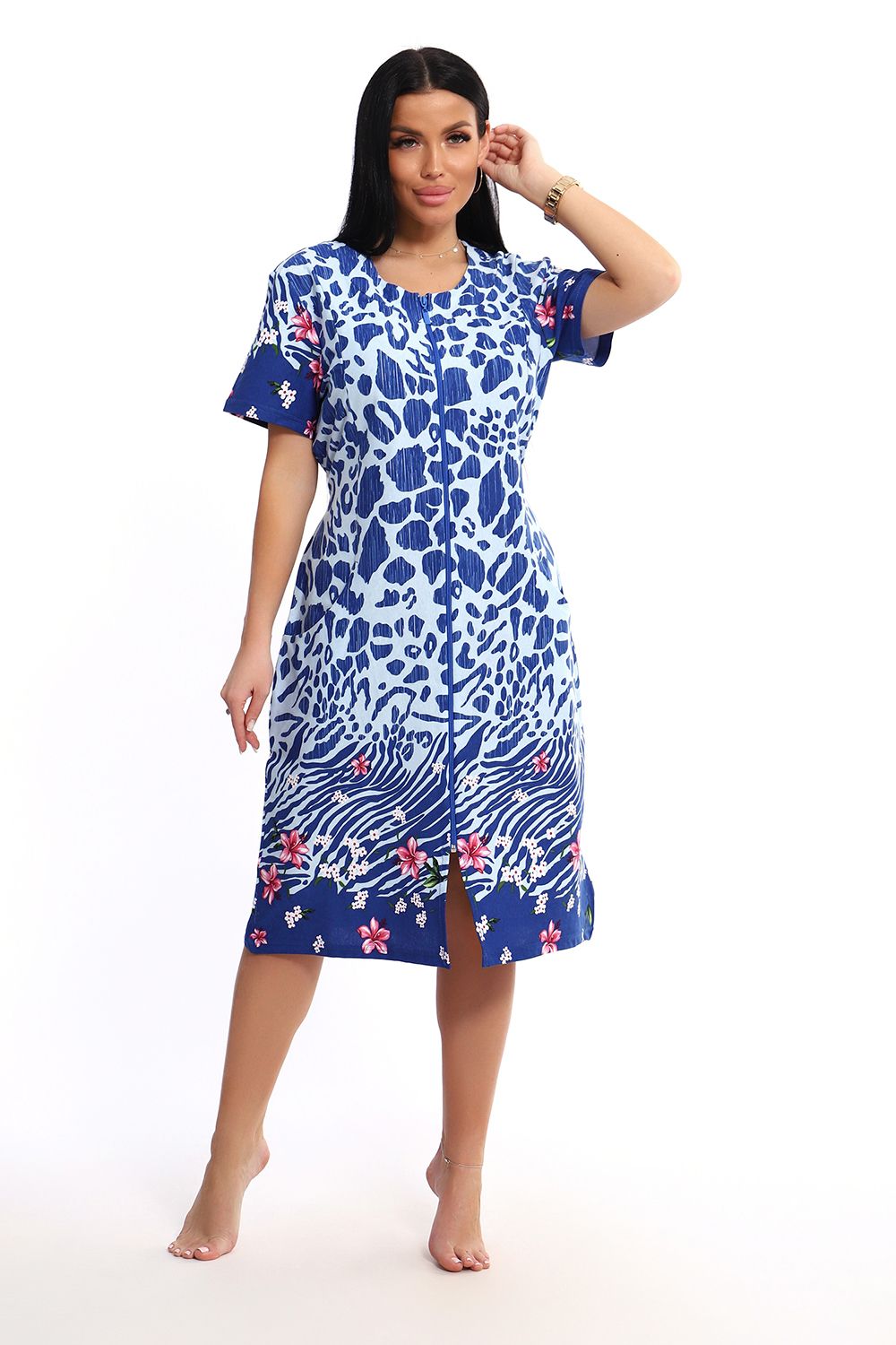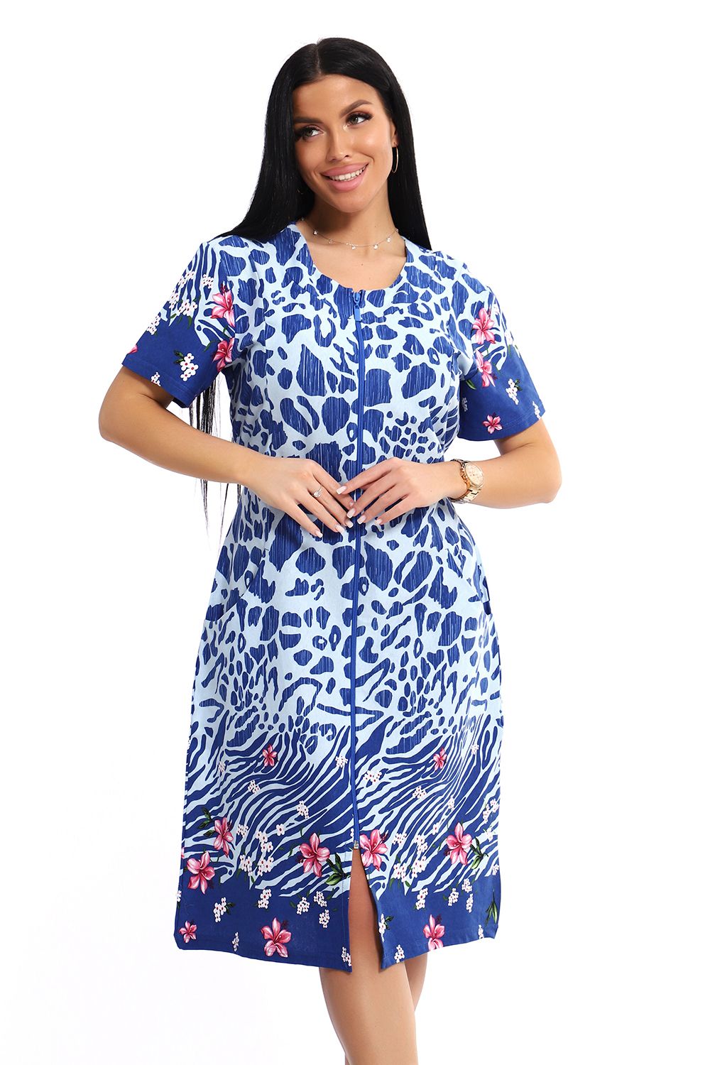 Уютный и удобный домашний женский халат из легкой хлопковой ткани создан для настоящих ценительниц качества и стиля! Это именно та домашняя одежда, в которой комфортно готовить еду, заниматься уборкой, стиркой и прочими бытовыми делами. Дизайн ткани представляет собой комбинацию принта с ярким цветочным рисунком, переходящим в модную леопардовую расцветку. Халат застегивается на молнию, поясок завязывается сзади. Короткий рукав позволяет носить халат в жаркое время года дома и на даче.