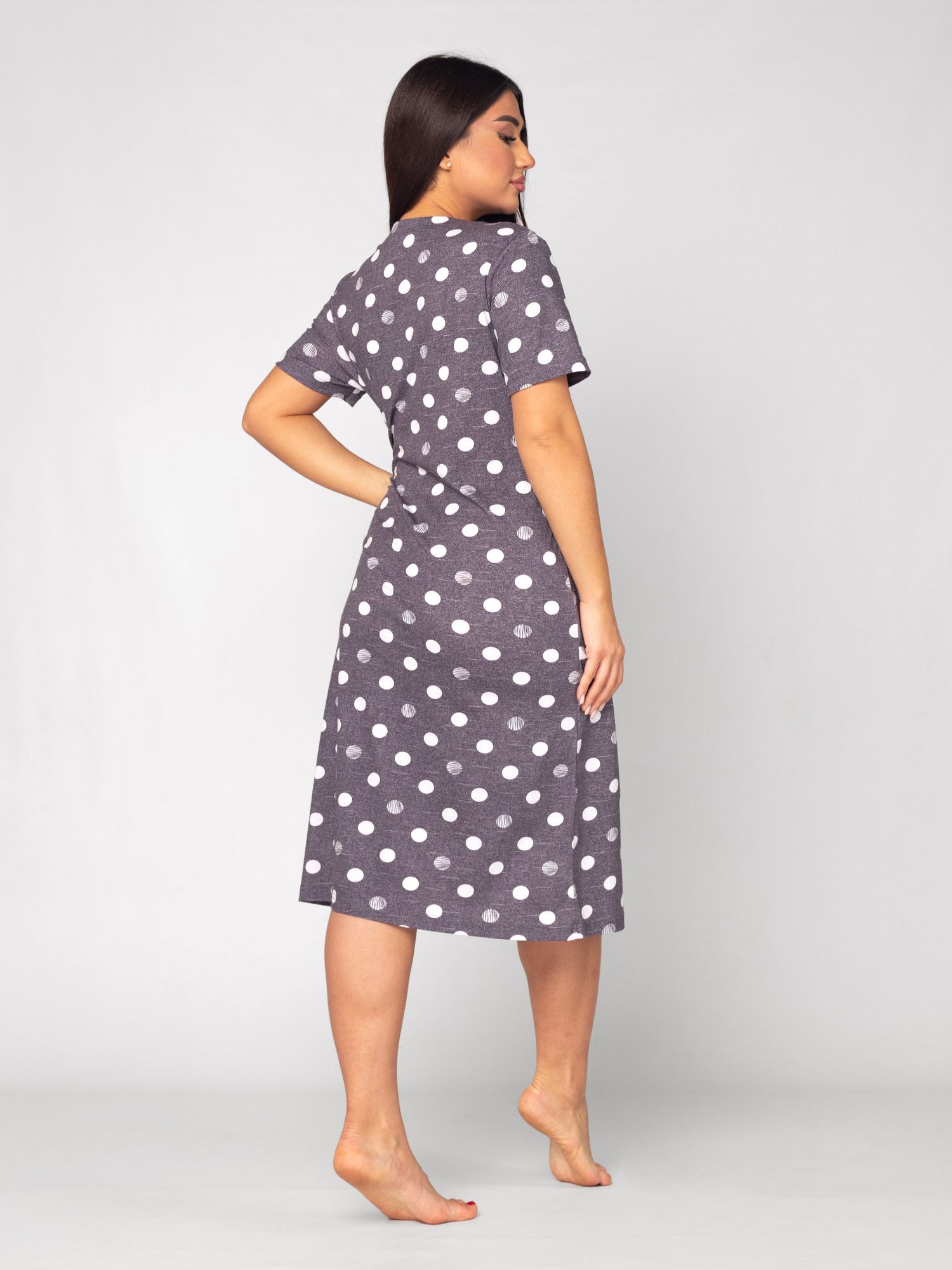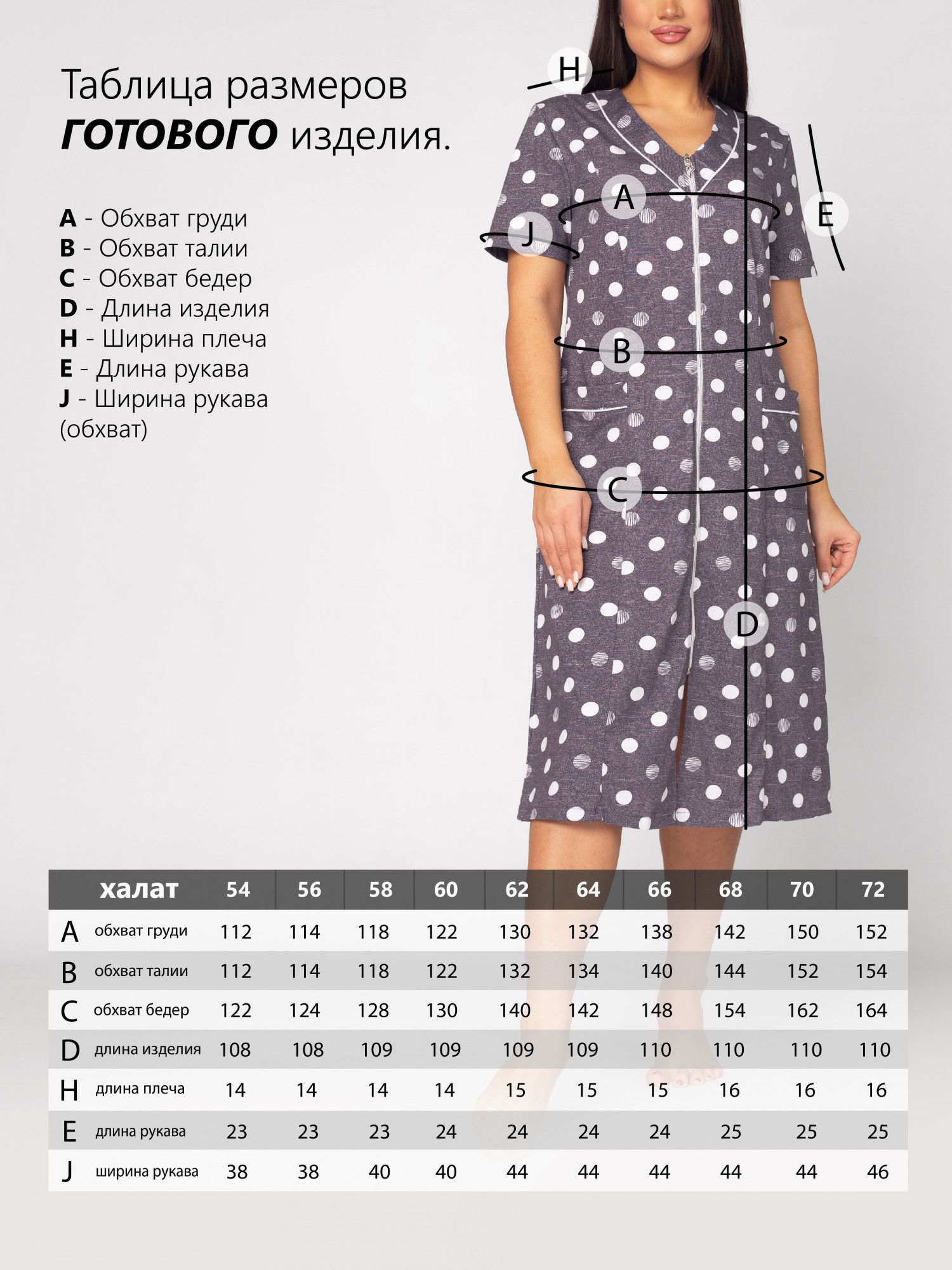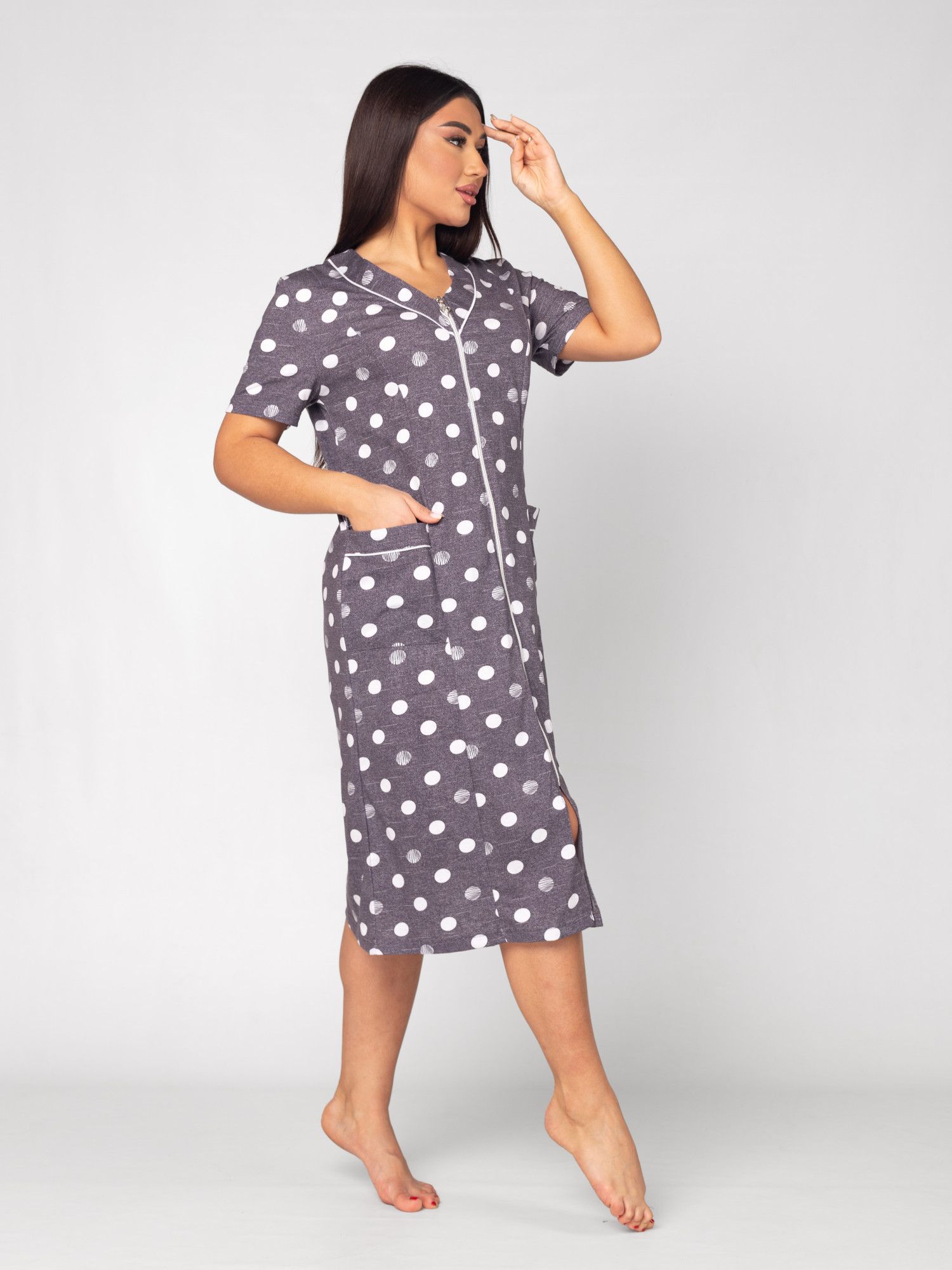Халат женский кулирка на молнии "НАДЕЖДА" ГОРОХ СЕРЫЙ 1