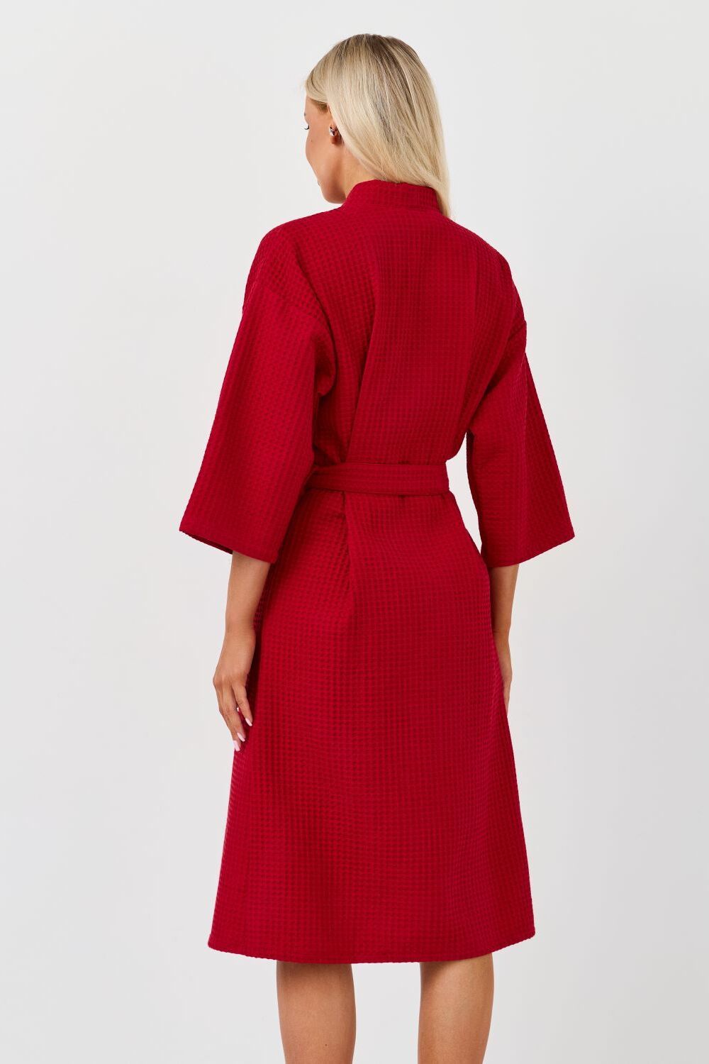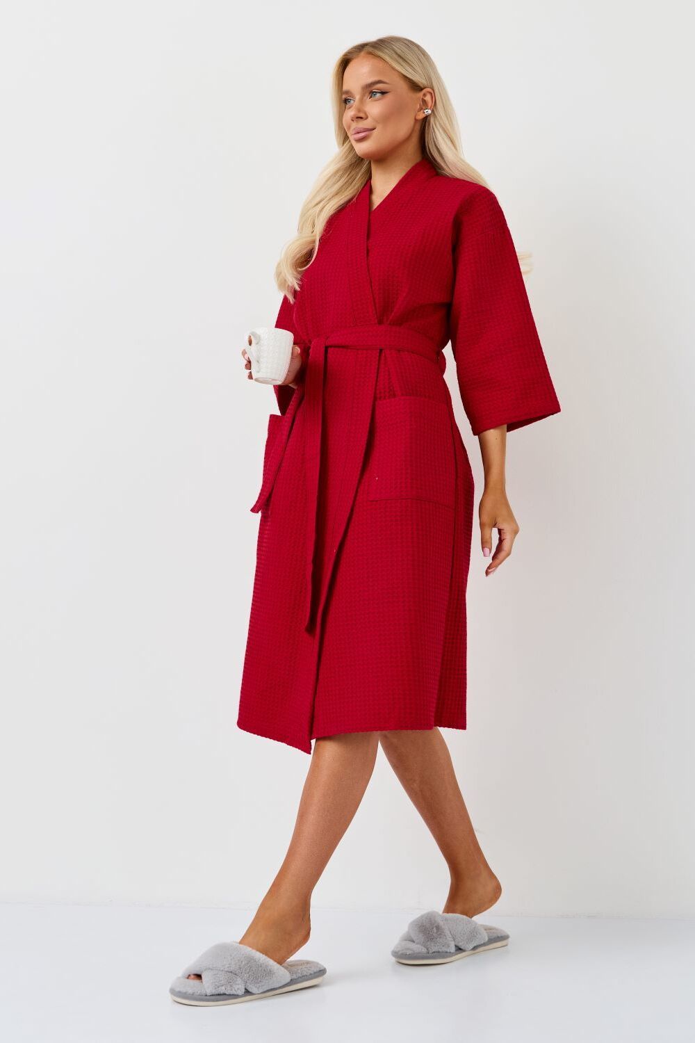 Вафельный халат-кимоно. Рукав 3/4. Карманы накладные. Воротник планка. Размерный ряд с 48/50 по 60/62. Плотность вафельного полотна 242 гр. Доступна возможность розничного приобретения. При первой стирке изделие дает усадку, это нужно учесть при выборе размера! Рекомендация по уходу и эксплуатации за изделием - бережная ручная стирка при температуре не более 30 С, без отжима. Для безупречного разглаживания складок и заломов изделие должно быть влажным.