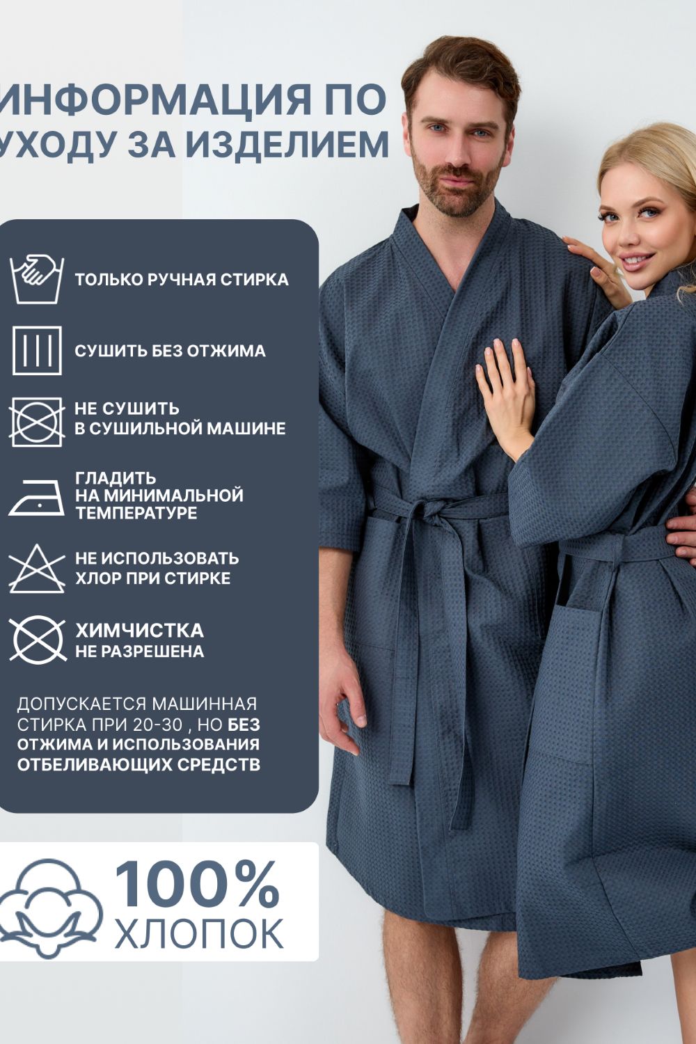 При первой стирке изделие дает усадку, это нужно учесть при выборе размера! Рекомендация по уходу и эксплуатации за изделием - бережная ручная стирка при температуре не более 30 С, без отжима. Для безупречного разглаживания складок и заломов изделие должно быть влажным