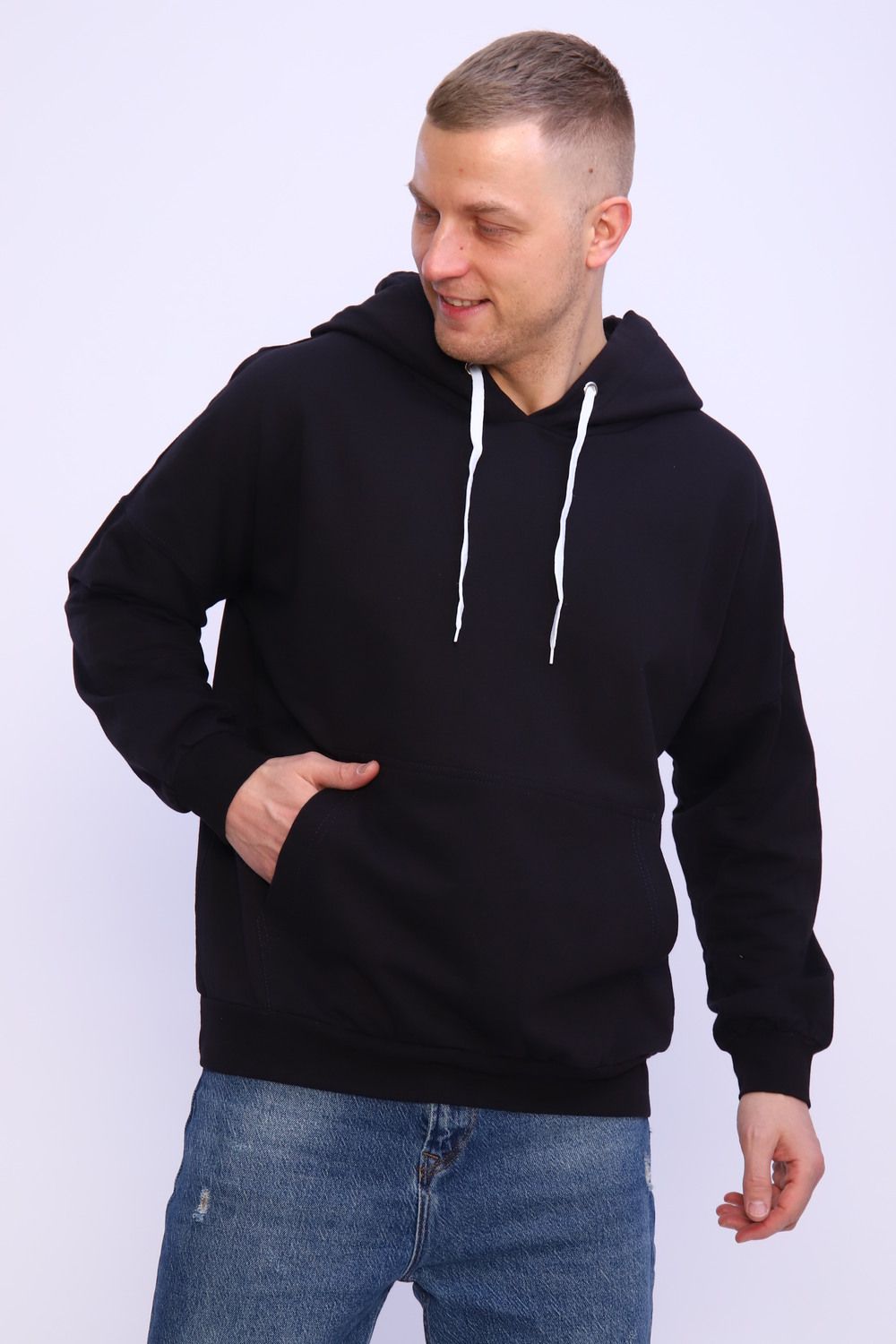Худи футер двухнитка с тонким начесом Арт. 1009 - черный