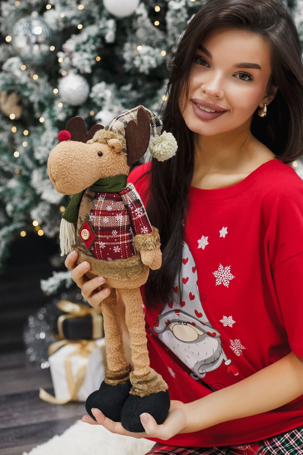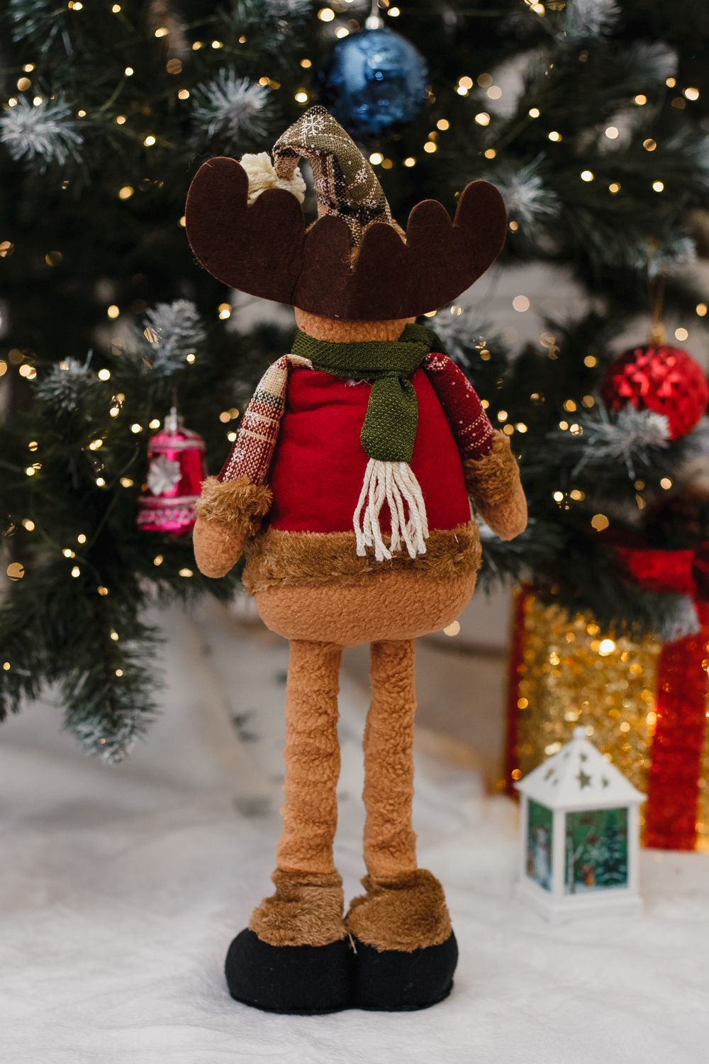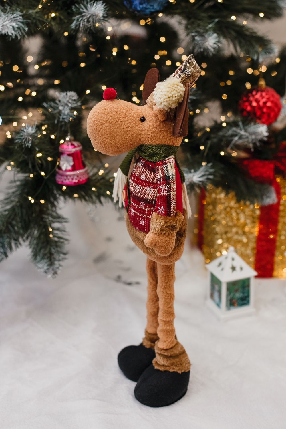 Игрушка новогодняя с выдвижными ногами Олень черные ботинки коричневый