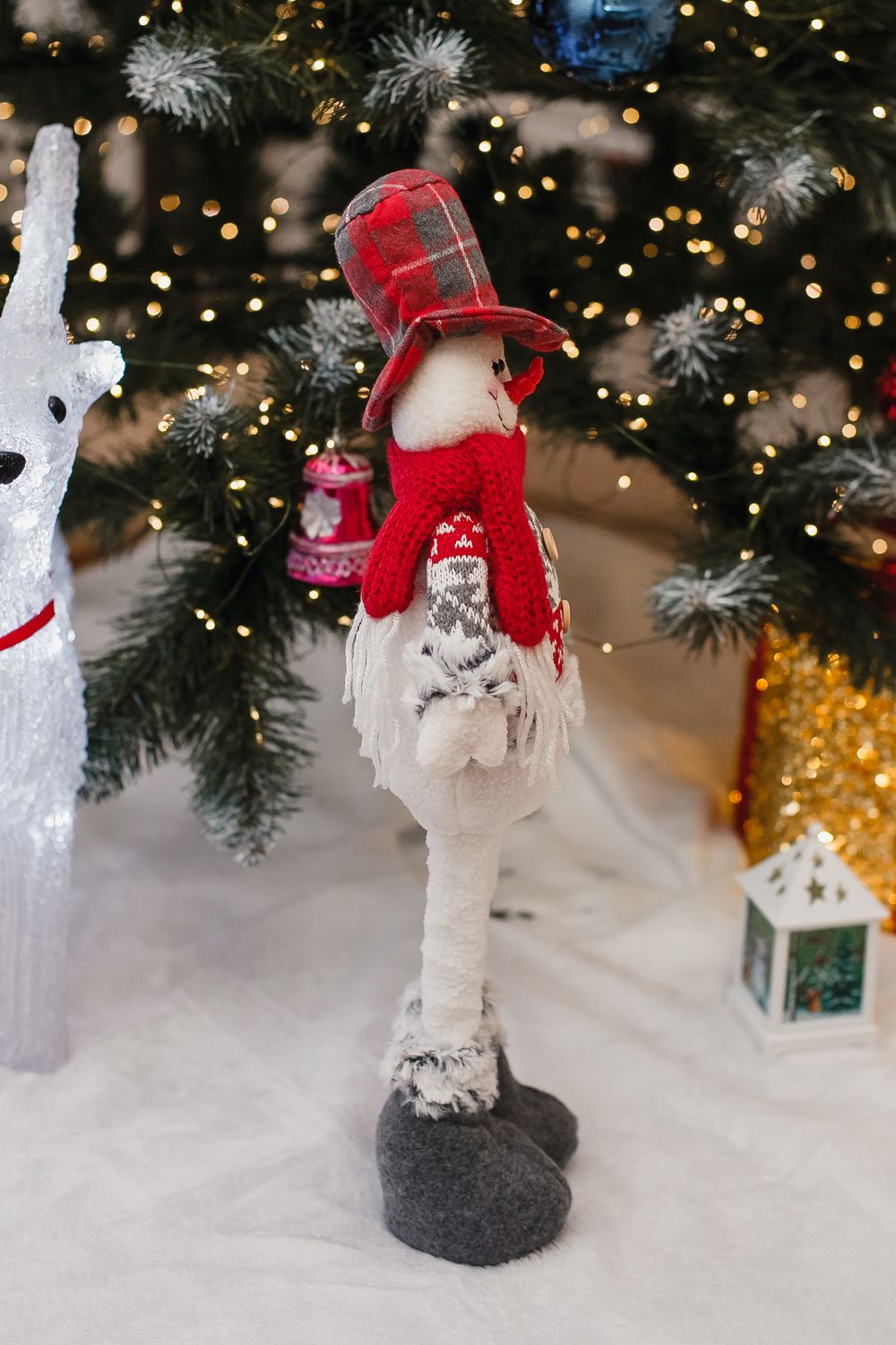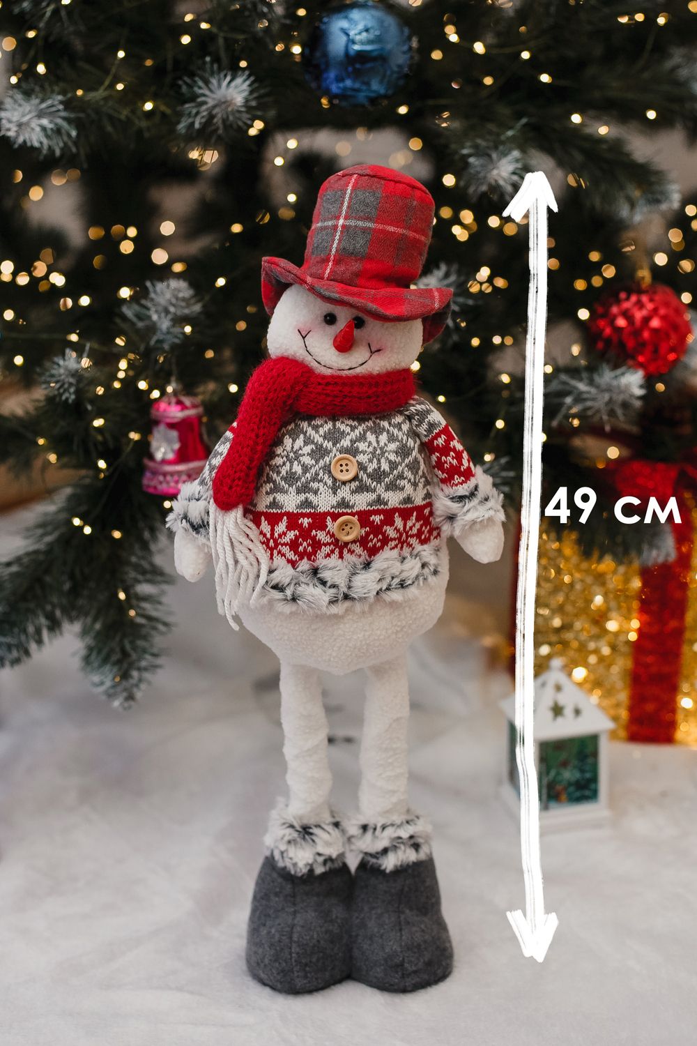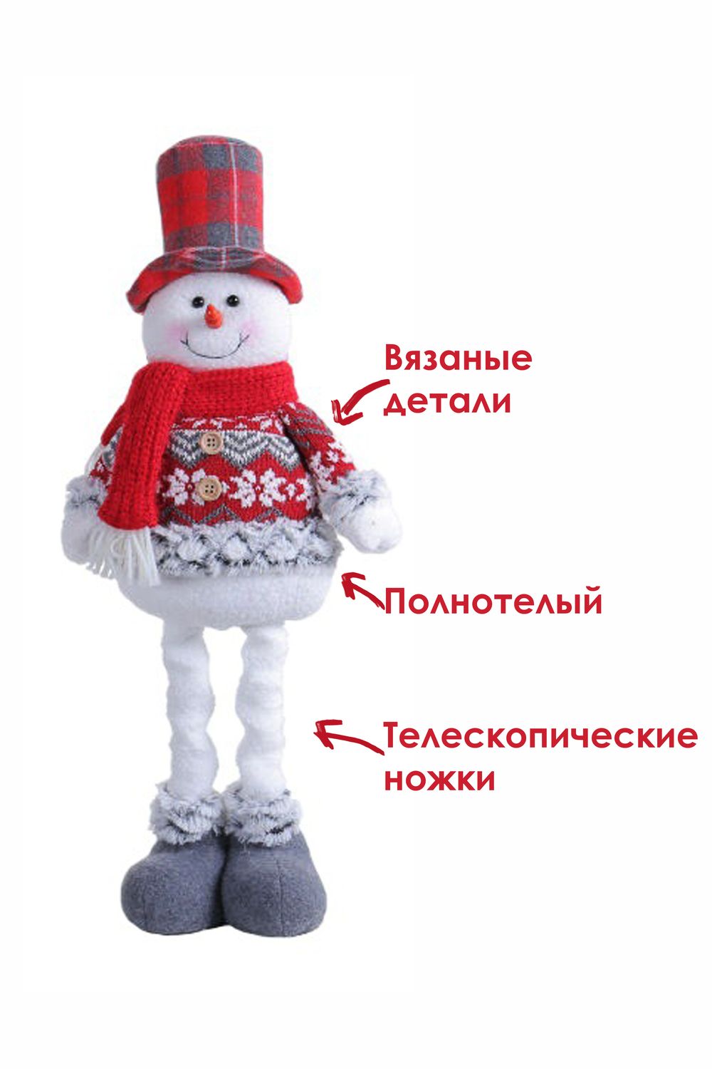 Новогодняя игрушка мягкий снеговик с выдвижными ножками — эффектная и практичная праздничная игрушка, которая в сложенном виде занимает всего 34×23 см, а при раздвинутых ножках превращается в высокий декоративный элемент высотой 48 см. Выполнен из мягкого текстиля с аккуратной отделкой и плотным наполнителем, он легко держит форму, при этом остаётся лёгким и удобным для транспортировки и размещения под ёлкой или в праздничной фотозоне. Выдвижные ножки дают два варианта использования — компактное хранение вне сезона и выразительная высота для декора, что делает игрушку отличным подарком, который приятно будет дарить и получать. Универсальный дизайн впишется в классические и современные новогодние интерьеры, игрушка подойдёт для украшения гостиной, детской комнаты, прихожей или коммерческих витрин. Уход простой — достаточно протирать мягкой сухой или слегка влажной тканью и хранить в сухом прохладном месте вдали от прямых источников тепла. При размещении рядом с детьми рекомендуем следить за мелкими декоративными деталями и устанавливать снеговика на устойчивой поверхности. Идеальная идея для тех, кто ищет красивый, компактный в хранении и в то же время эффектный подарок под ёлку, который создаёт праздничное настроение и добавляет уюта в дом.