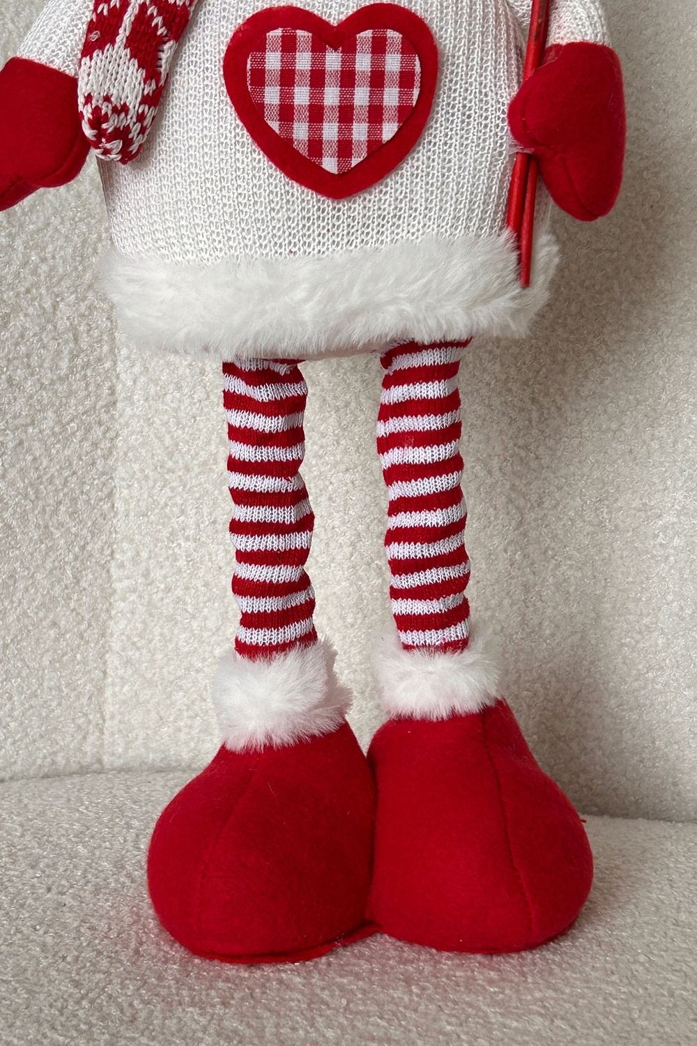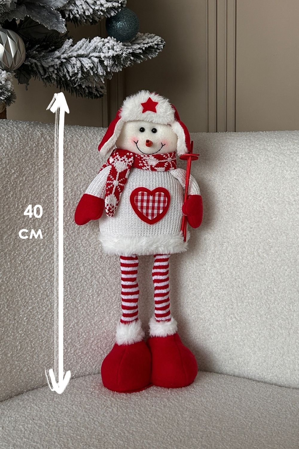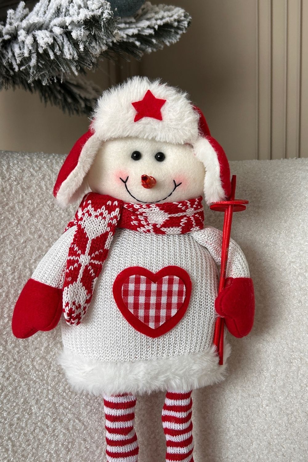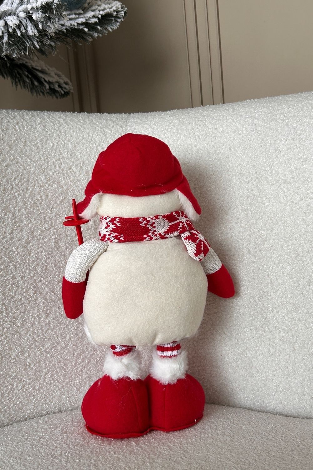 Игрушка новогодняя с выдвижными ногами Снеговик с лыжными палками красный