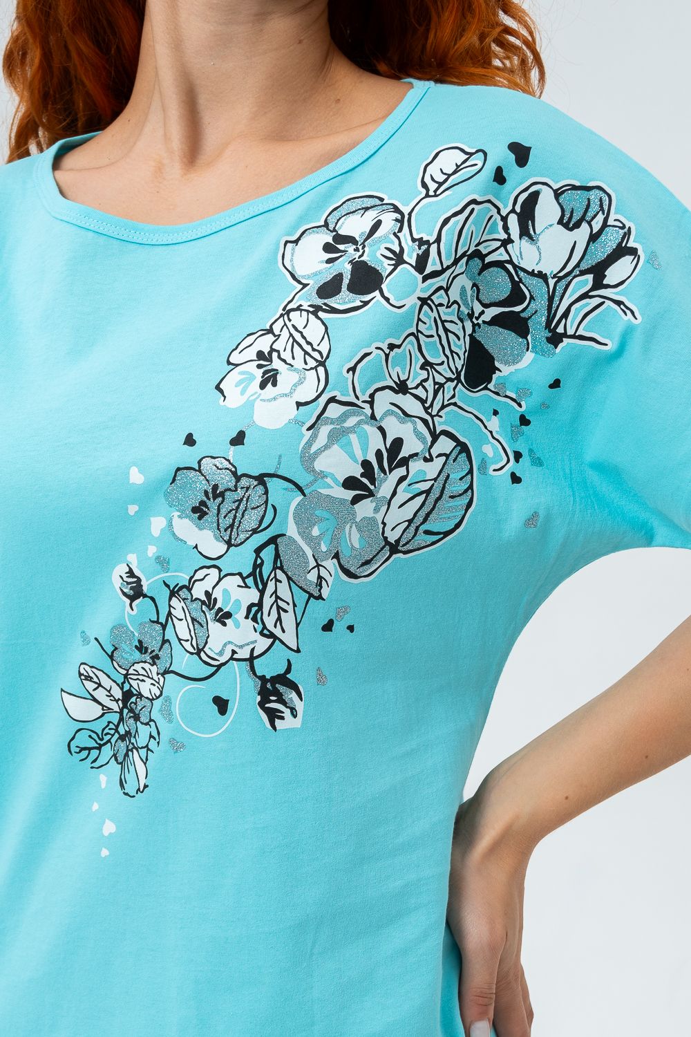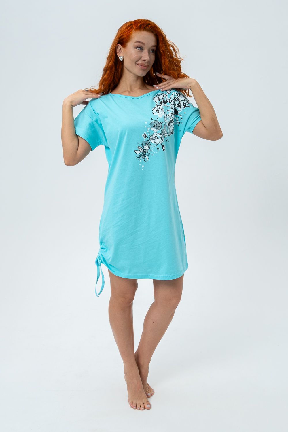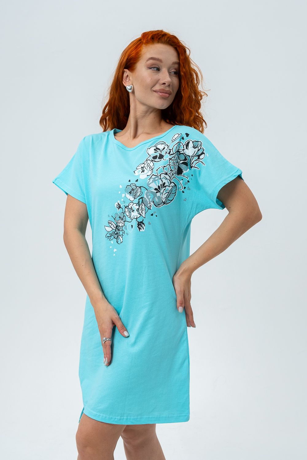 Удобная лёгкая ночная сорочка - универсальная вещь, дополняющая гардероб любой девушки. Её можно использовать в качестве домашней туники. Нежный цветочный рисунок, расположенный от плеча по диагонали и кулиска на противоположной стороне принта снизу делают модель элегантной. Очень удобный крой: цельнокроенный рукав, спущенная пройма, горловина - лодочка. Длина рукава в измерениях указана от точки основания шеи. Фасон подойдёт для всех типов фигуры.