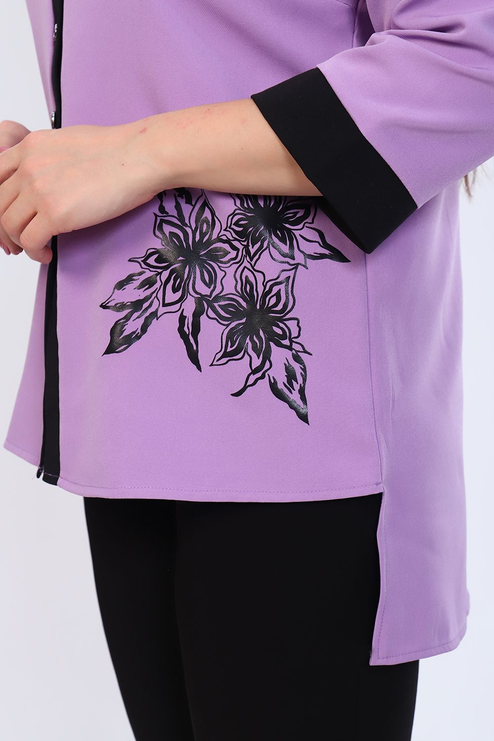 Женская распашная туника из легкого струящегося материала суперсофт. Планка на пуговицах по всей длине и цельнокроенный рукав, низ которого подобран на манжету, обеспечивают удобство и свободу движениям. Рубашечный воротник с притачной стойкой добавляют строгий акцент изящному образу. Элегантная модель прекрасно впишется в повседневный гардероб.
