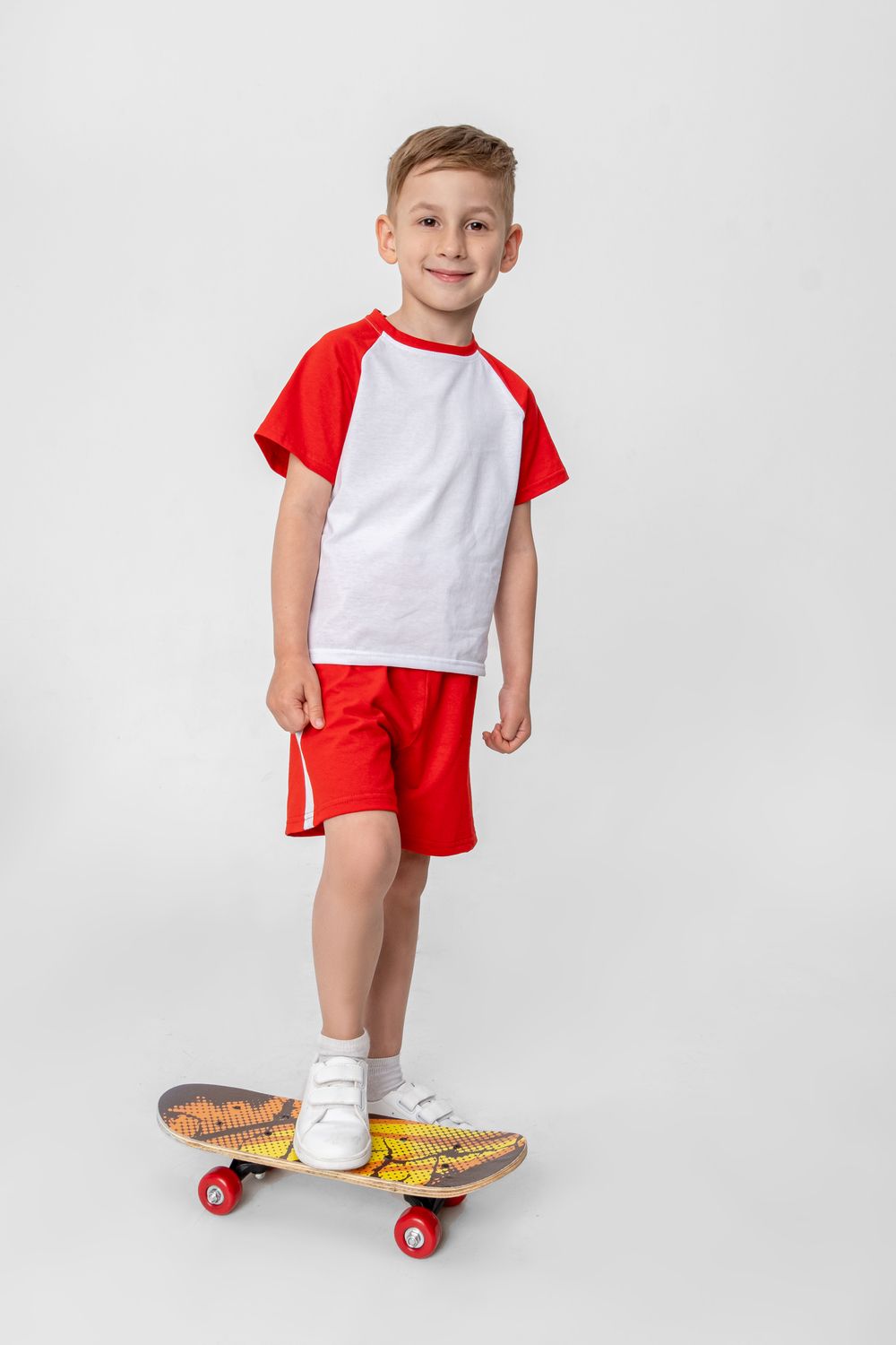 Уютный костюм для самых маленьких и немного постарше детишек. Футболка и шорты из приятного на ощупь материала кулирная гладь. Удобные не стесняющие шорты на широком поясе. Незаменим для повседневных прогулок, в детский садик или в качестве домашнего костюма. Легко стирается, не закатывается.