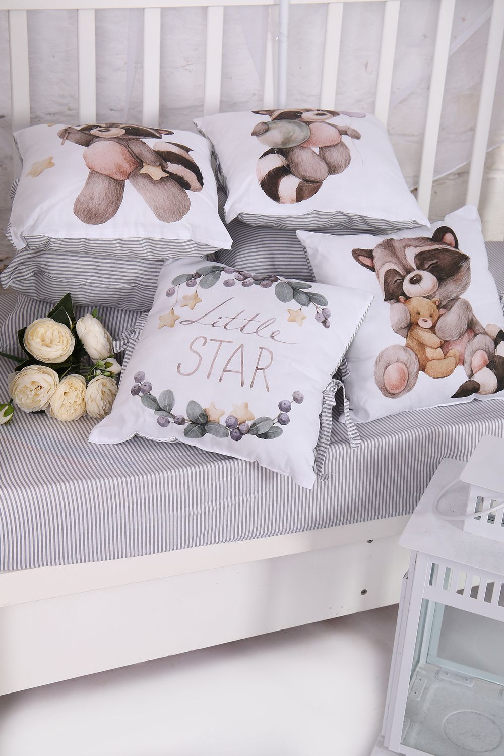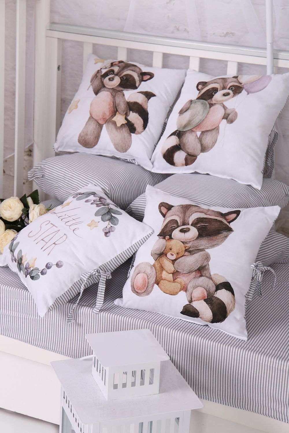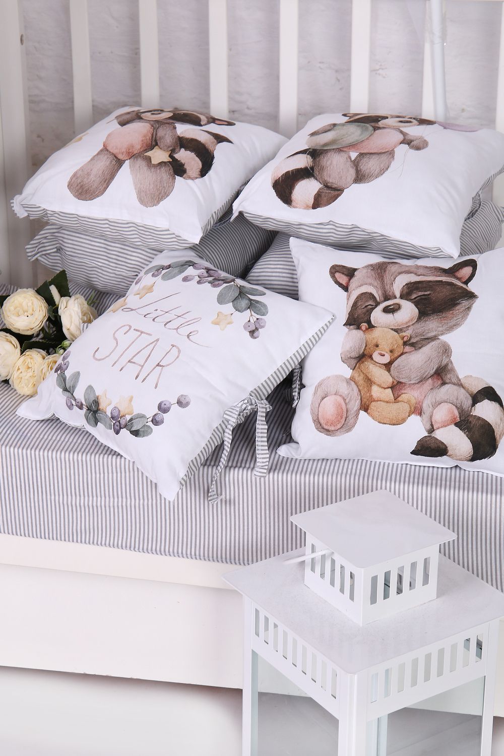 Бортик из 12 подушечек 35х35 на молнии с принтом арт. БРК-12П - енот