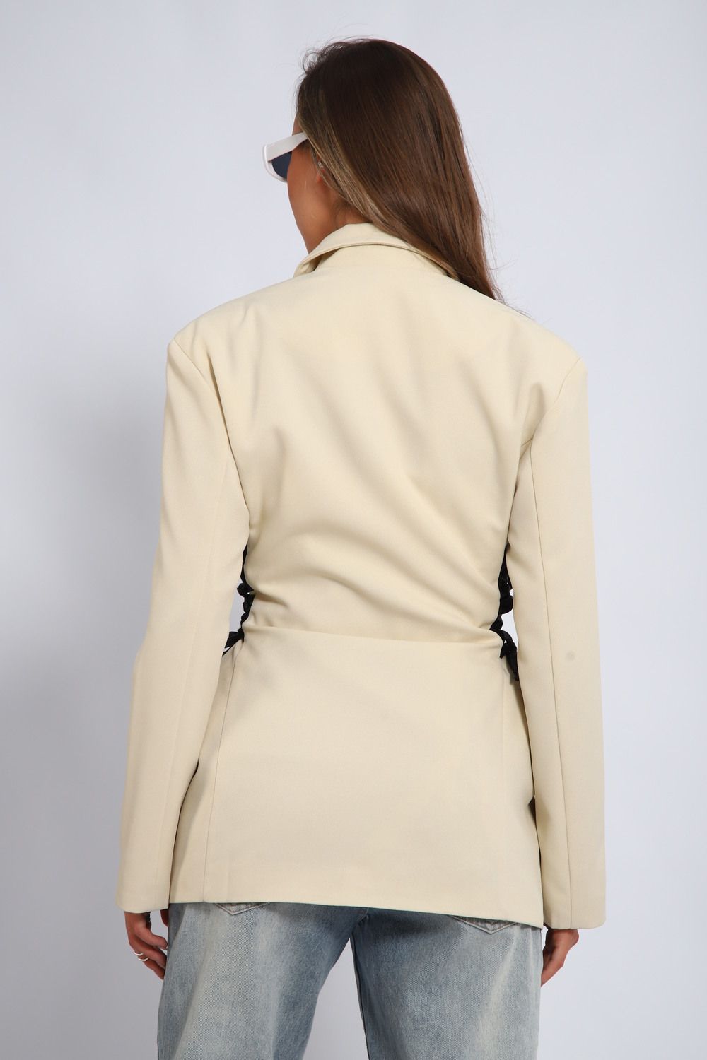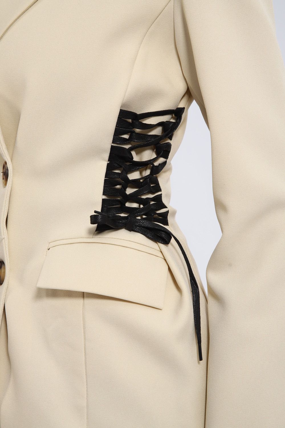 Ищете женский жакет с изюминкой? Этот жакет со шнуровкой – отличный выбор! Купите сейчас и добавьте элегантности и оригинальности в свой гардероб. Доступные размеры и цвета. Не упустите возможность приобрести этот уникальный жакет с лацканами!