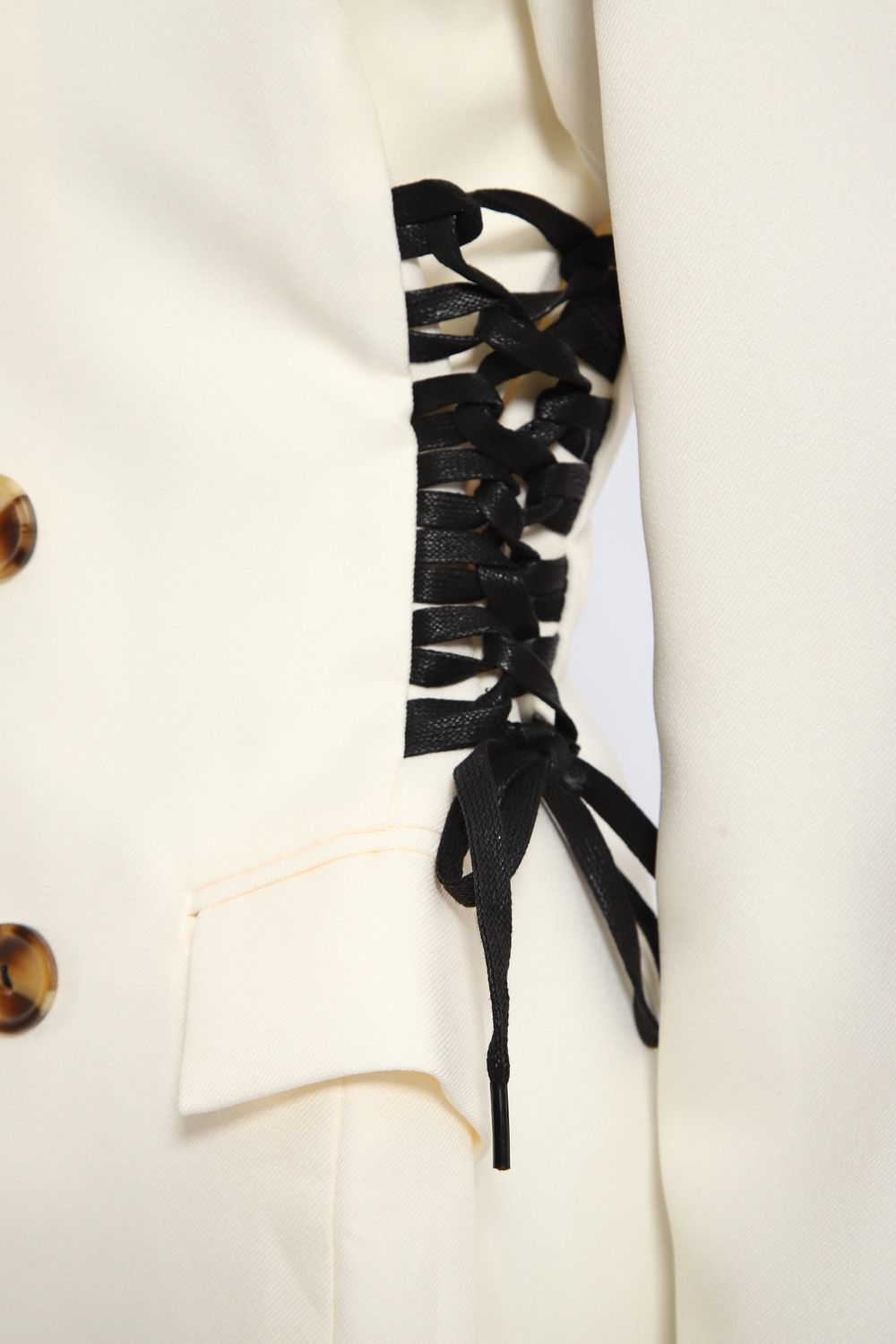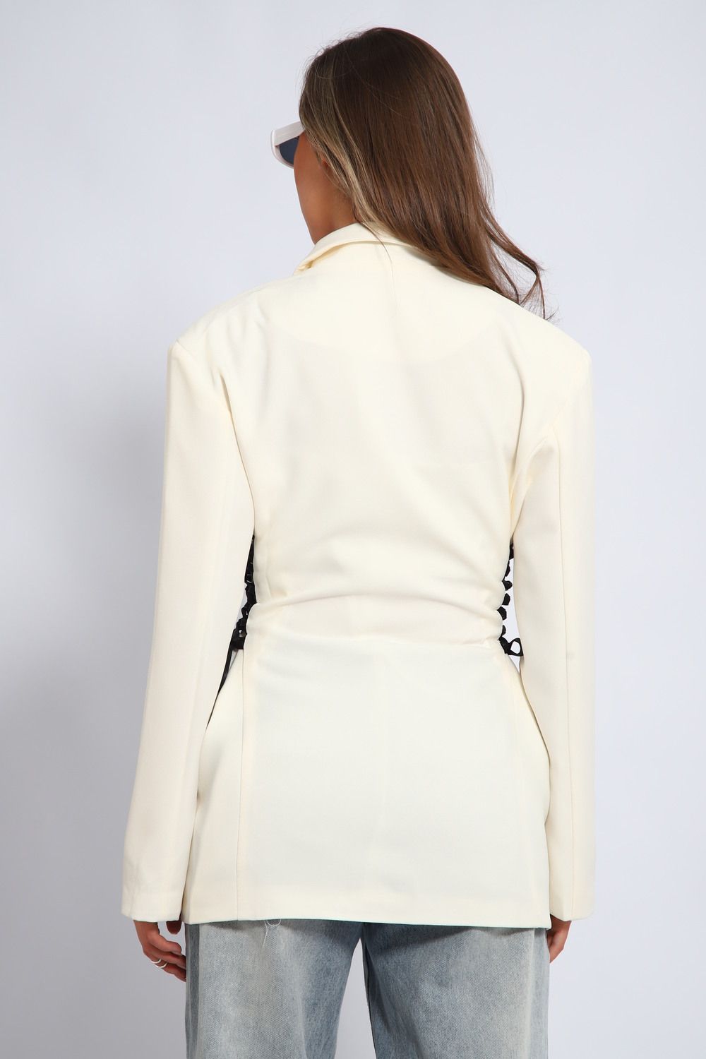 Ищете женский жакет с изюминкой? Этот жакет со шнуровкой – отличный выбор! Купите сейчас и добавьте элегантности и оригинальности в свой гардероб. Доступные размеры и цвета. Не упустите возможность приобрести этот уникальный жакет с лацканами!