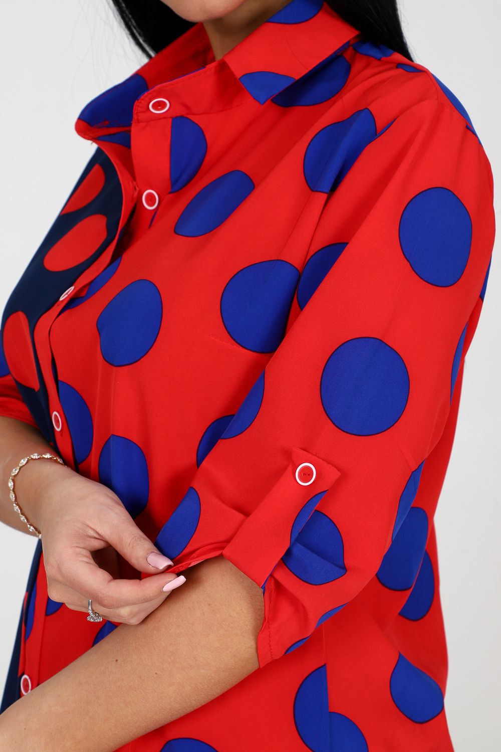 Наша туника - это верхняя одежда с особым рисунком в виде гороха, а также оригинальным сочетанием двух расцветок. Туника не только стильна, но и комфортна. Она обладает удобными рукавами "три четверти подобранными на паты", что придает ей еще более элегантный вид. Модель также дополнена рубашечным воротником, который придает тунике изысканности. Мы предлагаем Вам купить эту уникальную тунику и погрузиться в мир моды и комфорта. Наш товар соответствует самым высоким стандартам качества, поэтому Вы можете быть уверены, что она прослужит Вам долгое время. Женская туника на пуговицах, изготовленная из ткани Прадо, с рисунком гороха и оригинальным сочетанием двух расцветок, станет Вашим незаменимым атрибутом стиля и элегантности. Не упустите возможность приобрести эту модель уже сегодня!