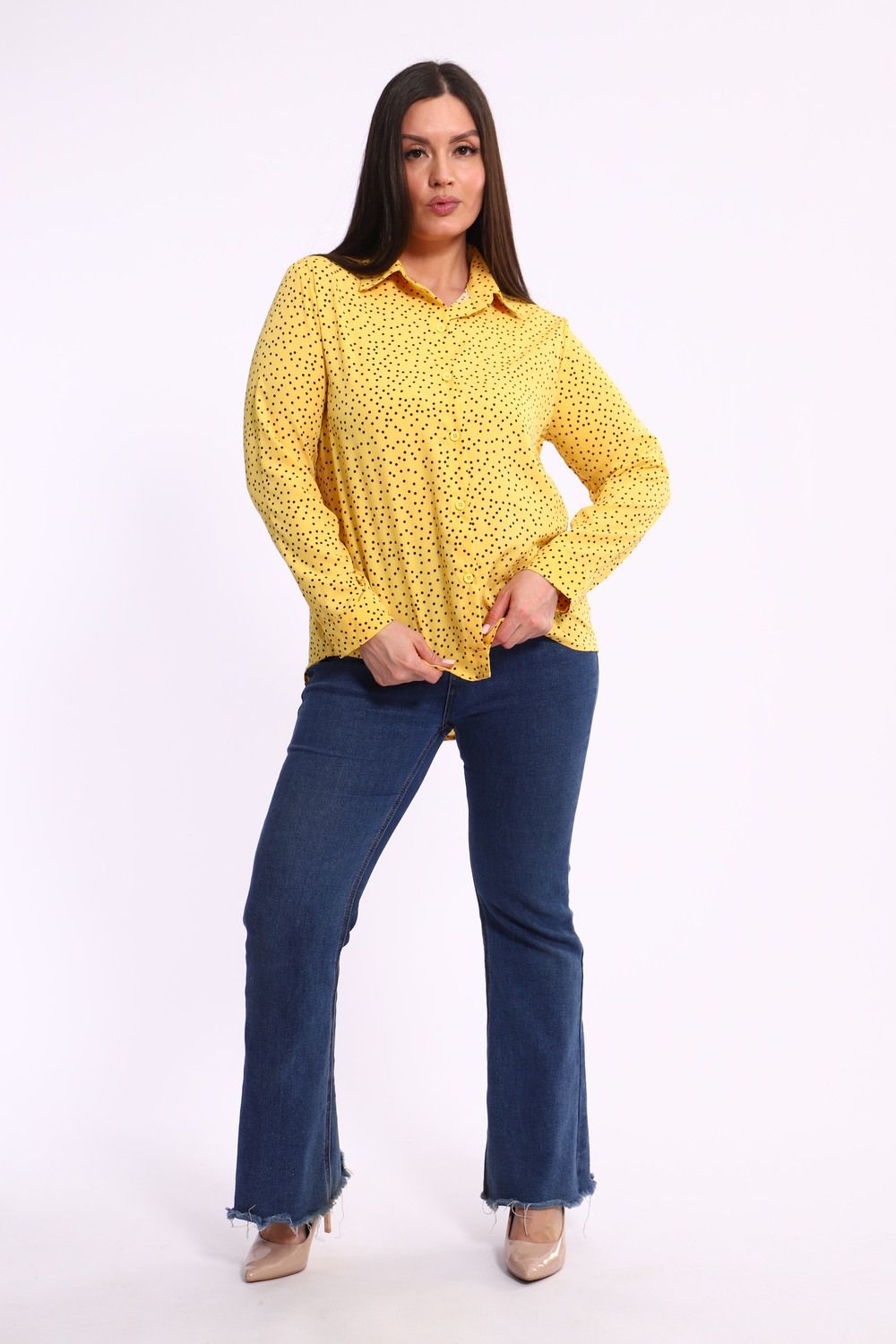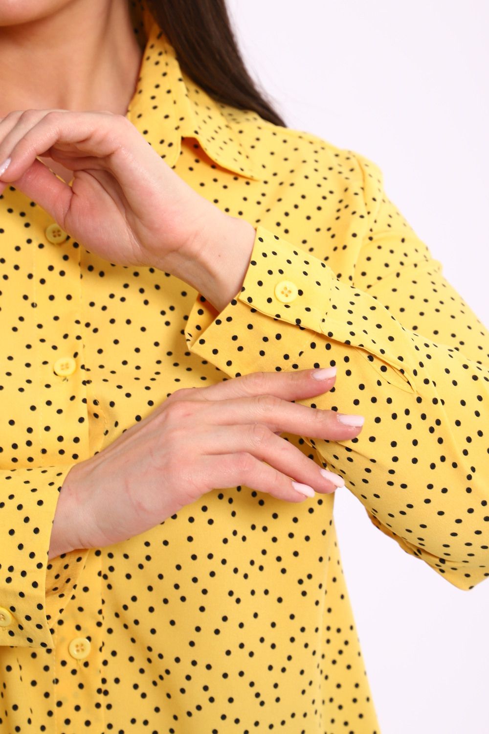 Женская рубашка в горох с удлиненной спинкой. Погрузитесь в мир элегантности с нашей стильной женской рубашкой в горох! Эта уникальная модель сочетает в себе утонченный дизайн и практичность. Удлиненная спинка с полукруглым низом добавляет нотку современности и стиля, что делает рубашку идеальной для любого повода — от офисных будней до уютных встреч с друзьями.