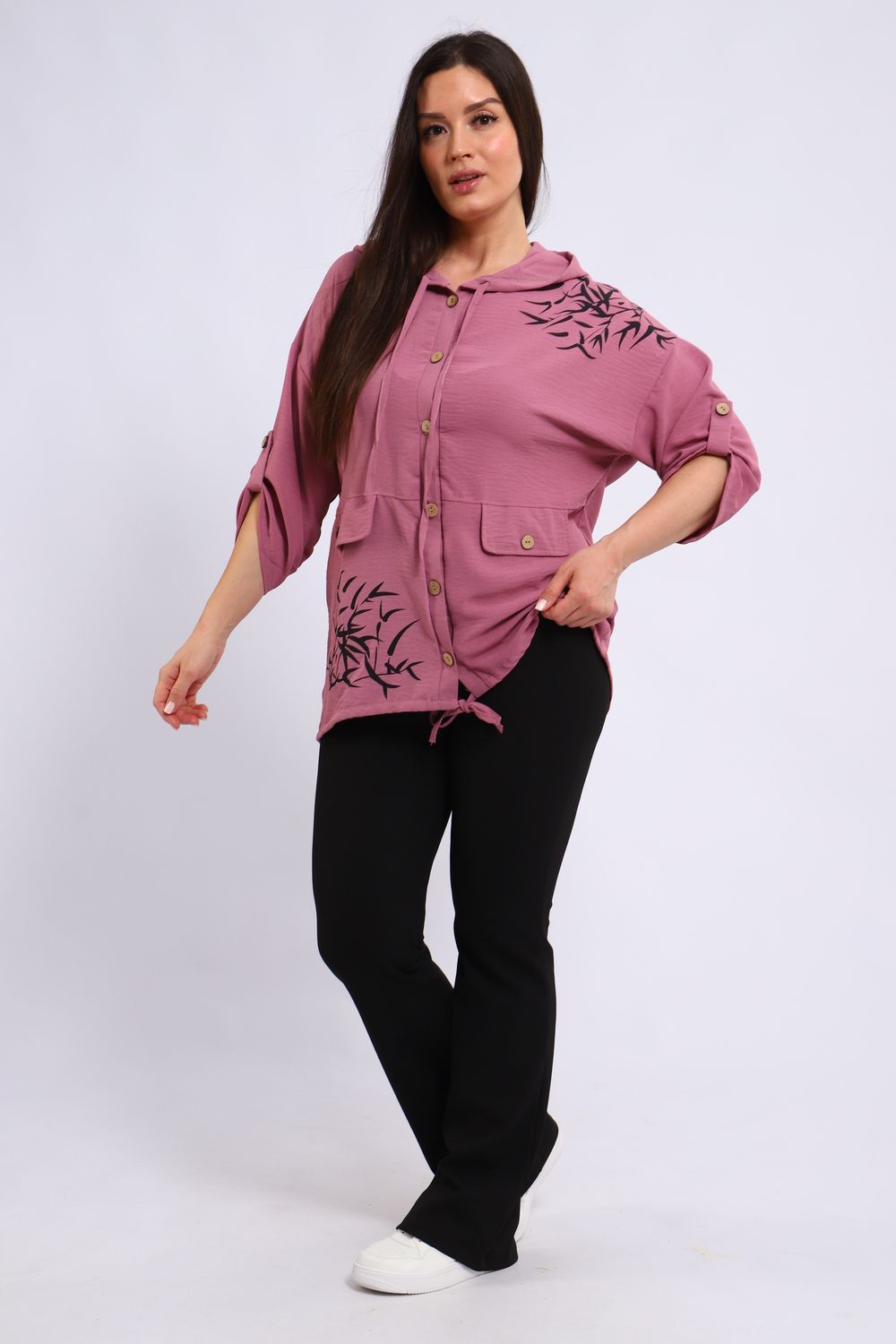 Ищете универсальную и стильную рубашку? Представляем женскую рубашку на пуговицах с капюшоном, идеальную для создания модных образов. Рукав три четверти с удобными патами позволяет регулировать длину, подстраиваясь под ваш стиль и погоду. Оригинальные детали, такие как два декоративных клапана на полочке и уникальная шелкография, добавляют рубашке неповторимый шарм.
