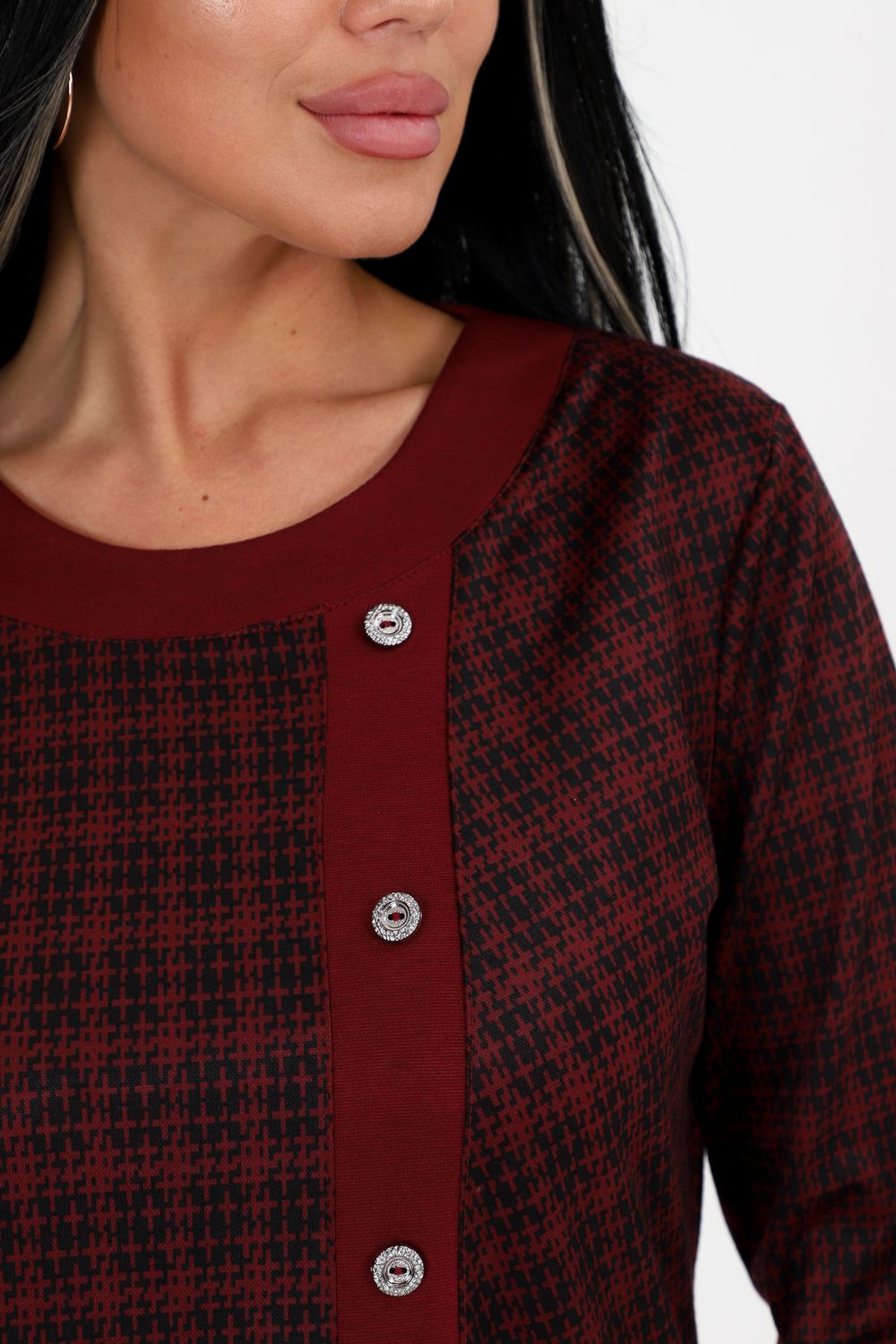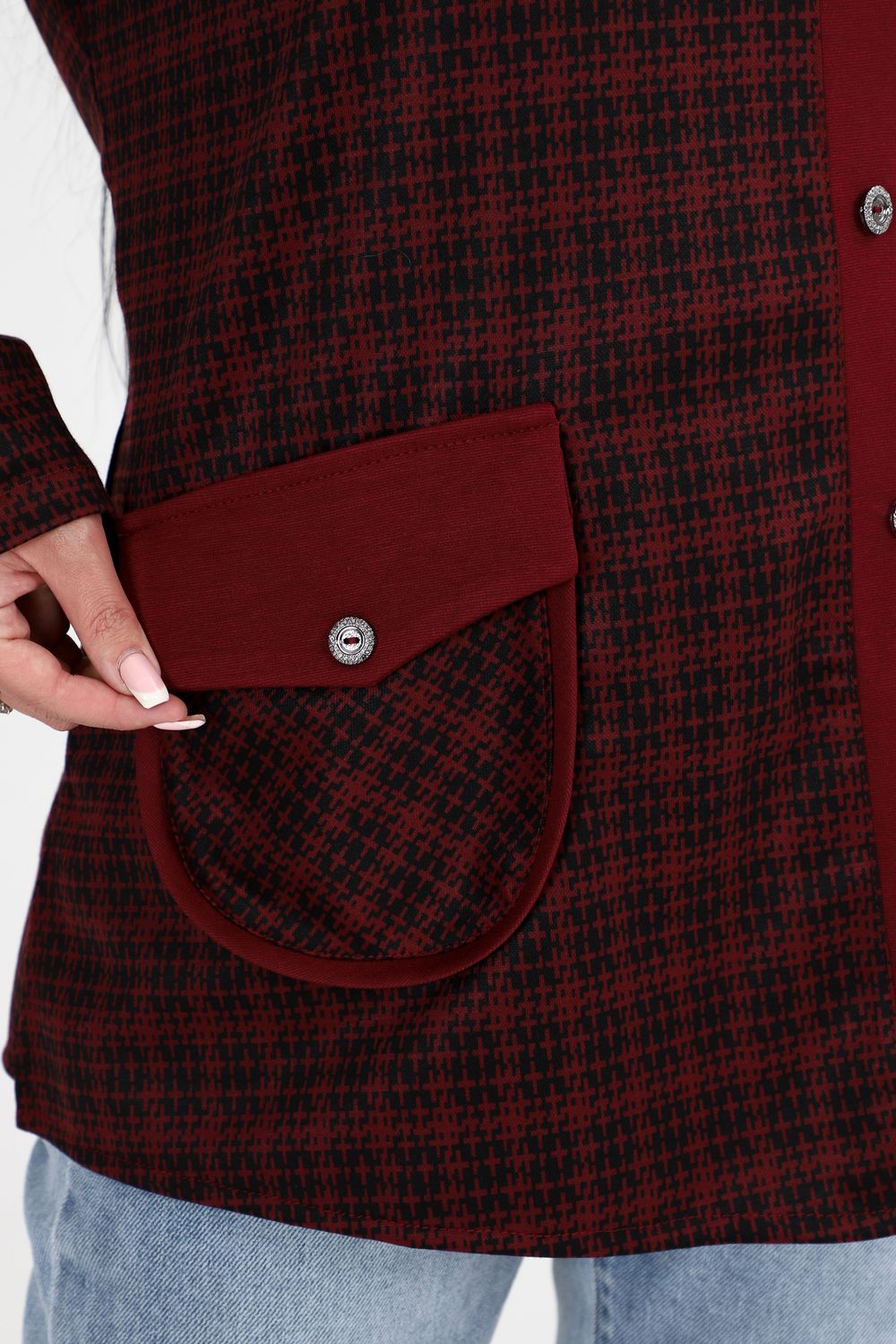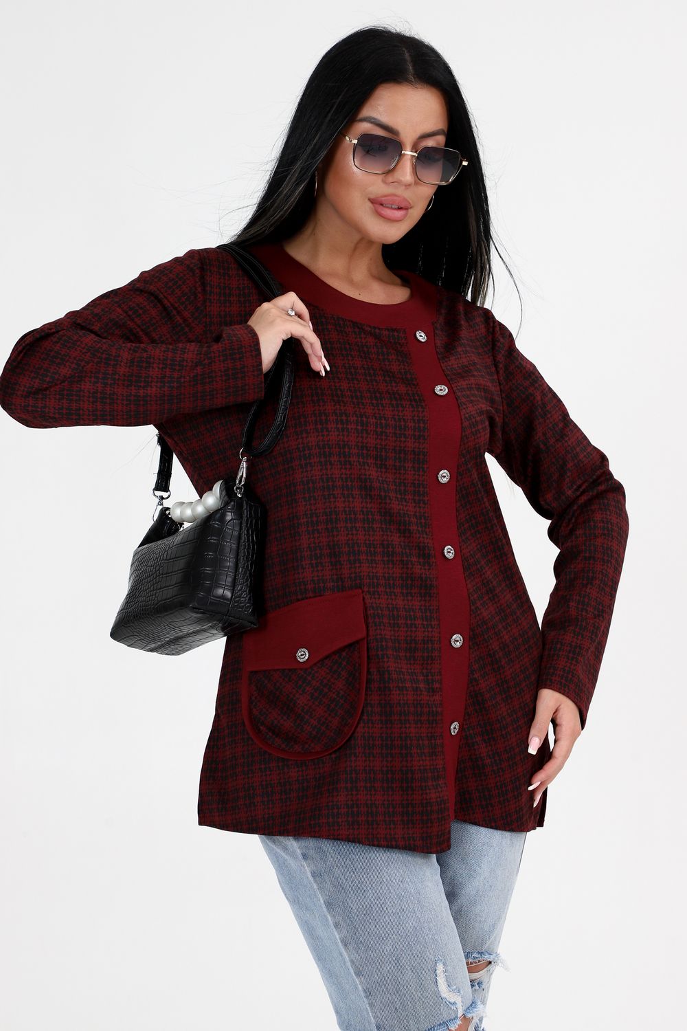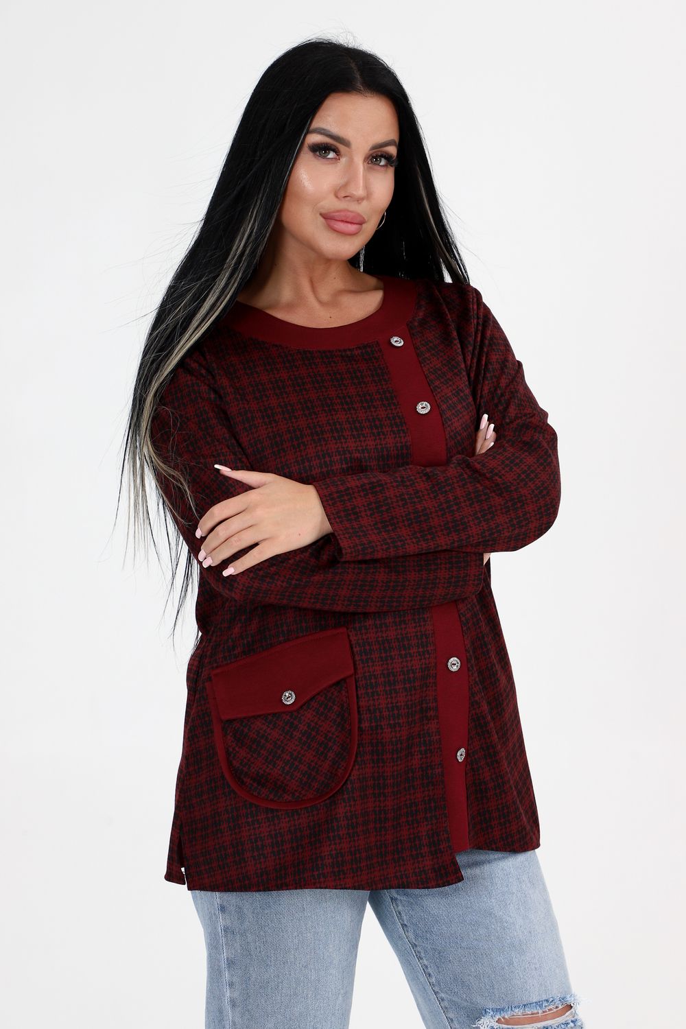На полочке туники расположена вставка из однотонной ткани с декоративными пуговицами, придающими изделию изысканность и оригинальность. Карман с клапаном и один дополнительный карман создают удобство и функциональность. Особое внимание уделено деталям: так, карман и клапан туники обработаны отделочной тканью, подчеркивающей их высокое качество и привлекательность. Округлый вырез придает этой тунике женскую нежность, а рукав длинный добавляет комфорта. Туника имеет разрезы по бокам, что делает ее великолепным выбором для тех, кто стремится к стилю, но не желает жертвовать свободой движений.