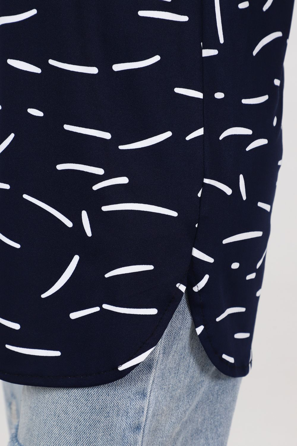 Низ женской туники имеет полукруглую форму, что делает его ещё более изящным и женственным. Комбинация всех этих элементов создаёт неповторимый образ, который подчеркнет вашу неповторимость.