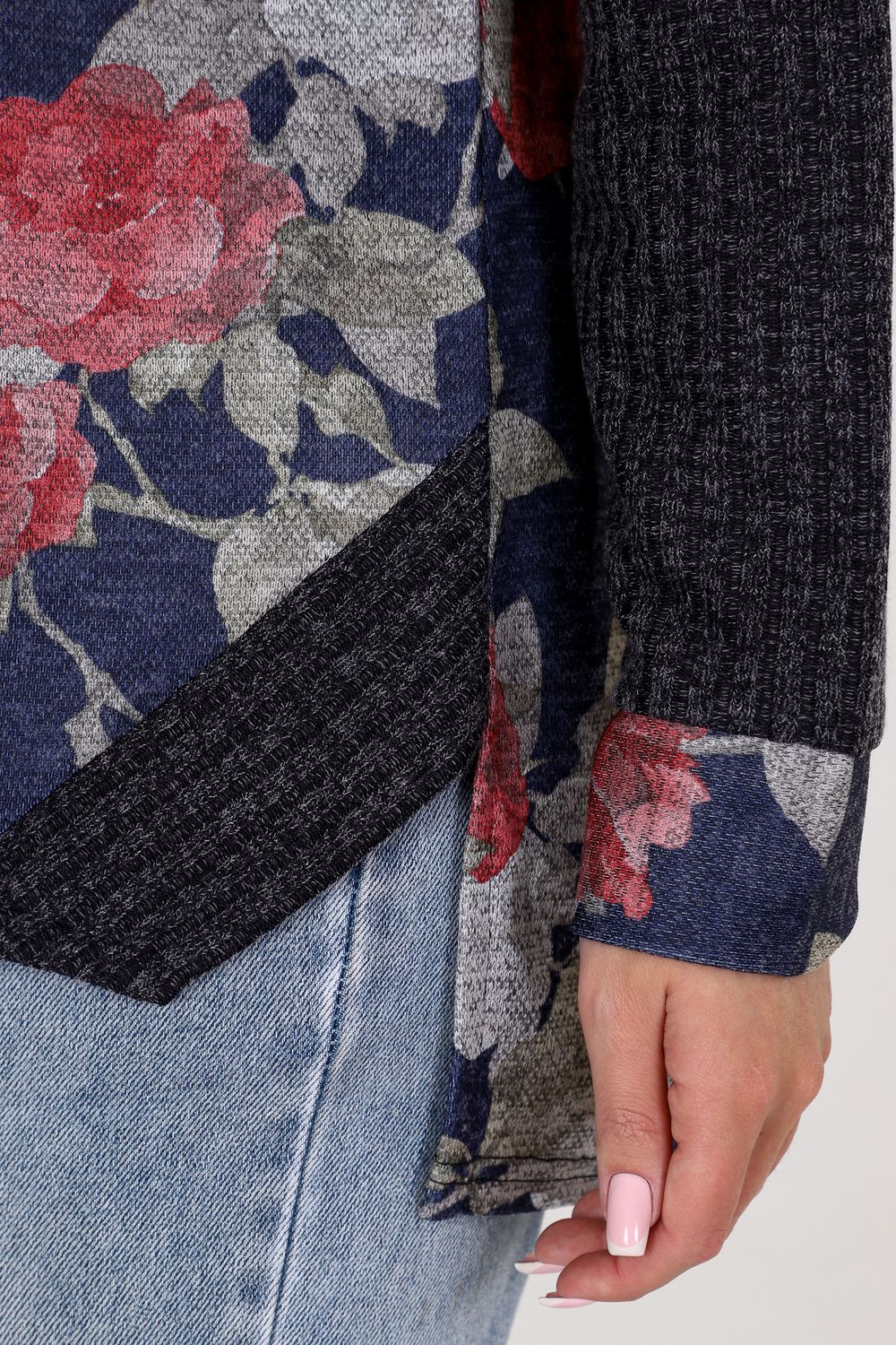 Уникальная туника с боковыми разрезами, которая непременно привлечет внимание окружающих. Передняя полочка на кокетке с изящной декоративной лентой придает этой модели эксклюзивный вид. Кроме того, передняя часть туники немного короче спинки, что создает эффектную силуэтную линию. Округлый вырез с кантом великолепно дополняет общий дизайн туники, делая ее еще более привлекательной. Туника с длинным рукавом на манжете отлично подойдет для холодного времени года, обеспечивая комфорт и тепло.