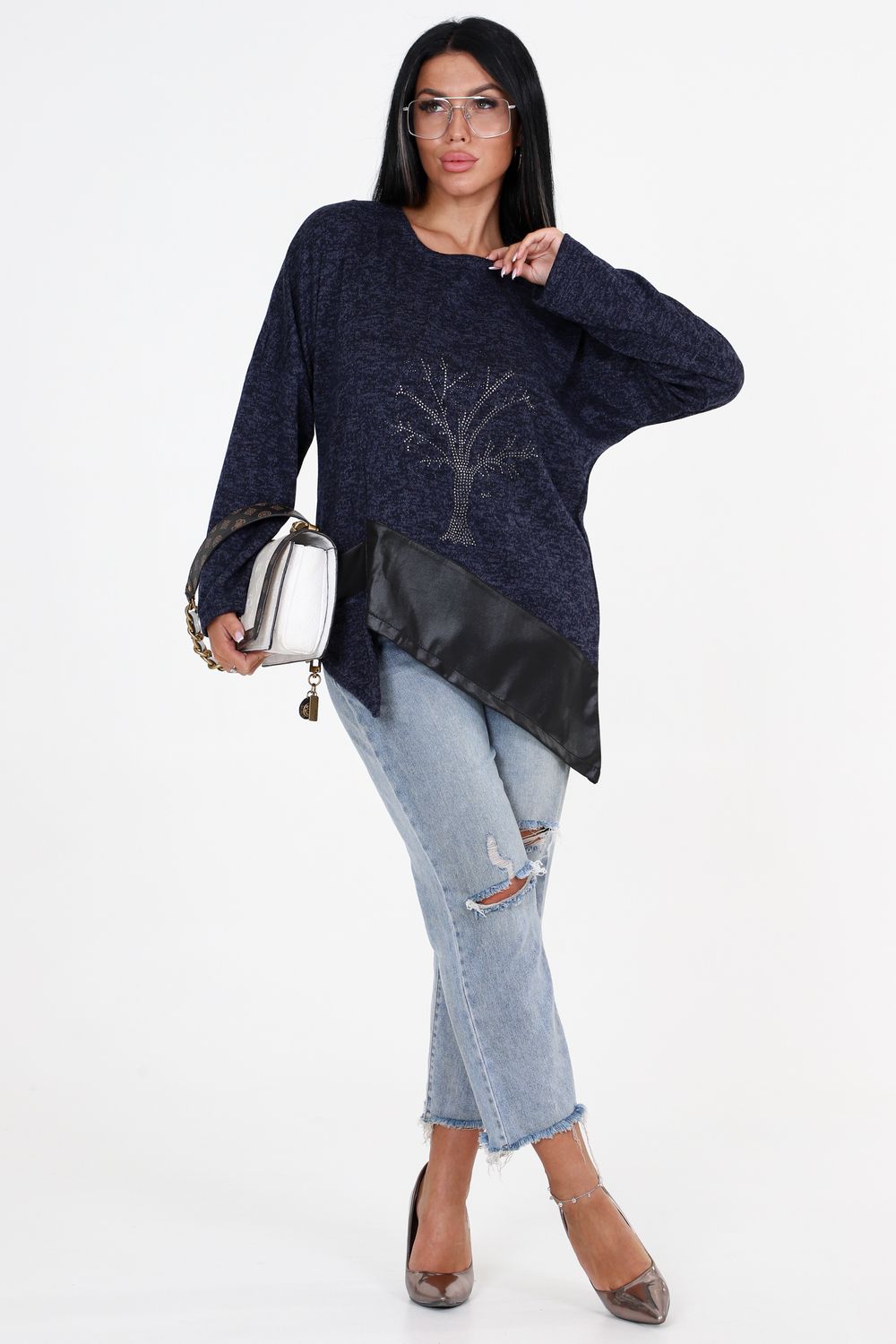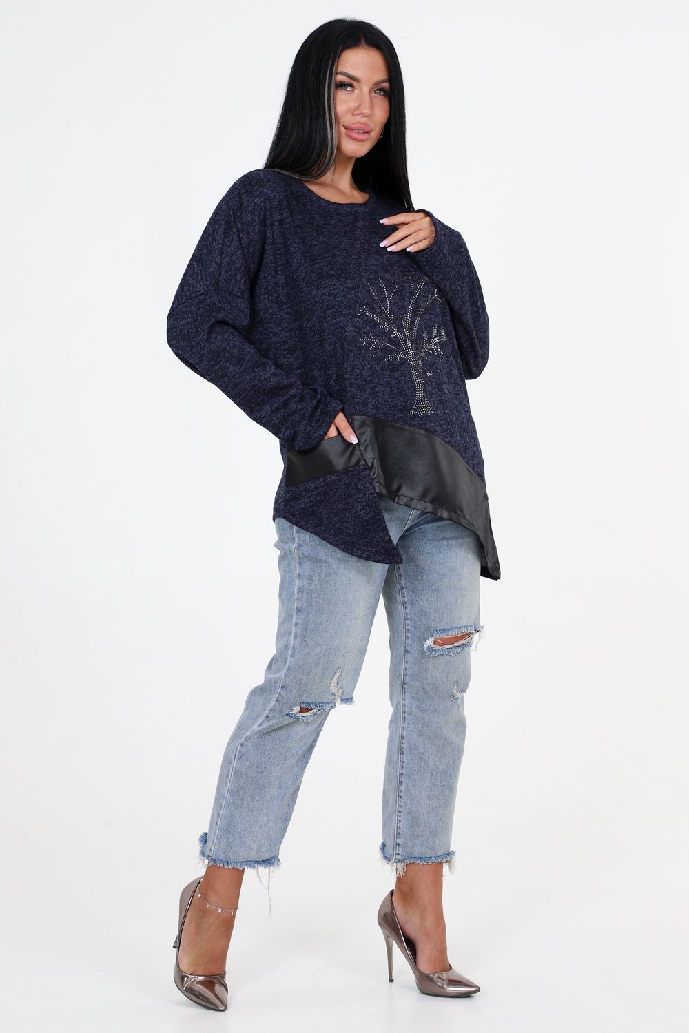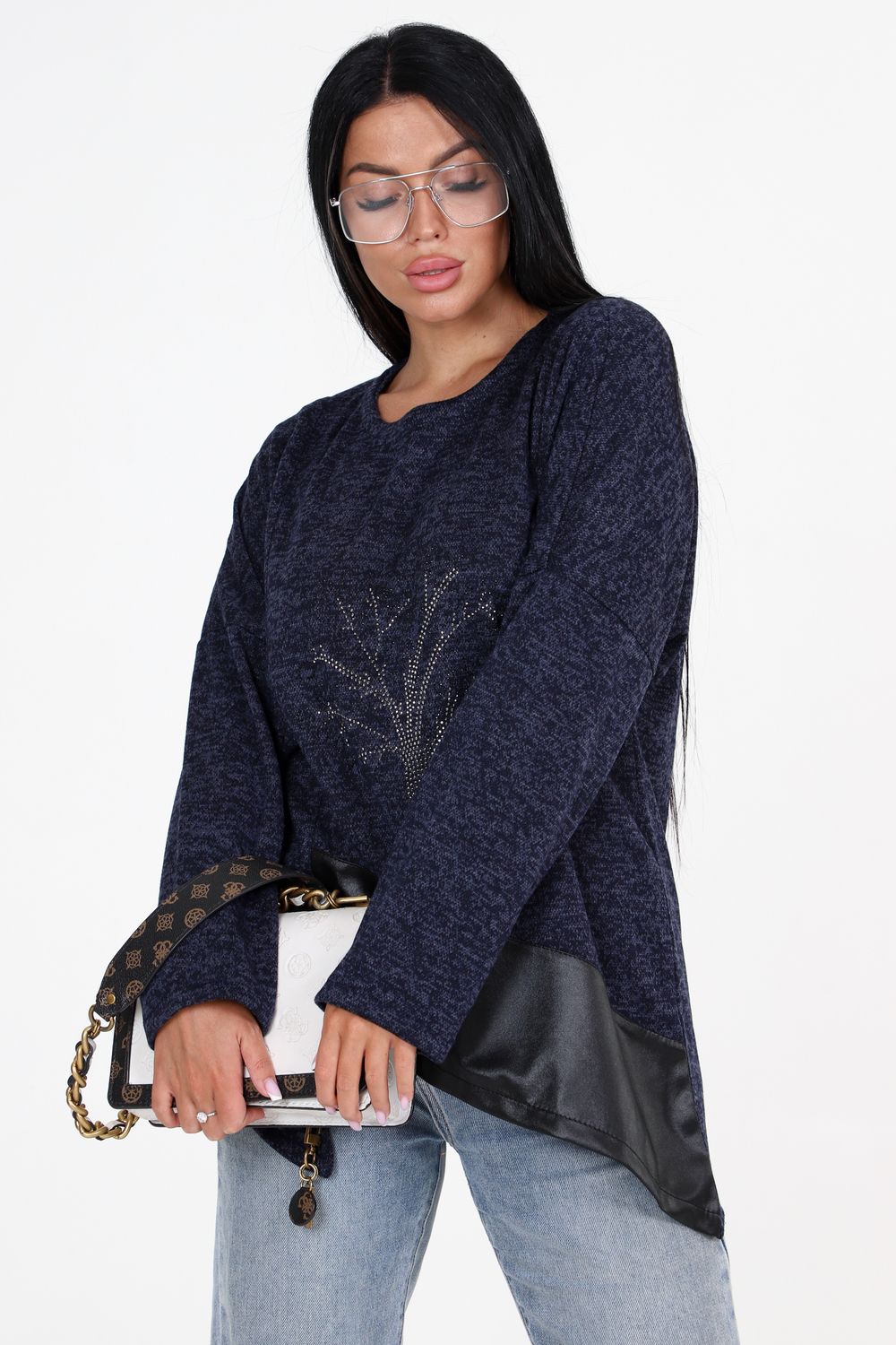 Выбирайте женскую тунику свободного кроя с впечатляющими деталями! Наша уникальная туника имеет прекрасно украшенную полочку со стразами и вставками из стретч-кожи, которые придают ей особый шарм. Низ изделия имеет фигурную отделку, добавляющую дополнительный элемент стиля. Спущенные длинные рукава прекрасно дополняют общий образ.
