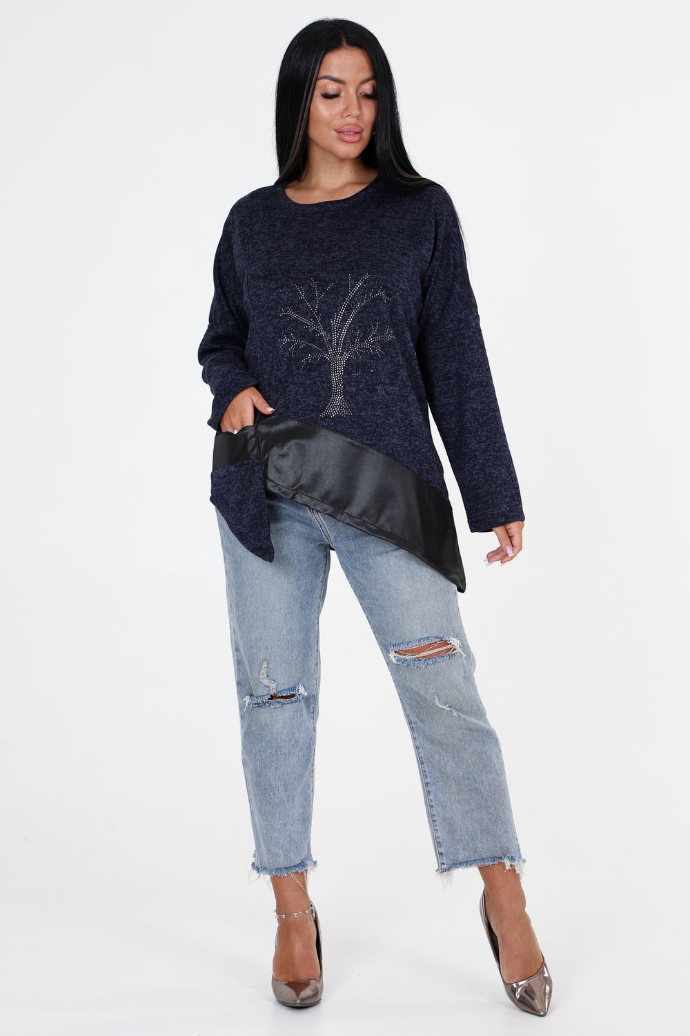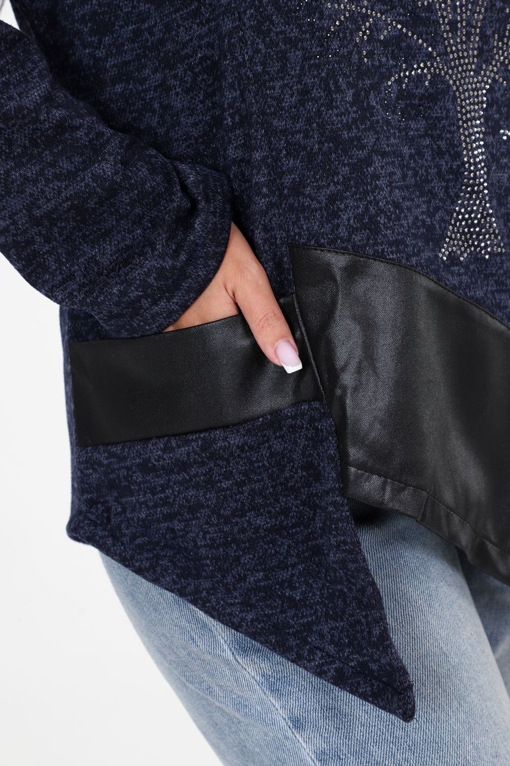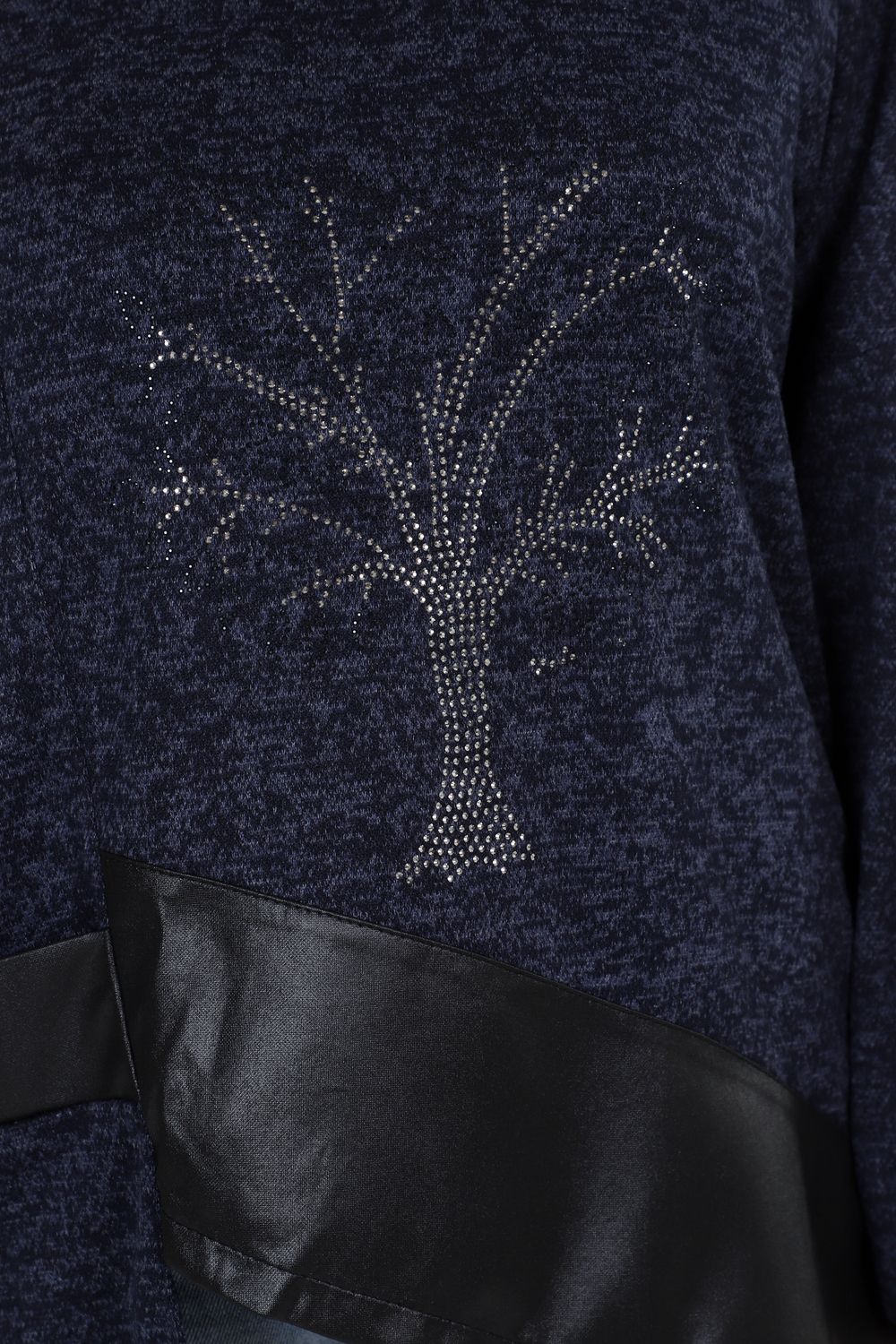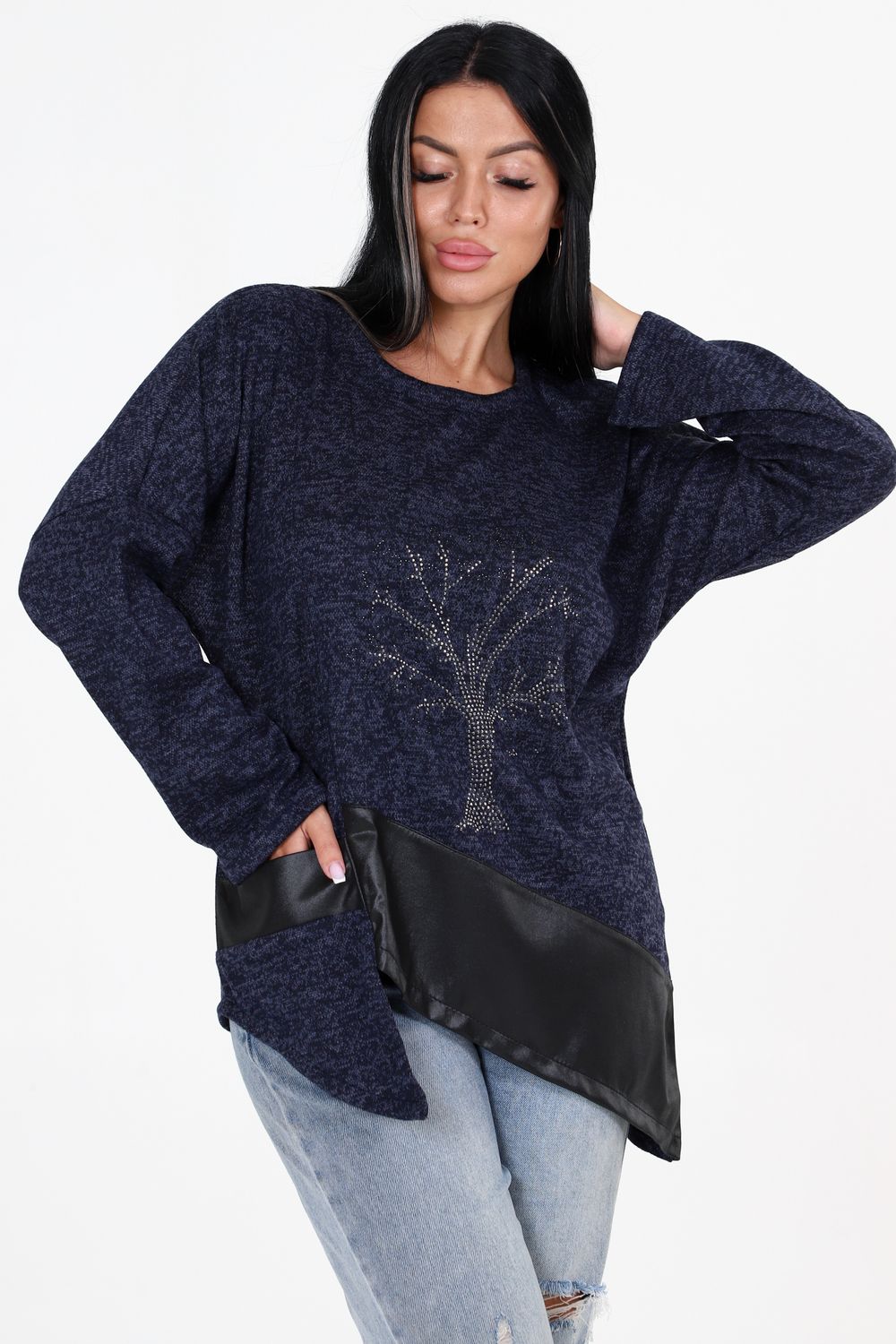 Выбирайте женскую тунику свободного кроя с впечатляющими деталями! Наша уникальная туника имеет прекрасно украшенную полочку со стразами и вставками из стретч-кожи, которые придают ей особый шарм. Низ изделия имеет фигурную отделку, добавляющую дополнительный элемент стиля. Спущенные длинные рукава прекрасно дополняют общий образ.