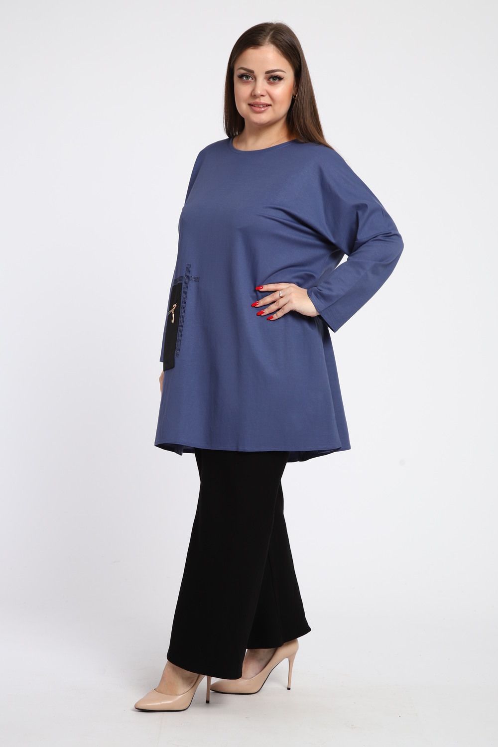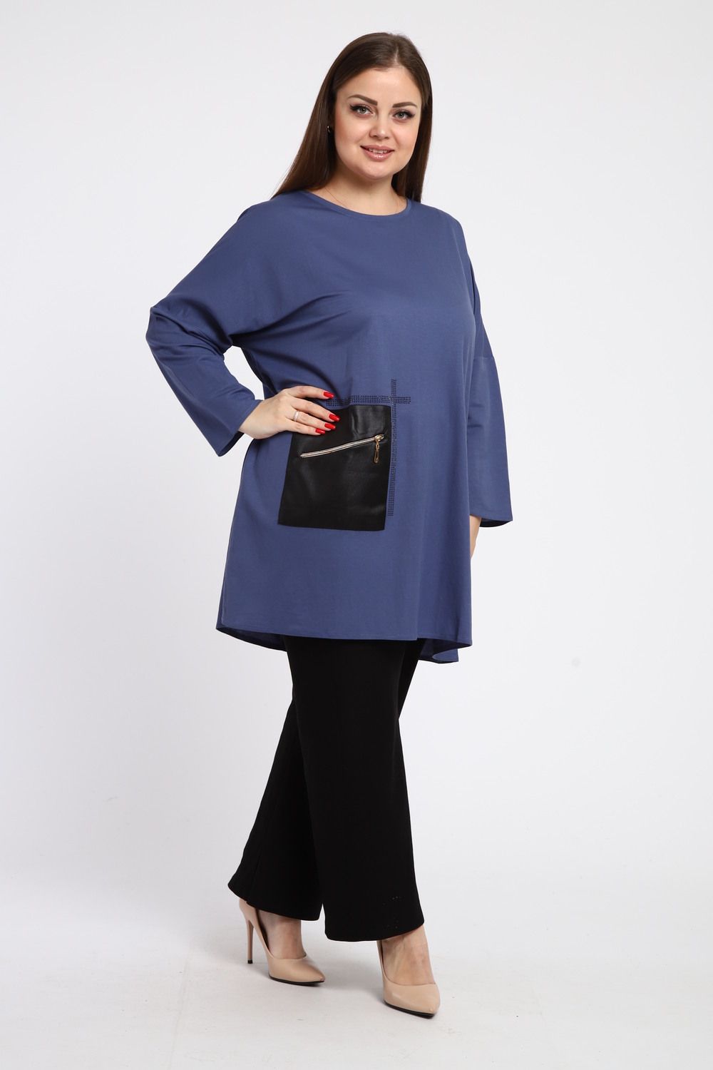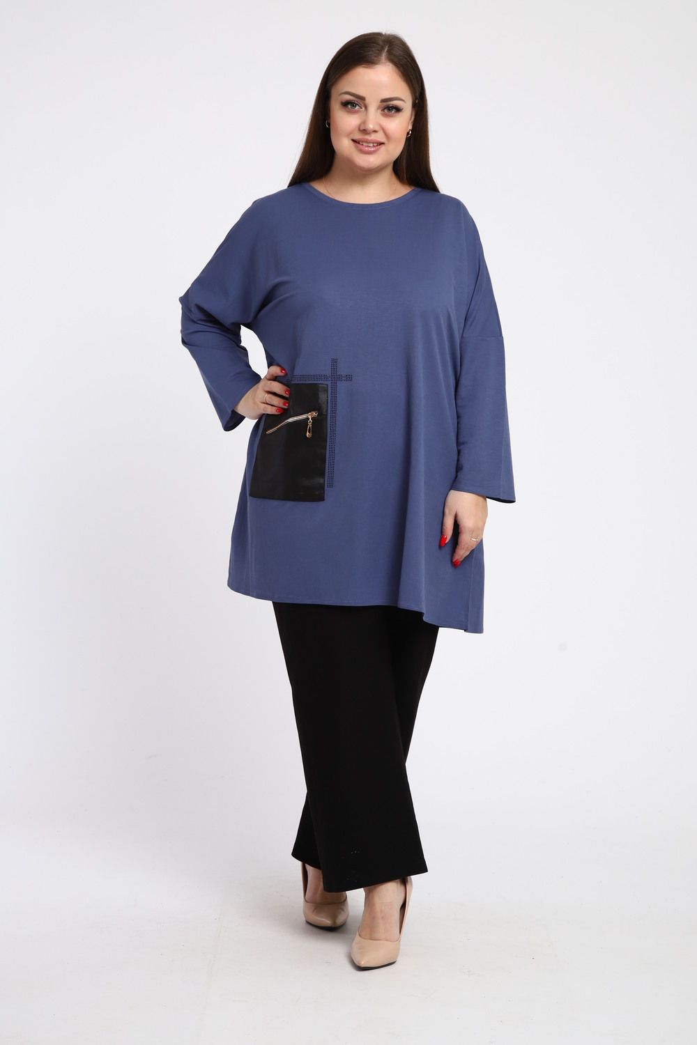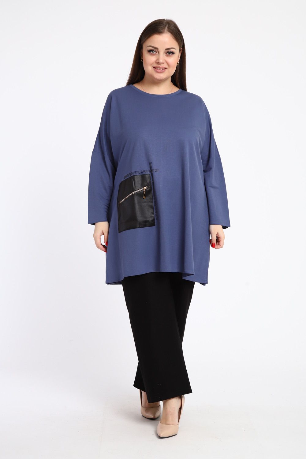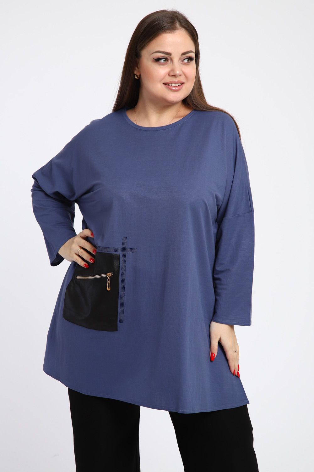 Универсальность: Эта туника идеально сочетается как с джинсами, так и с классическими брюками, что позволяет создавать разнообразные и запоминающиеся образы.
