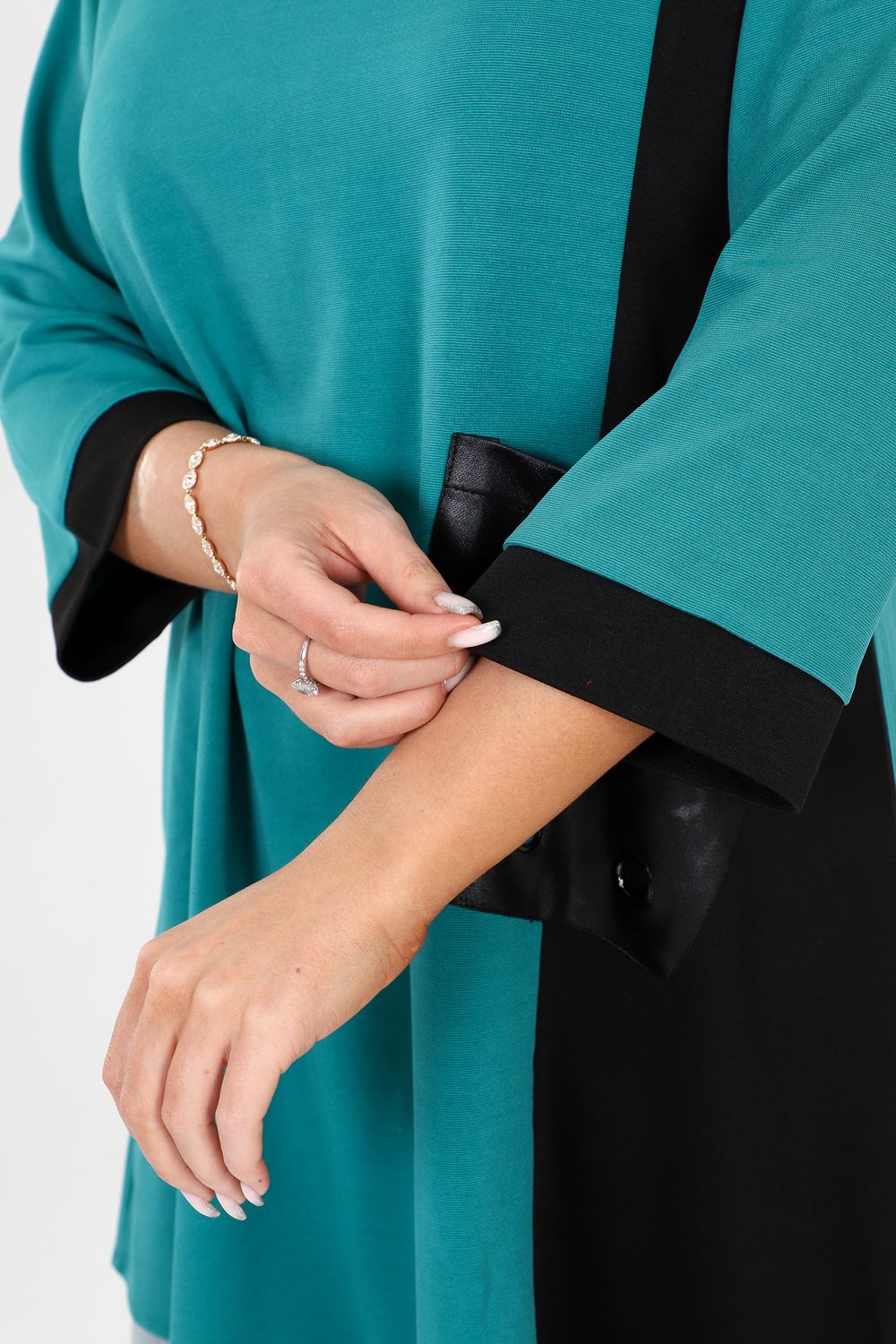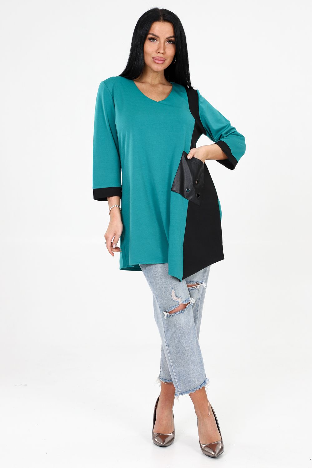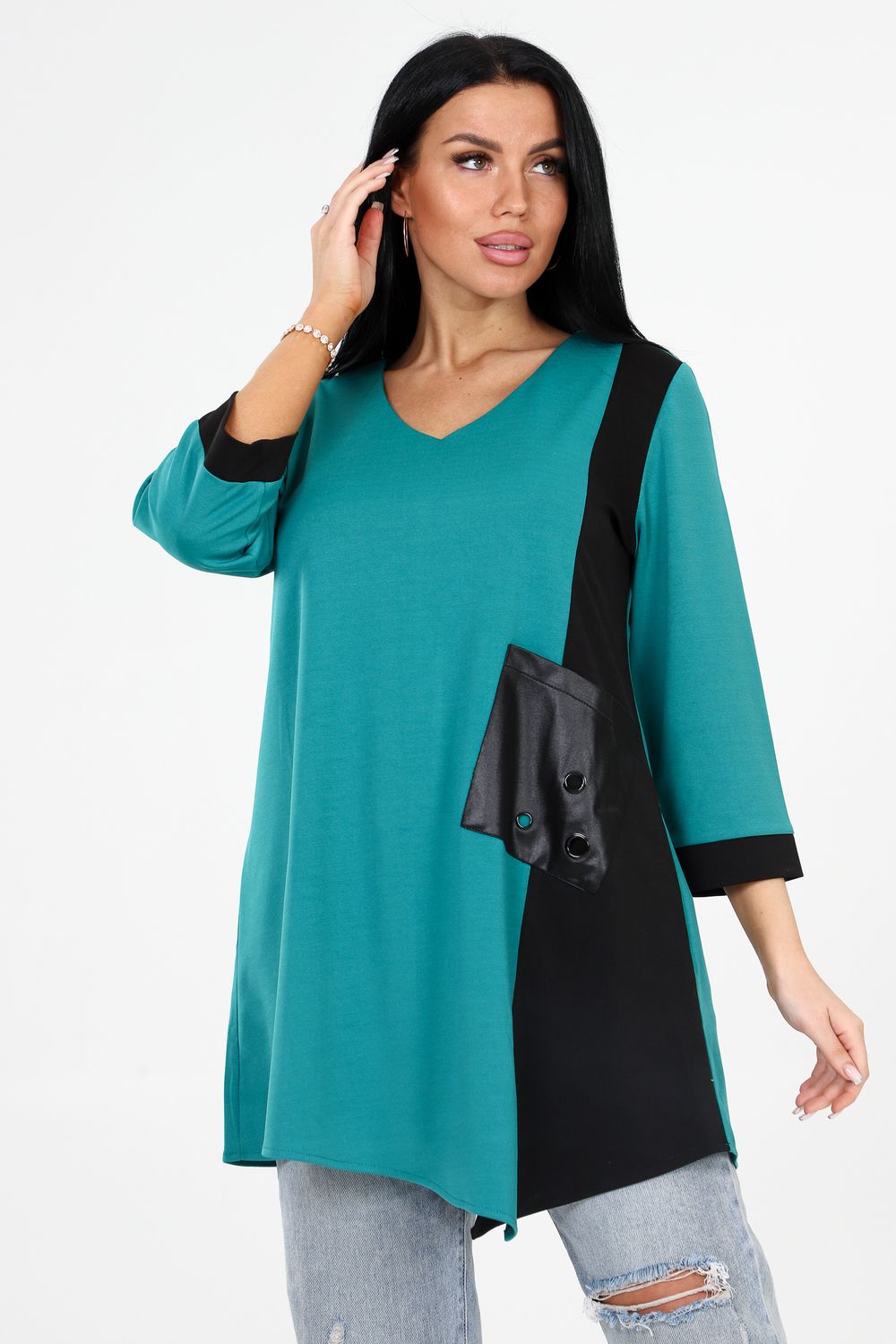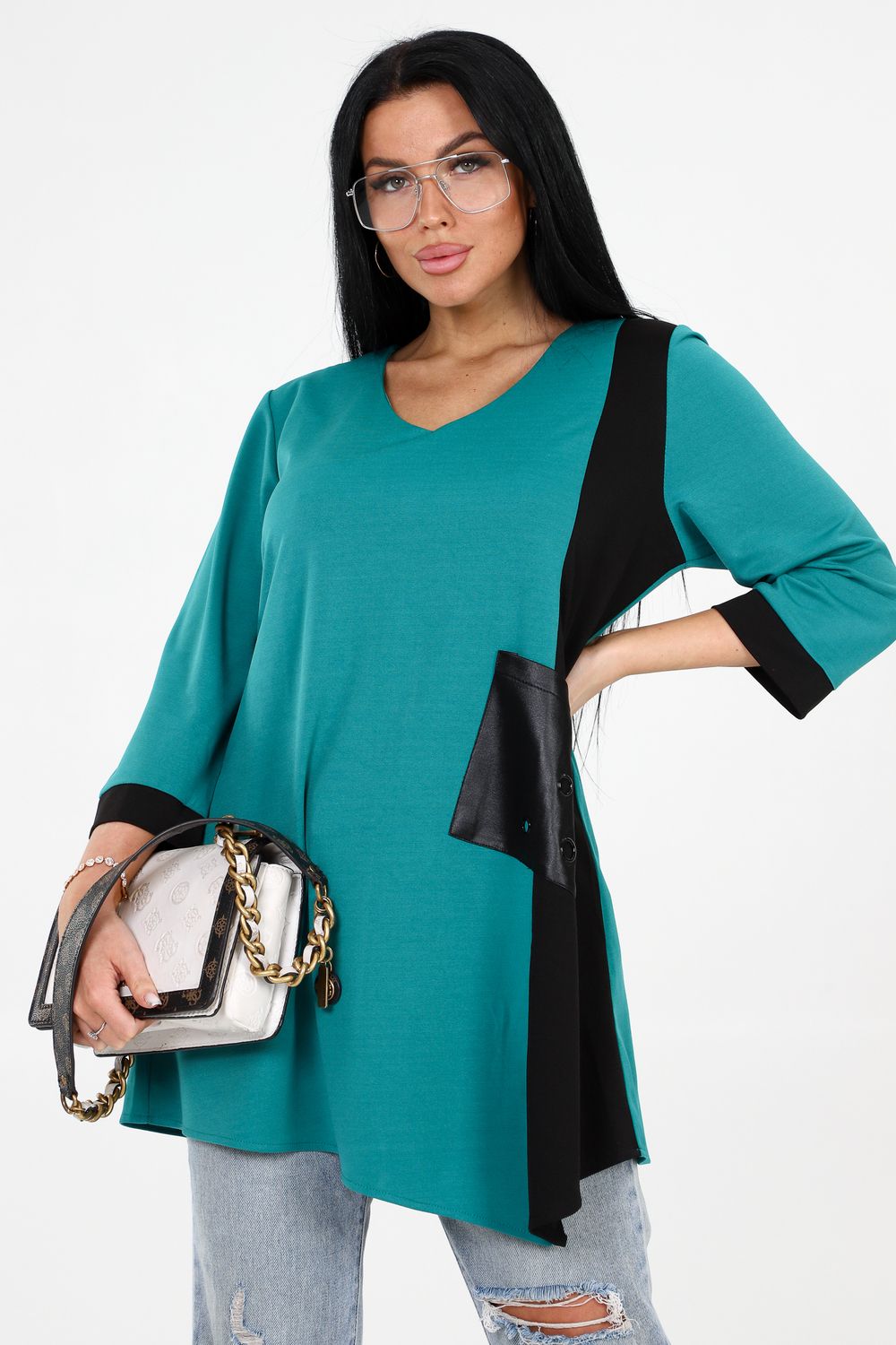 Эта элегантная туника с асимметричным кроем - идеальное решение для модных и уверенных в себе женщин. Комбинация двух цветов добавляет оригинальности и создаёт эффектный визуальный акцент, что делает эту тунику незаменимой в вашем гардеробе.