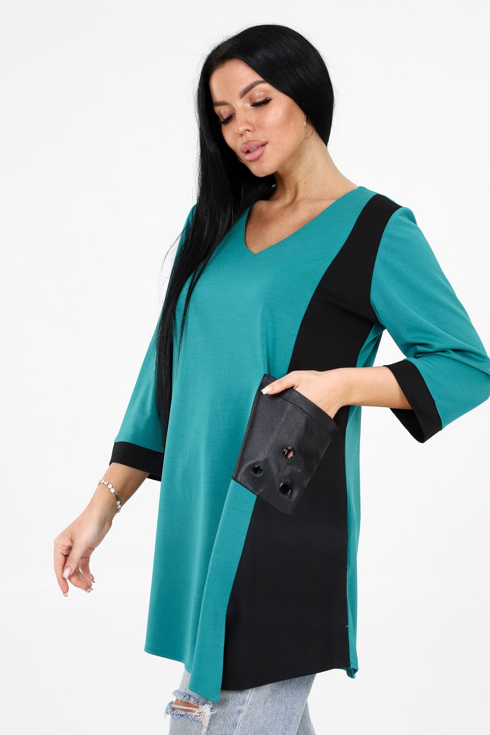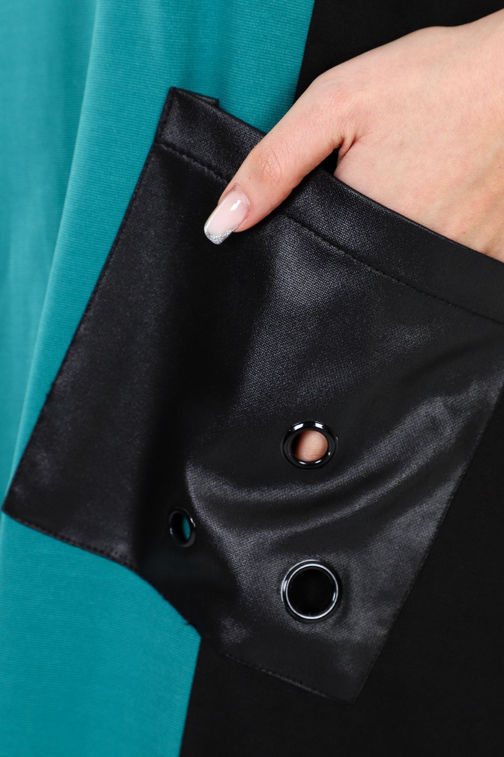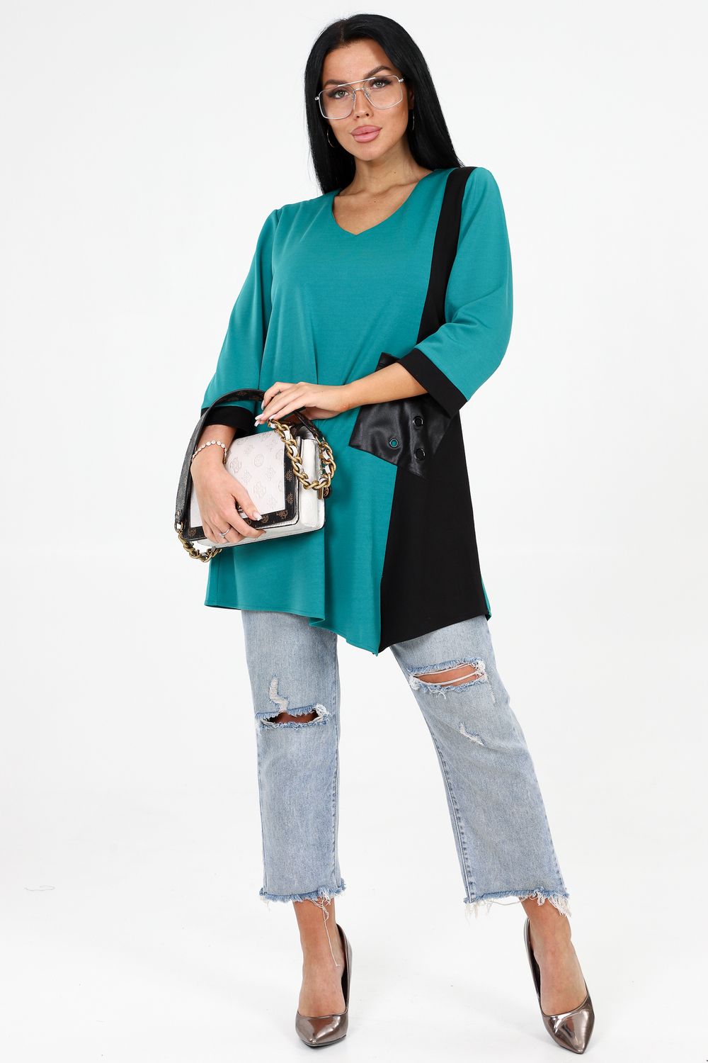 Ключевые слова: стильная туника, туника с асимметричным кроем, двухцветная туника, туника для любого случая, женская туника с карманом, декоративные люверсы, туника с рукавами 3/4, модная туника, комфортная женская одежда, гардероб современной женщины.