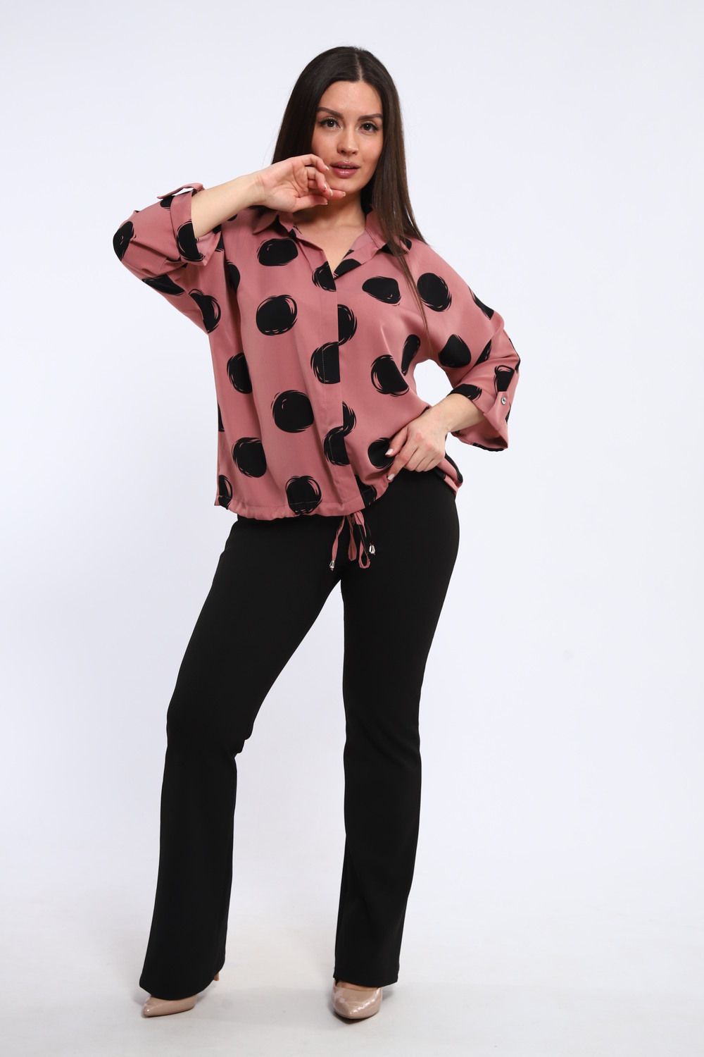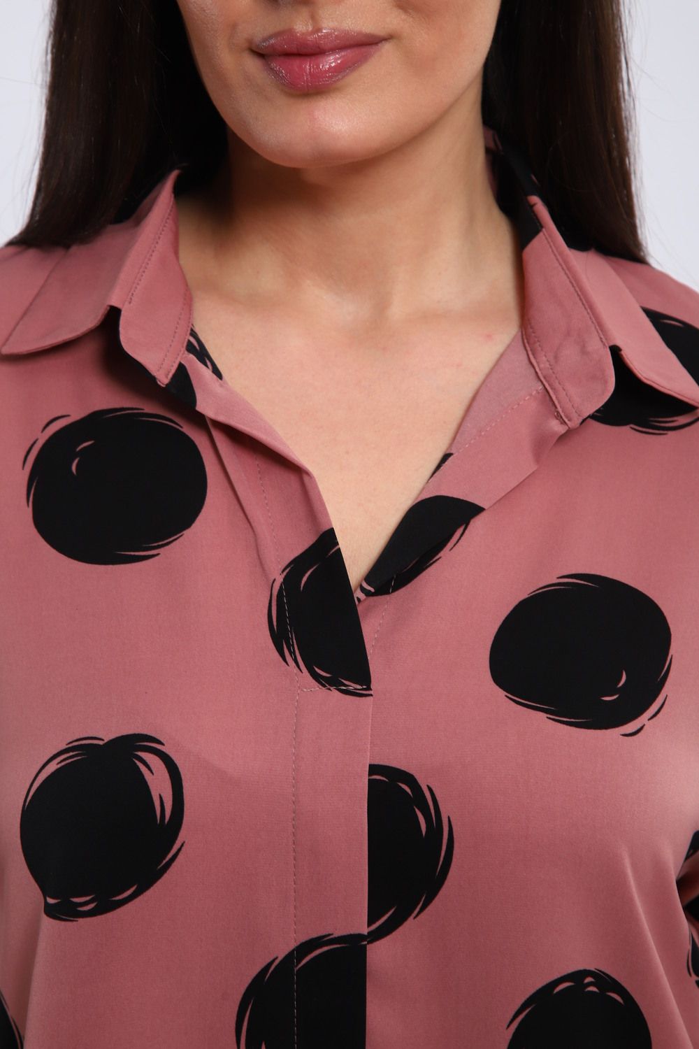 Декоративная планка на полочке служит элегантным акцентом, добавляя изюминку и визуальный интерес к дизайну. Рубашечный воротник придает тунике нотку классики, позволяя создавать разнообразные образы – от повседневных до более формальных.