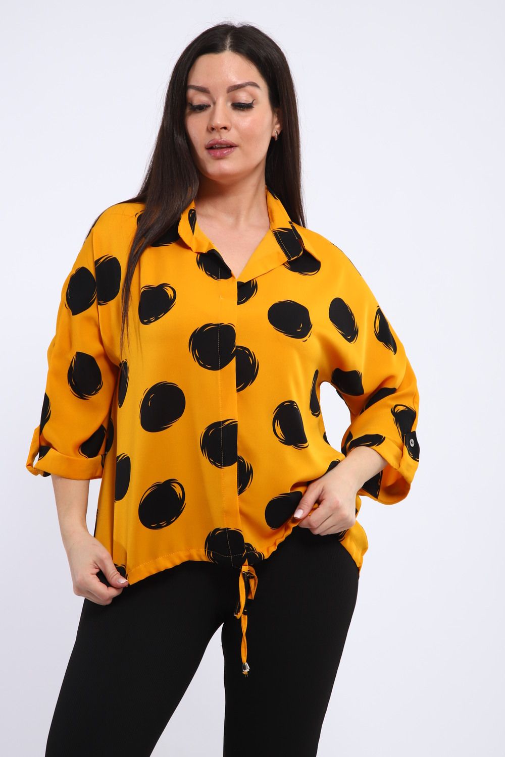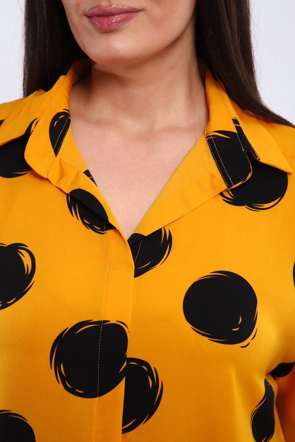 Декоративная планка на полочке служит элегантным акцентом, добавляя изюминку и визуальный интерес к дизайну. Рубашечный воротник придает тунике нотку классики, позволяя создавать разнообразные образы – от повседневных до более формальных.