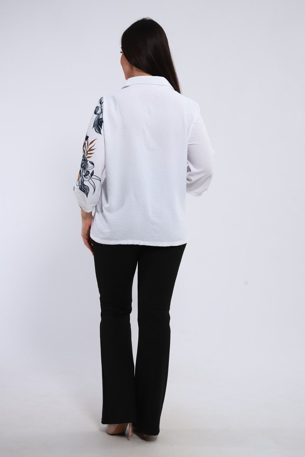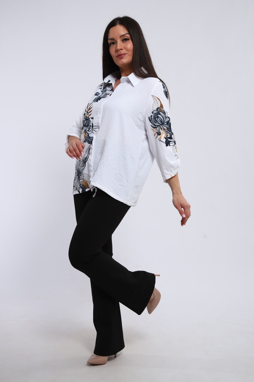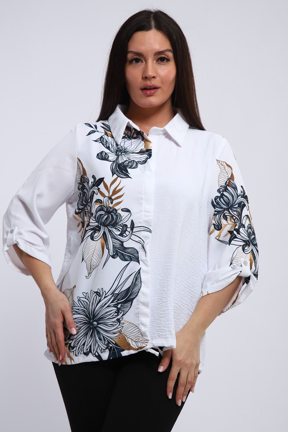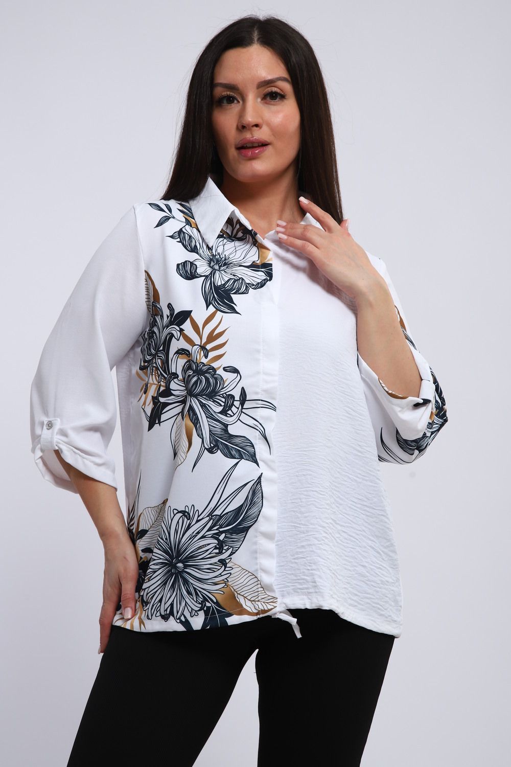 Эта стильная женская туника станет отличным дополнением вашего гардероба. Она украшена изысканным цветочным принтом, который добавляет яркости и свежести в любой образ. Рубашечный воротник придает изделию элегантный вид, а декоративная платна на полочке добавляет интересный акцент. Рукава три четверти, подобранные на паты, обеспечивают комфорт и свободу движений. Низ туники оформлен шнурком, что позволяет регулировать силуэт и подчеркивать талию. Эта туника идеально подойдет как для повседневной носки, так и для более нарядных случаев, создавая стильный и женственный образ