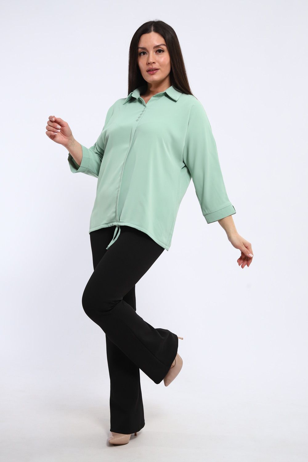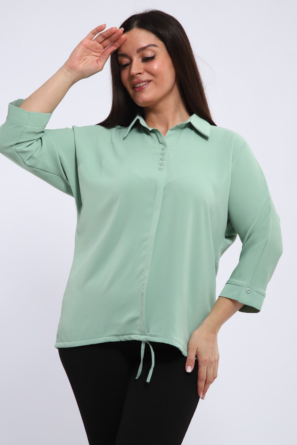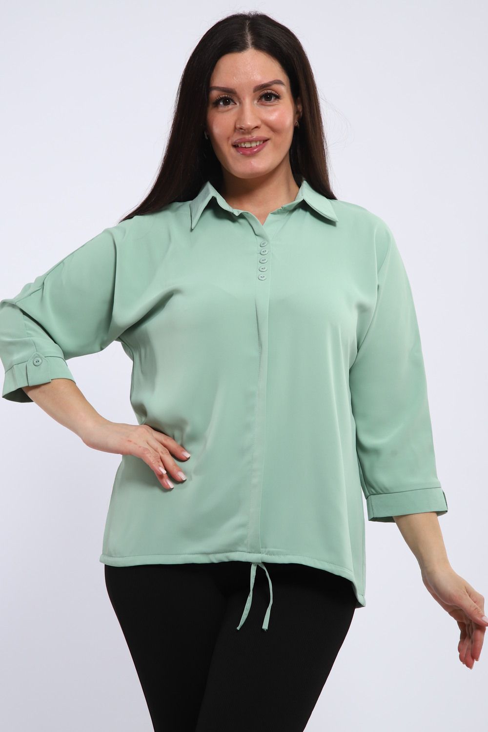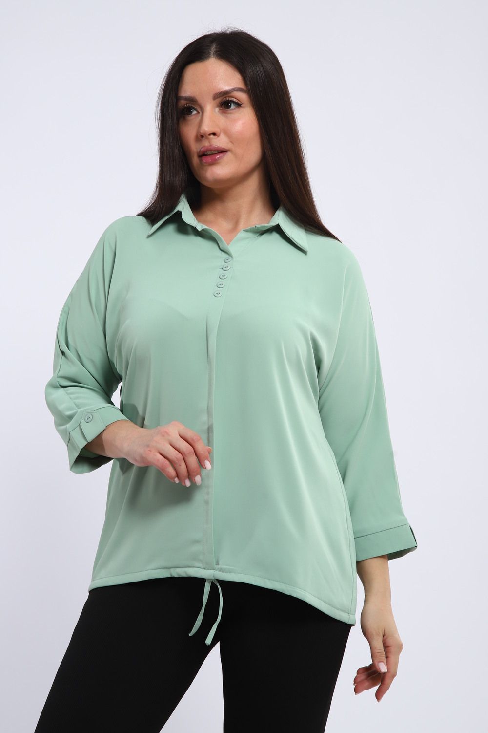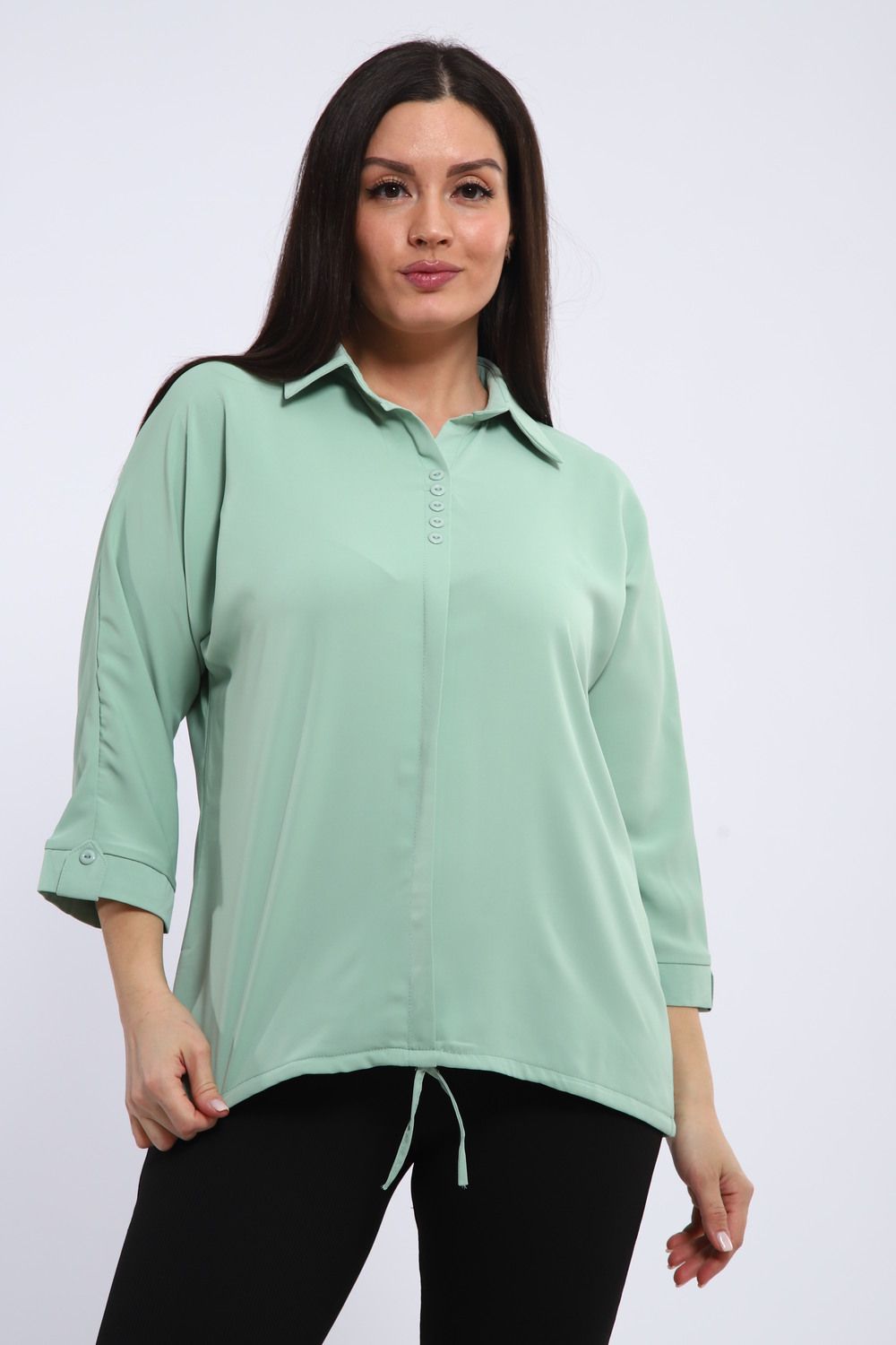 Рубашечный воротник привносит нотку классики и делового шика, делая тунику уместной как в офисе, так и на неформальной встрече. Свободный крой обеспечивает полную свободу движений, а регулируемый шнурок по низу позволяет создать желаемый силуэт: от слегка приталенного до более расслабленного.