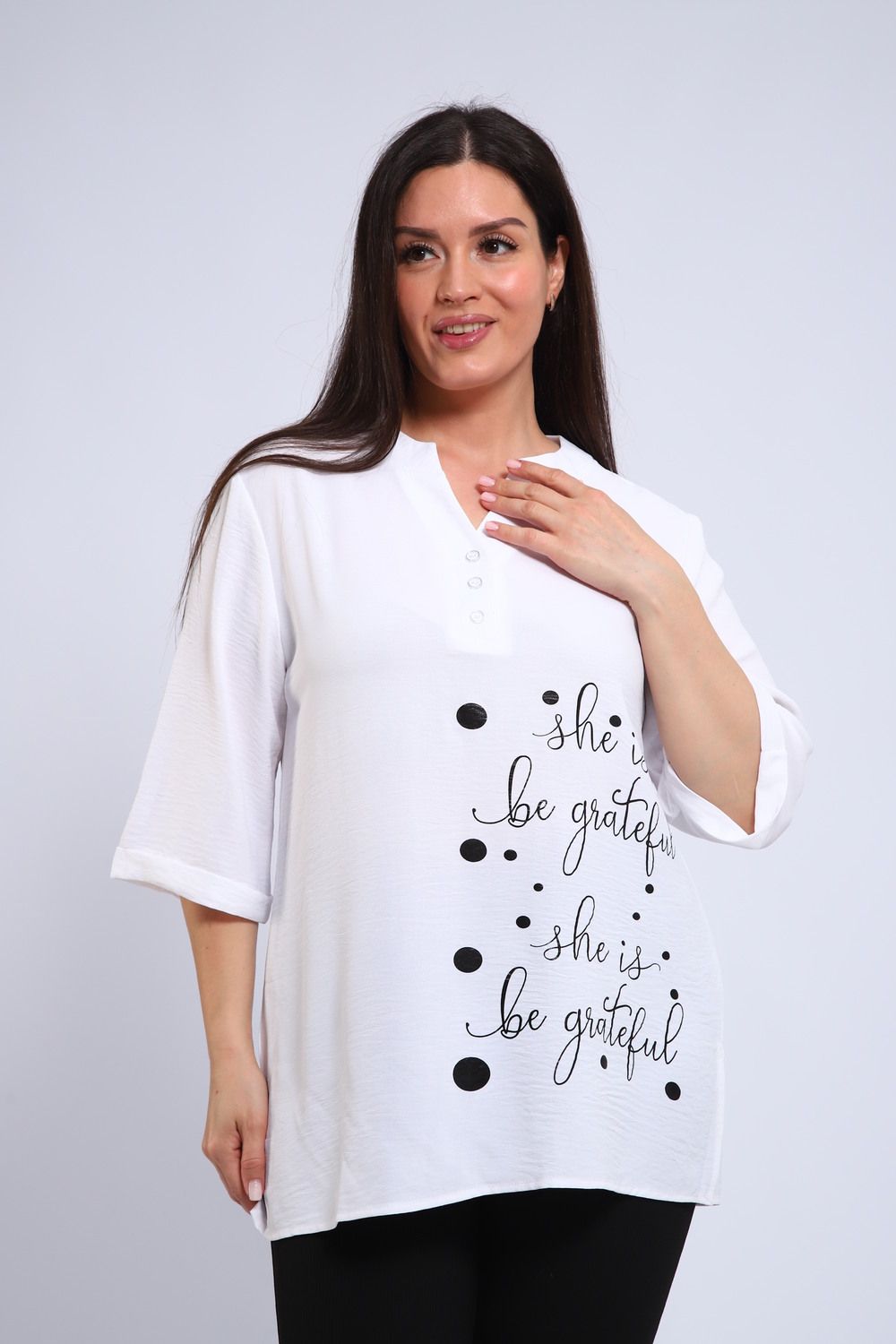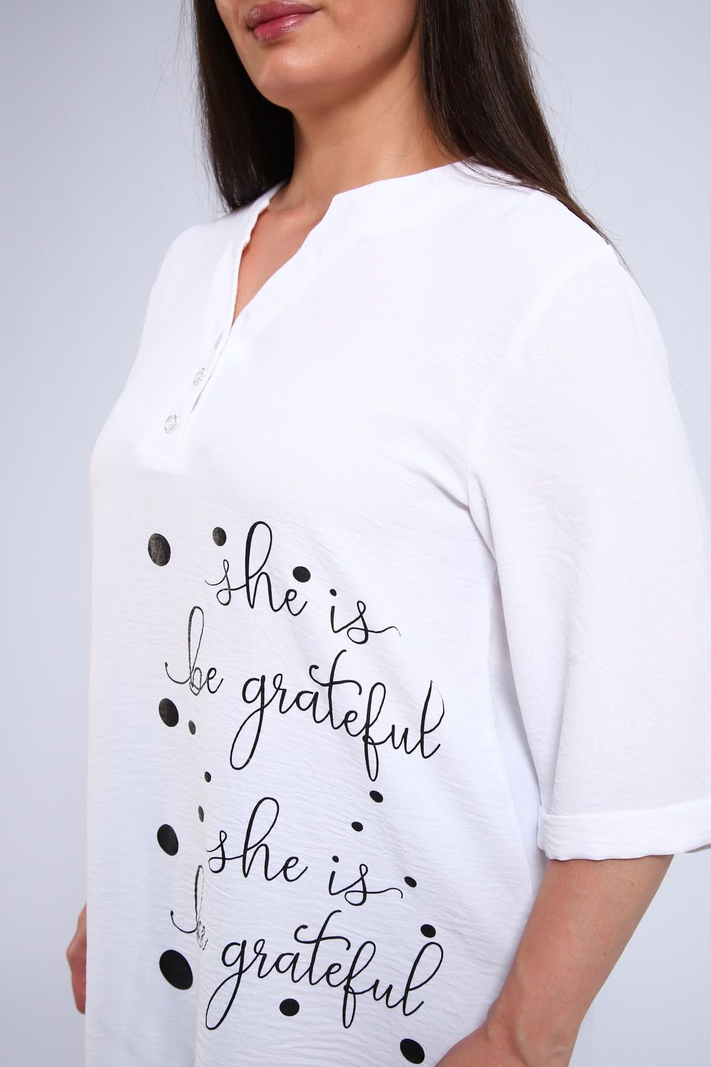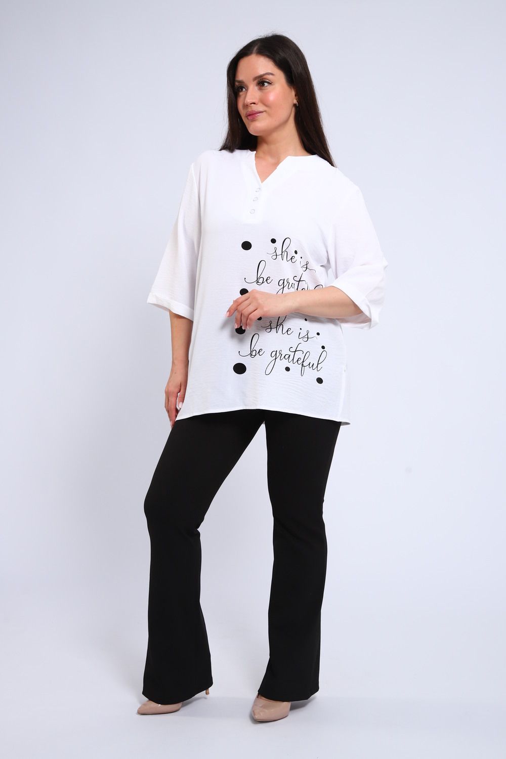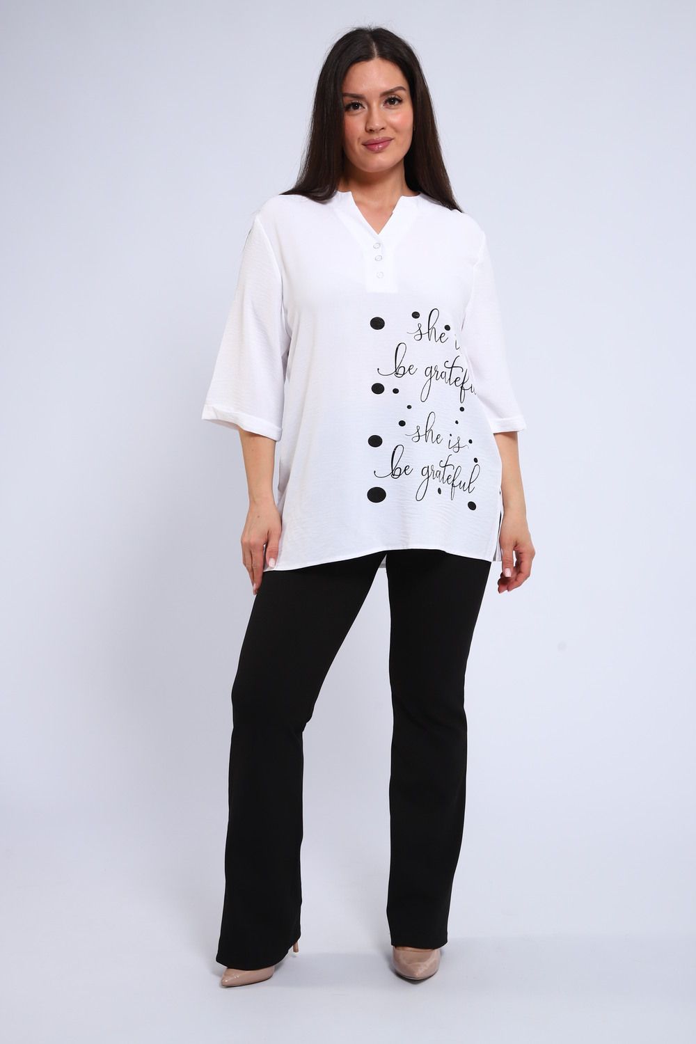 Ищете идеальную тунику, сочетающую комфорт и стиль? Наша туника свободного кроя – ваш безупречный выбор! Эта женственная туника с рукавом три четверти на манжете станет любимой вещью в вашем гардеробе.
