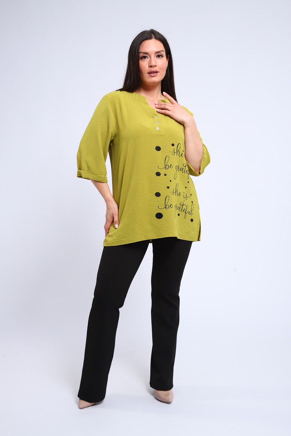 Ищете идеальную тунику, сочетающую комфорт и стиль? Наша туника свободного кроя – ваш безупречный выбор! Эта женственная туника с рукавом три четверти на манжете станет любимой вещью в вашем гардеробе.