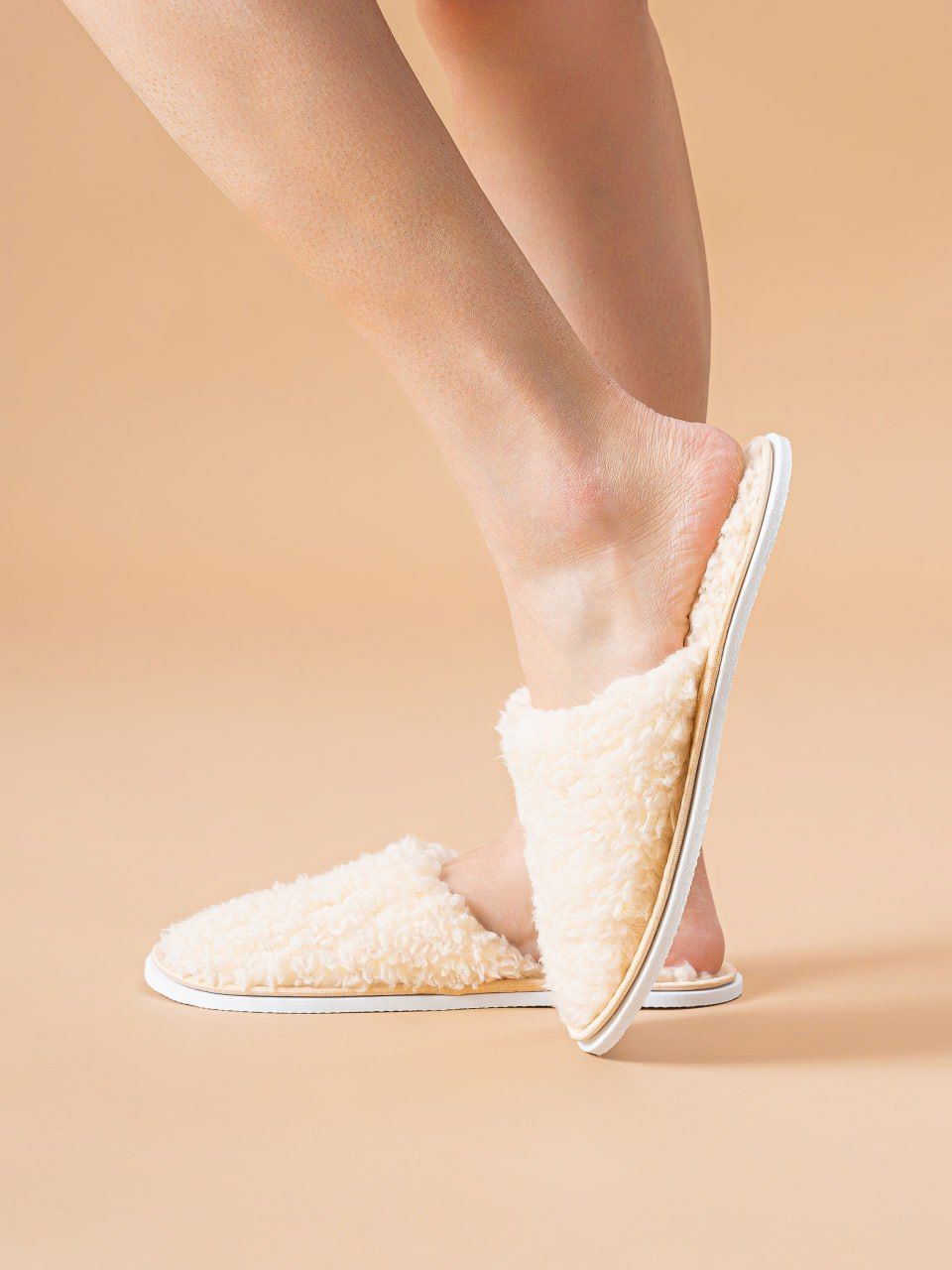 Женские тапочки ЖВТ - тедди/молочный
