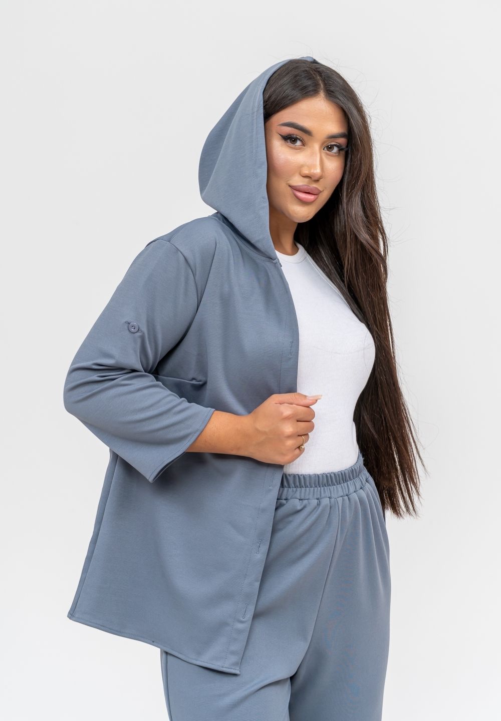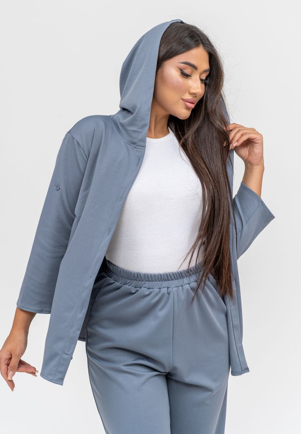 Этот костюм сочетает в себе комфорт и стиль, благодаря чему вы будете чувствовать себя уверенно и привлекательно в любой ситуации. Мягкая ткань обеспечивает отличную воздухопроницаемость, что особенно важно в теплые дни. Брюки с прямым кроем и стильный жакет создают гармоничный образ, который можно дополнить различными аксессуарами.